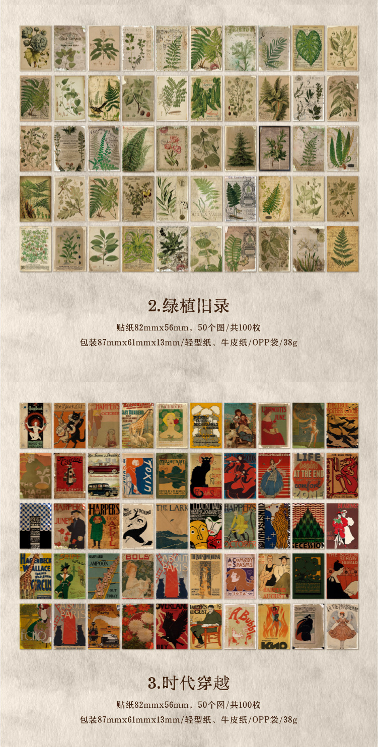 Yanji 소재 종이 메모리 이미지 시리즈 유럽과 미국의 복고풍 손 계정 DIY 장식 재료 100 조각