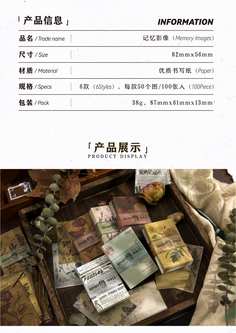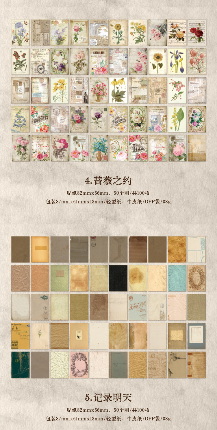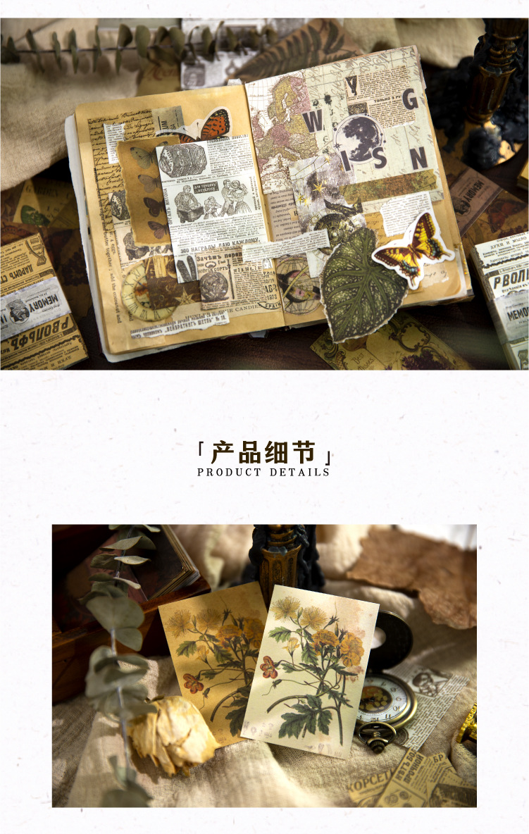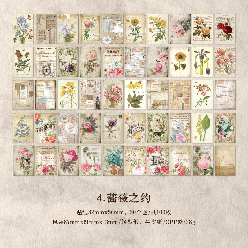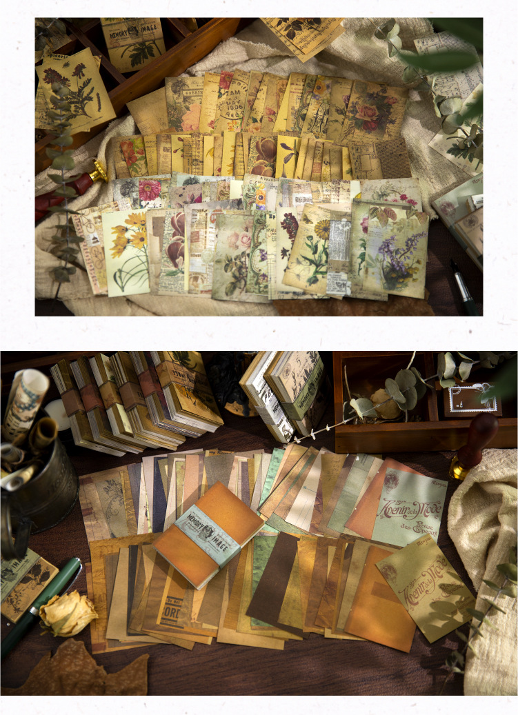 Yanji 소재 종이 메모리 이미지 시리즈 유럽과 미국의 복고풍 손 계정 DIY 장식 재료 100 조각스토어 가기