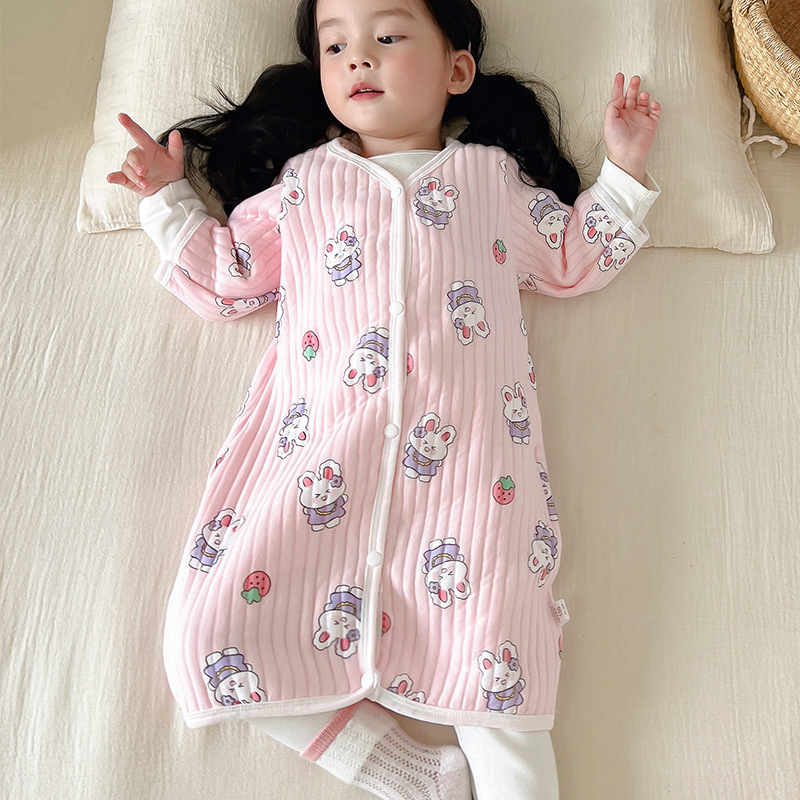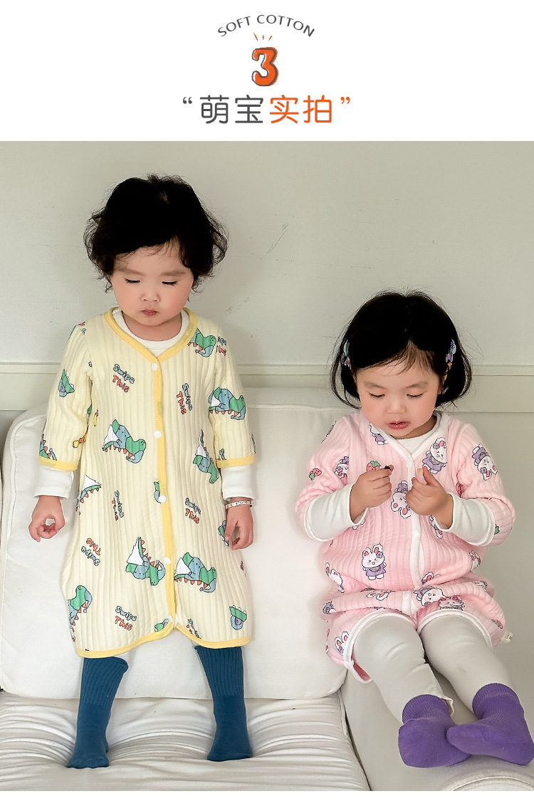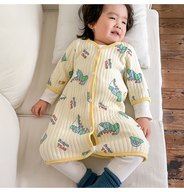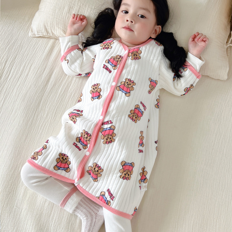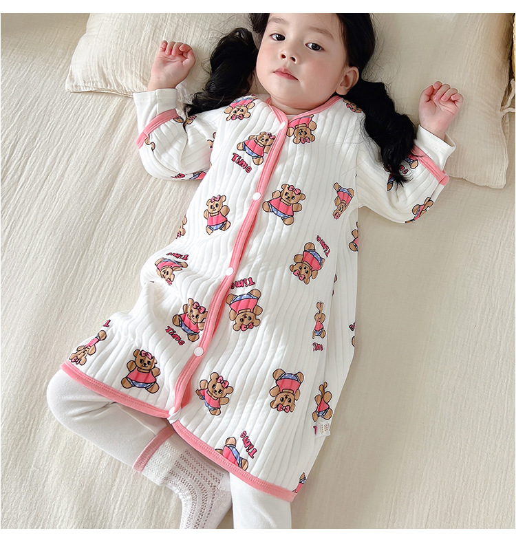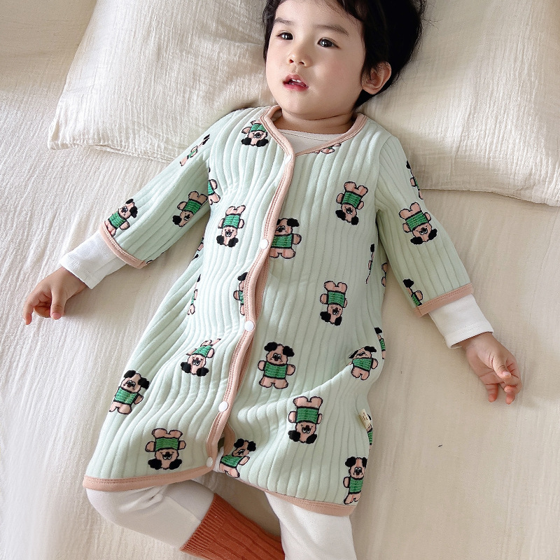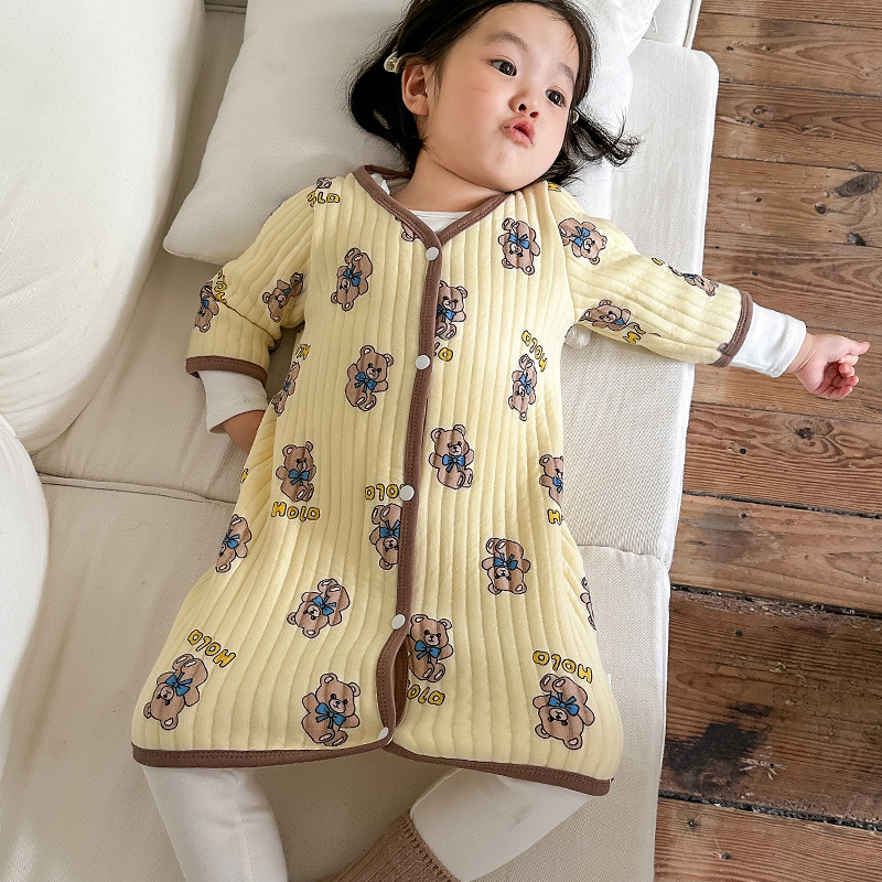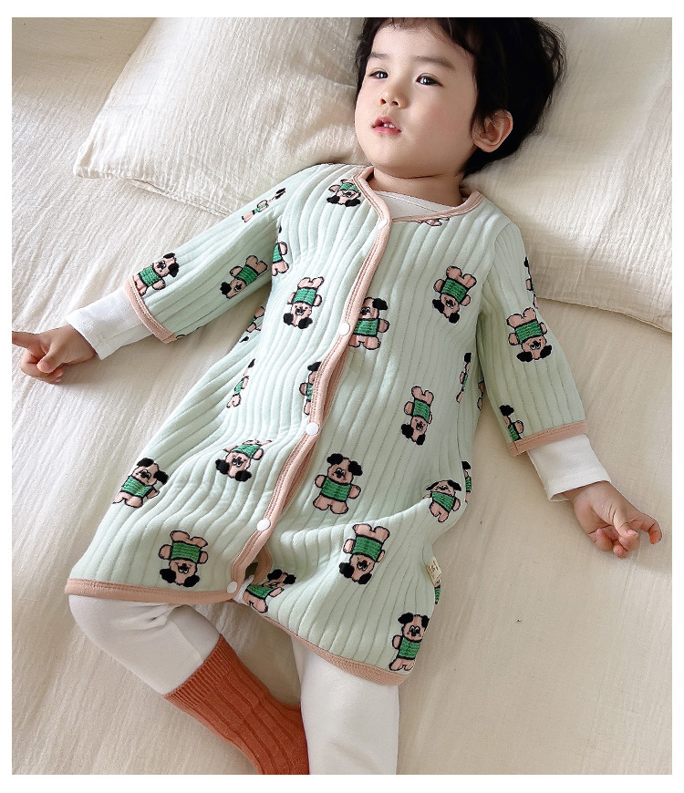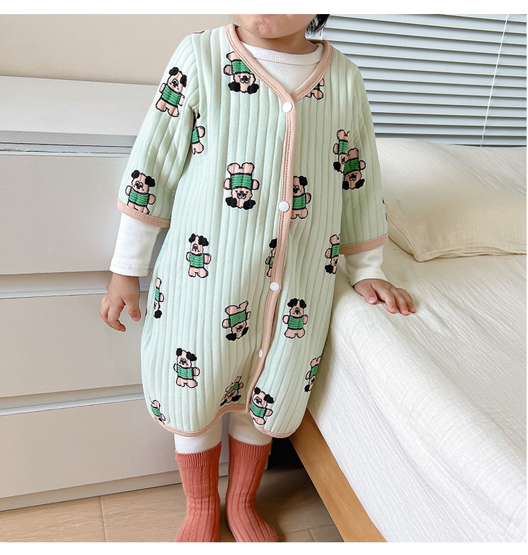 가을과 겨울 어린이 킥 방지 침낭 실크 코튼 홈 따뜻한 원피스 잠옷 소년과 소녀 중간 소매 가디건 잠옷스토어 가기