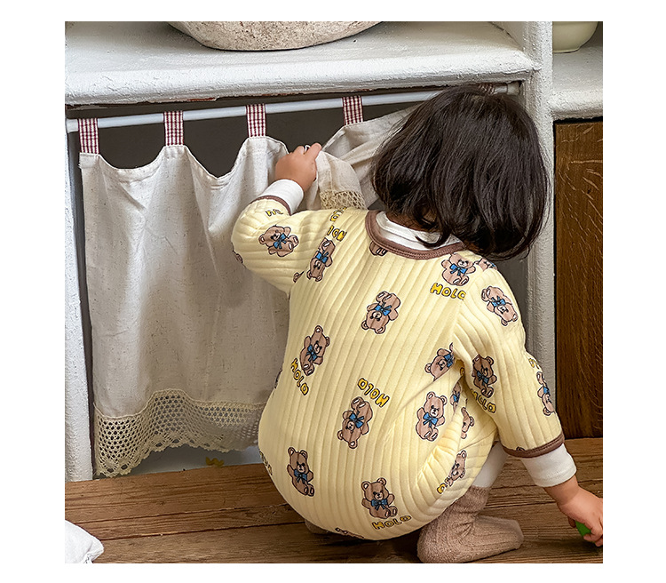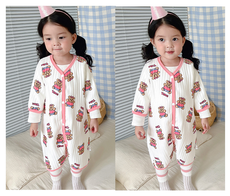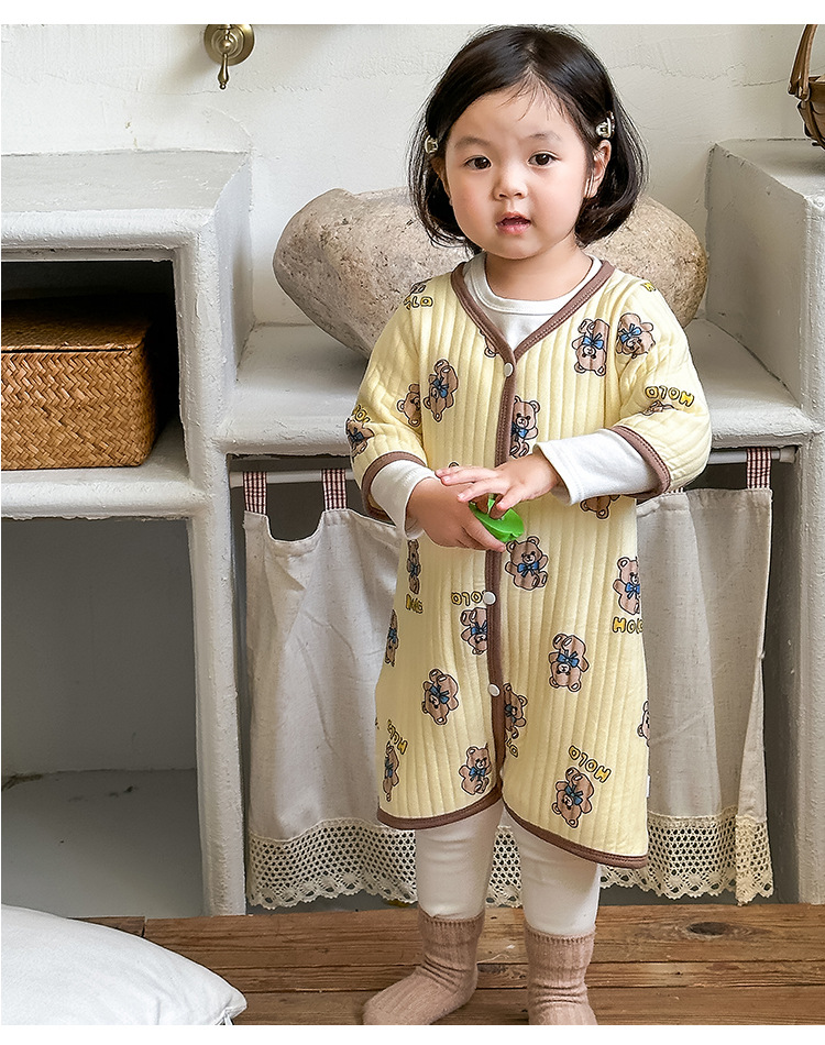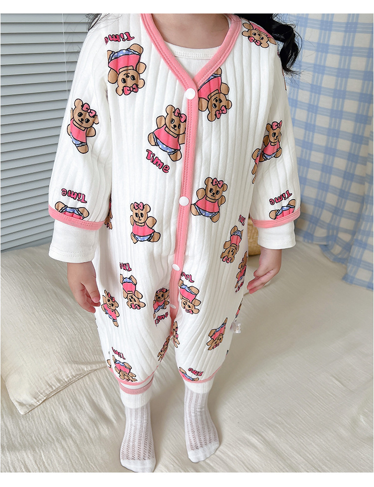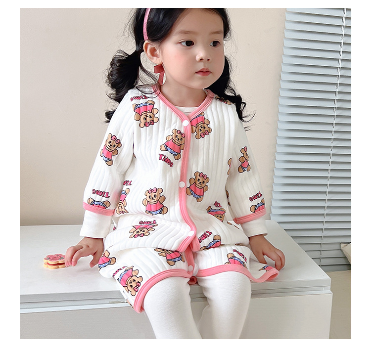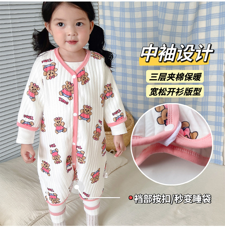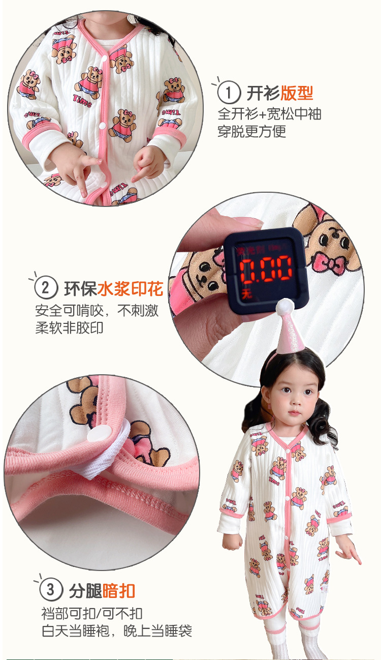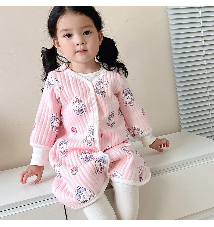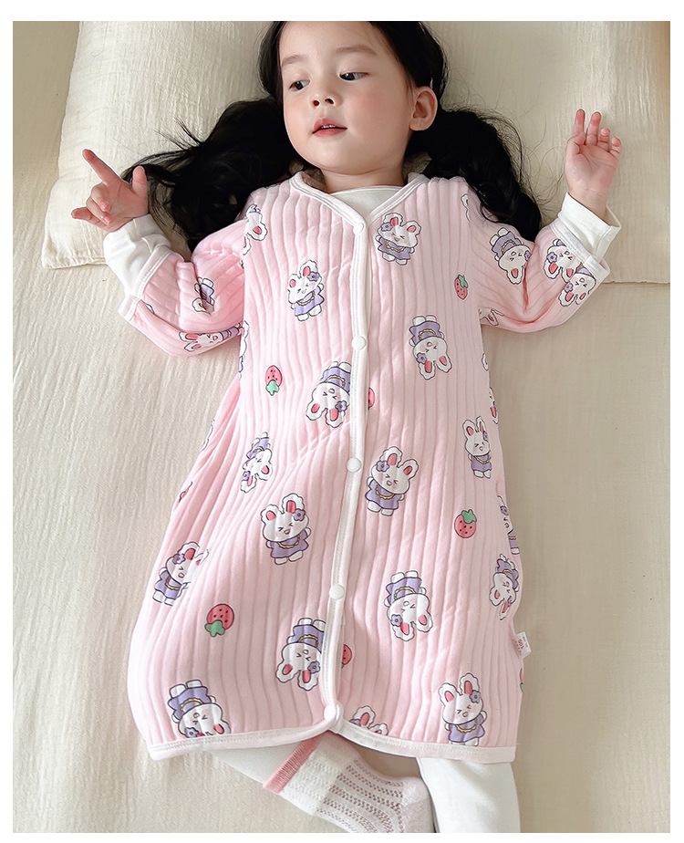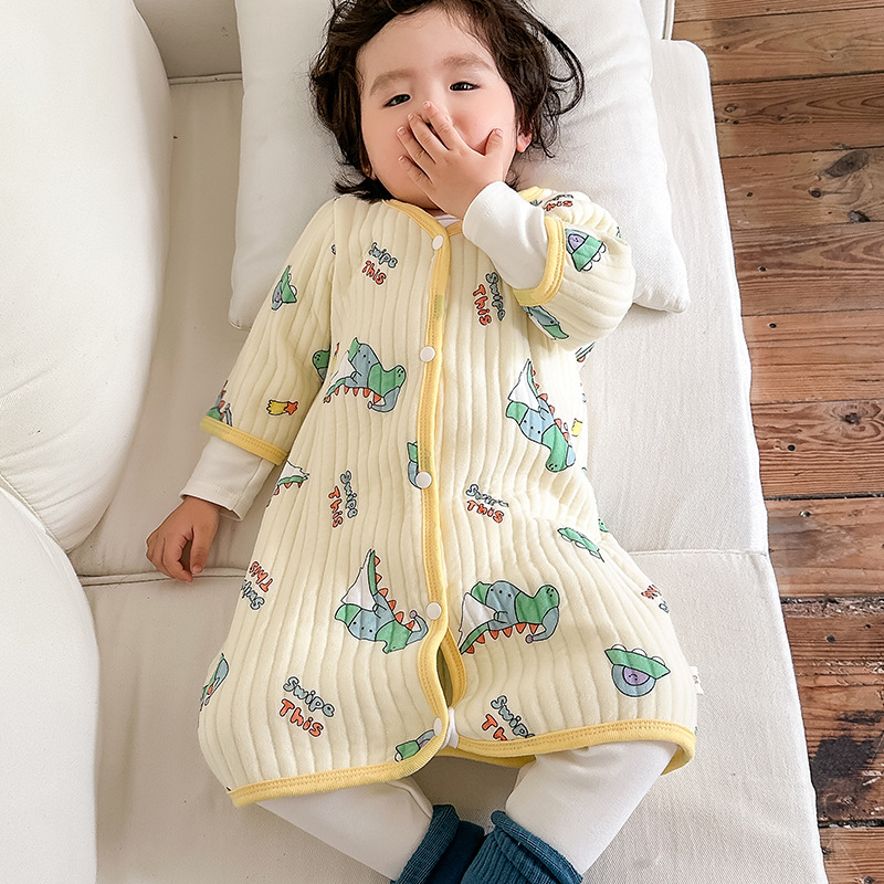 가을과 겨울 어린이 킥 방지 침낭 실크 코튼 홈 따뜻한 원피스 잠옷 소년과 소녀 중간 소매 가디건 잠옷스토어 가기
