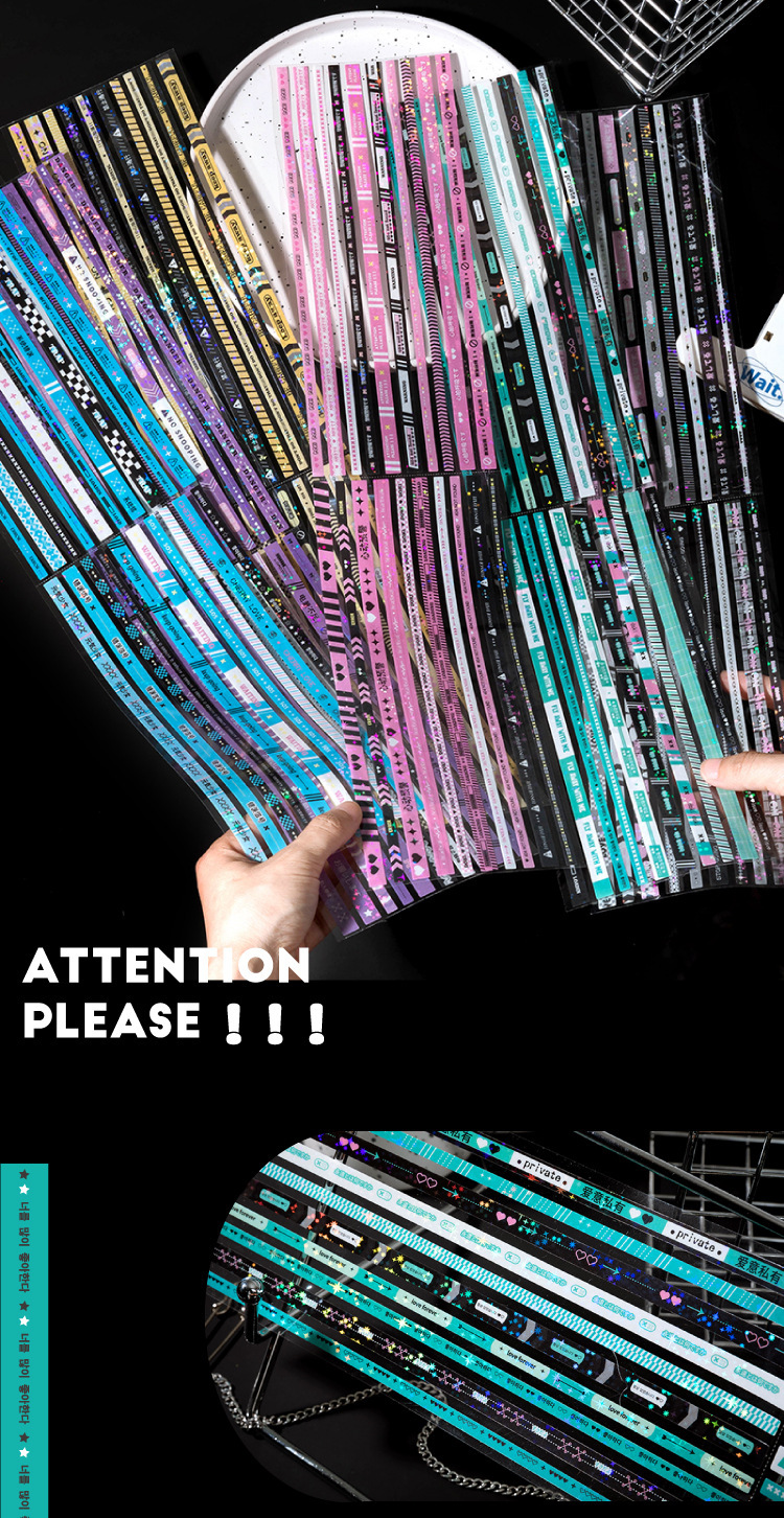 설탕시 플래시 필름 PVC 다이 커팅 폐기물 배출 테이프 로맨틱 경고 시리즈 바람 손 계정 goo 카드 재료 장식 스티커스토어 가기