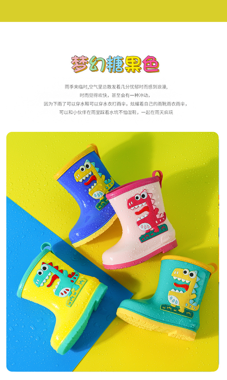 공룡 어린이 유치원 어린이 장화 미끄럼 방지 내마모성 중대형 장화 어린이 탈착식 벨벳 워터 슈즈 유아용스토어 가기