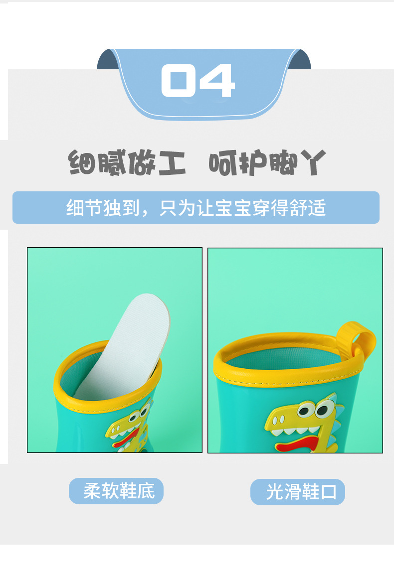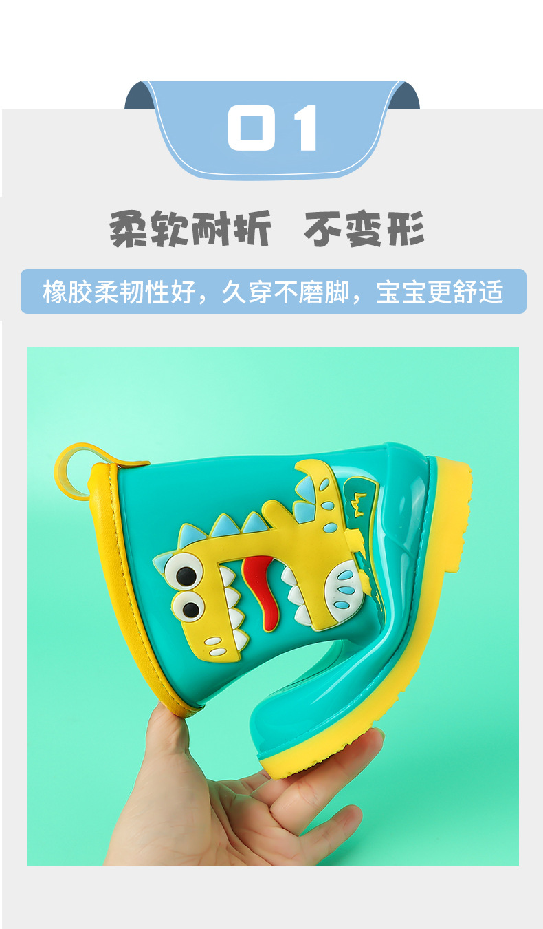 공룡 어린이 유치원 어린이 장화 미끄럼 방지 내마모성 중대형 장화 어린이 탈착식 벨벳 워터 슈즈 유아용