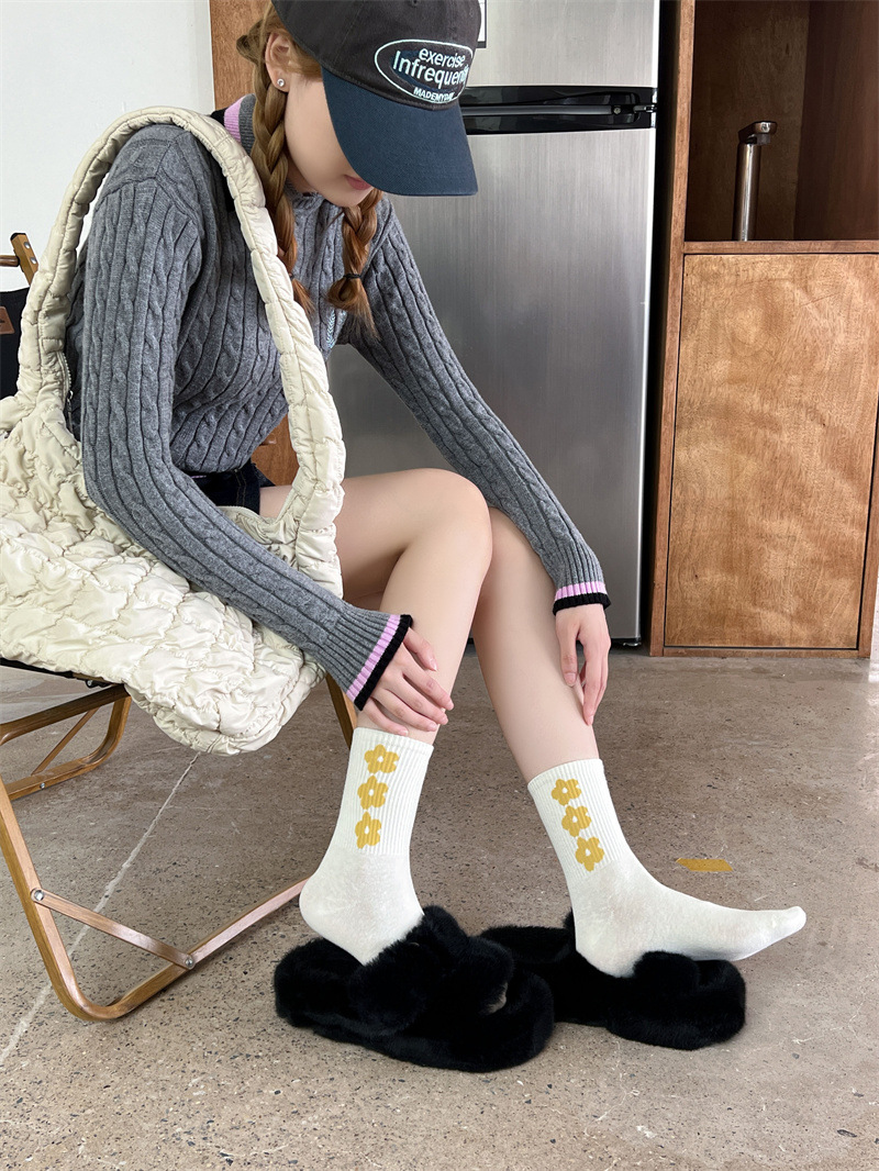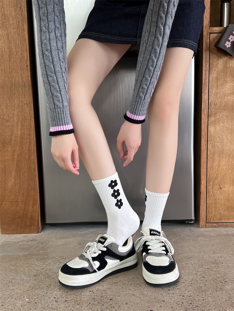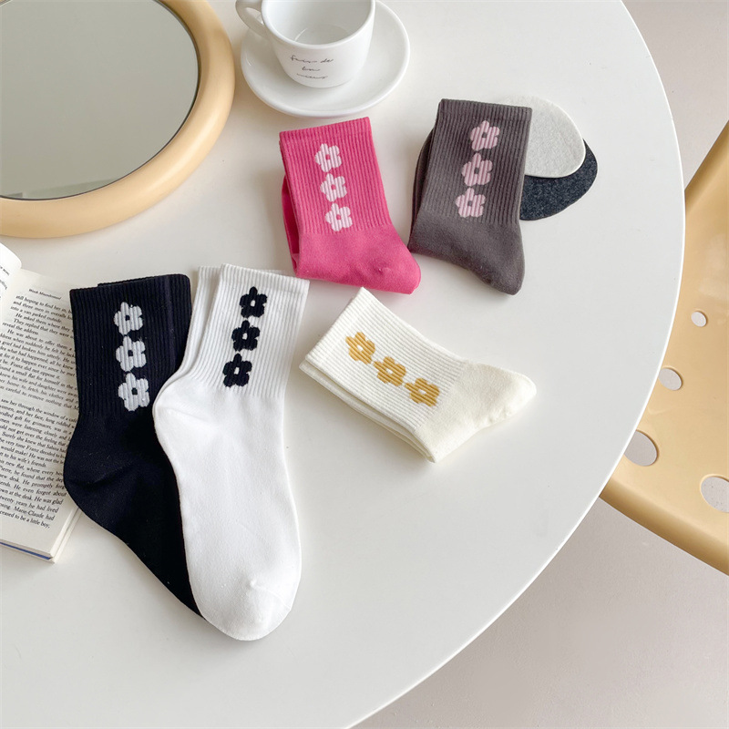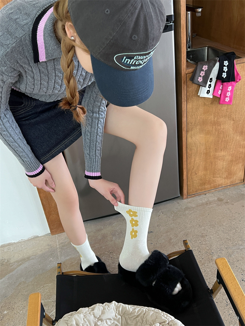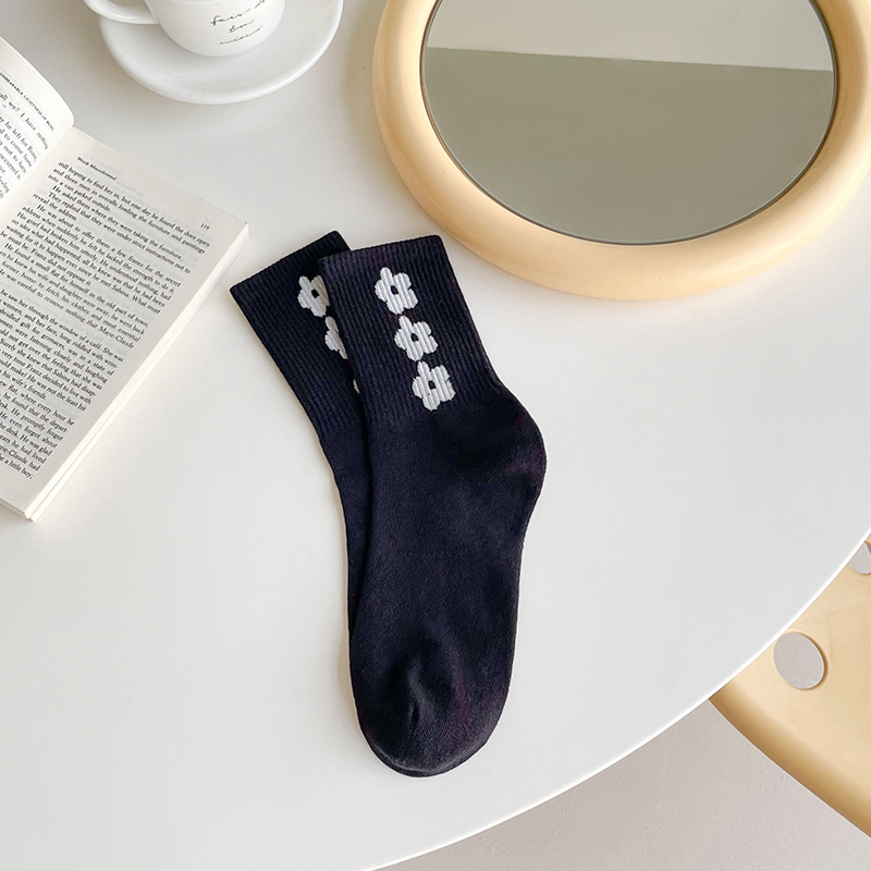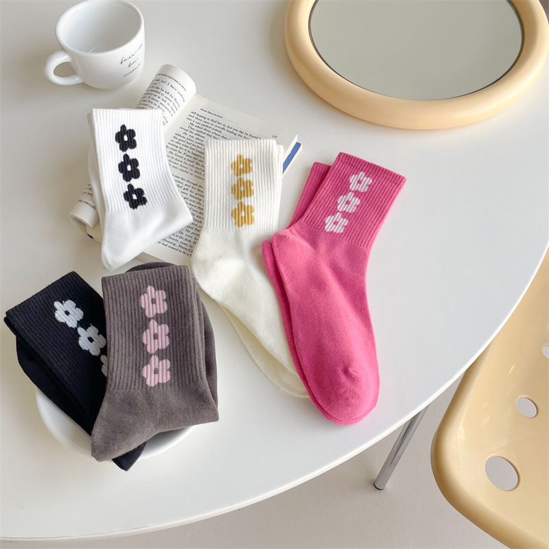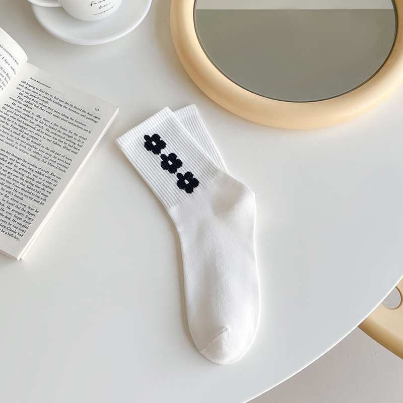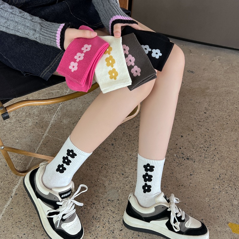 사이버 인기 작은 꽃 양말 여성의 새로운 스타일 샤넬 스타일 중간 길이 양말 한국 일본 스타일 귀여운 스택 양말 가을 유행 양말스토어 가기