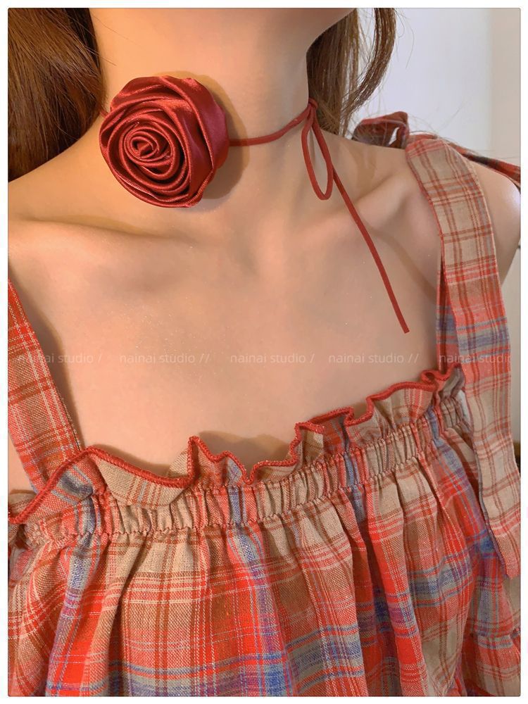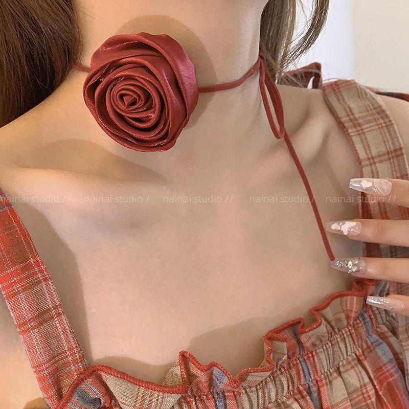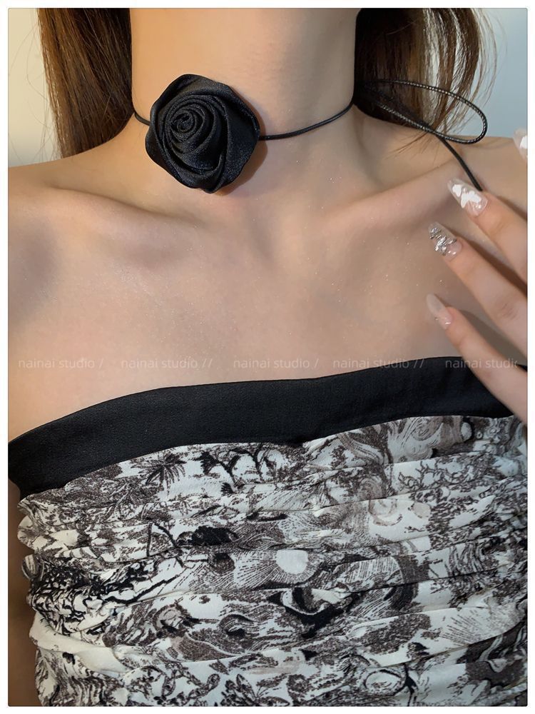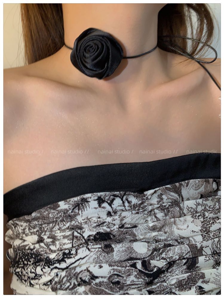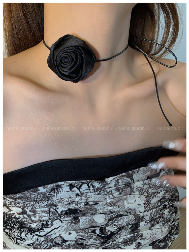 장미 목걸이 빈티지 블랙 플라워 쇄골 체인 프랑스 유행 레이스 초커 스트랩 넥 체인