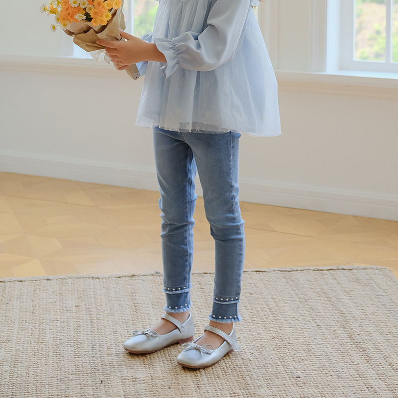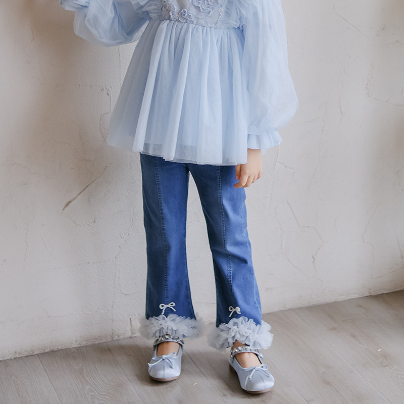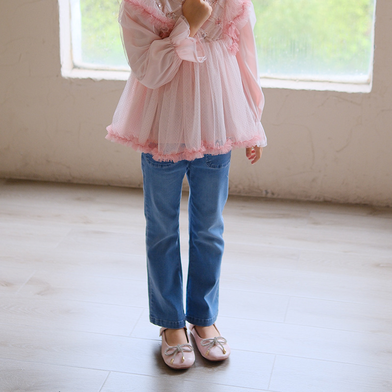 아동복 여아 청바지 봄 가을 신상품 중소형 아동 캐주얼 루즈핏 와이드 레그 베이비 플레어 여아 바지 트렌디스토어 가기