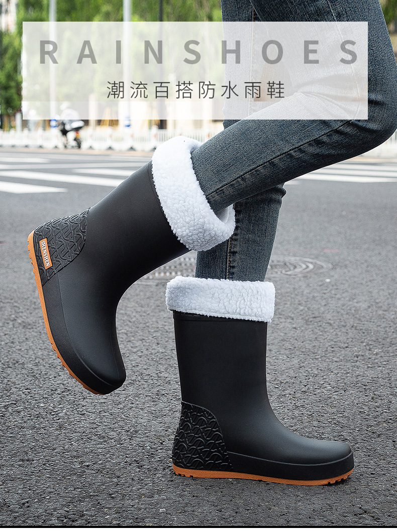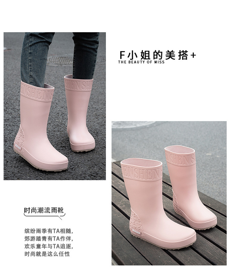 패션 비 신발 여성 성인 높은 장화 봄과 가을 미끄럼 방지 방수 부츠 한국 스타일 두꺼운 내마모성 단색 물 신발스토어 가기