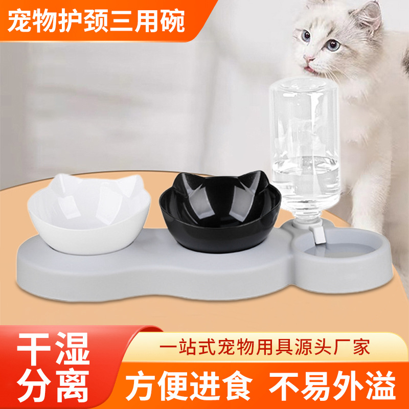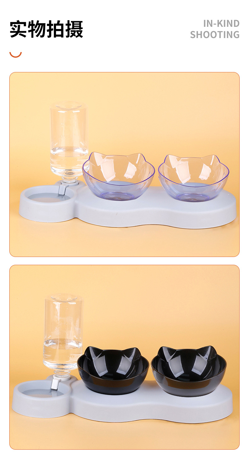 고양이 개 자동 식수 피더 플라스틱 고양이 그릇 비스듬한 입 싱글 더블 볼 스케일 그릇 애완 동물 피더 도매