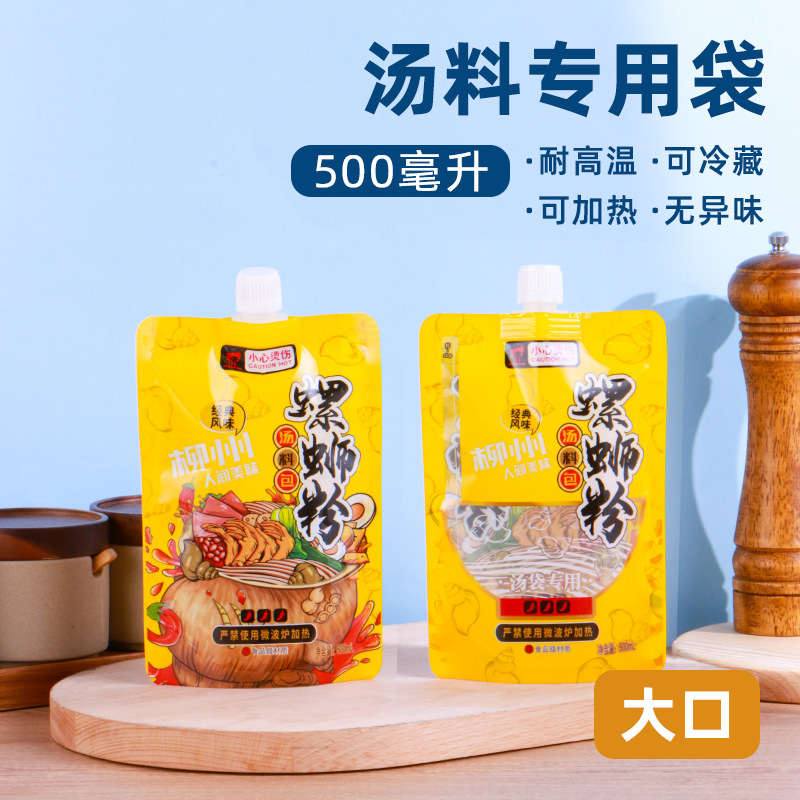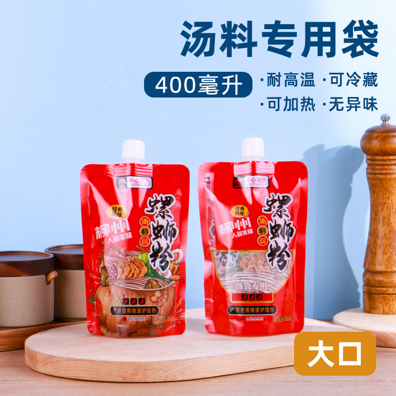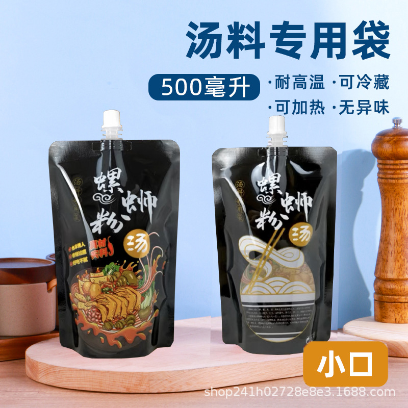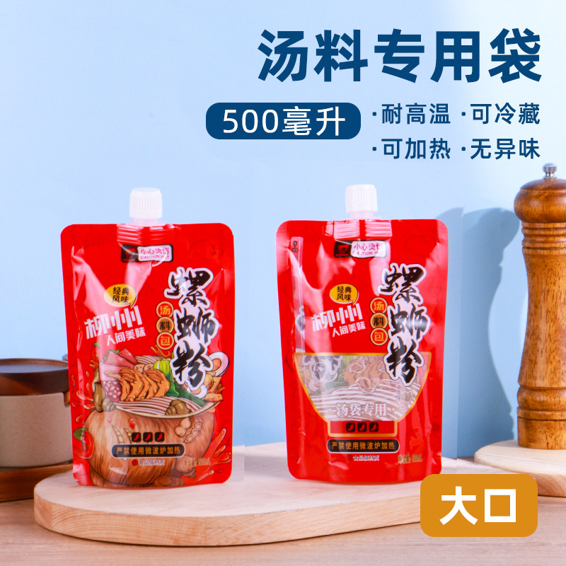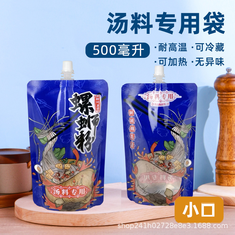 달팽이 분말 수프 가방 포장 가방 휴대용 흡입 노즐 가방 테이크 아웃 수프 일회용 포장 가방 흡입 노즐 독립형 가방 재고