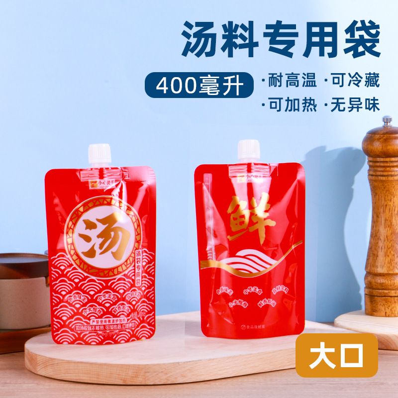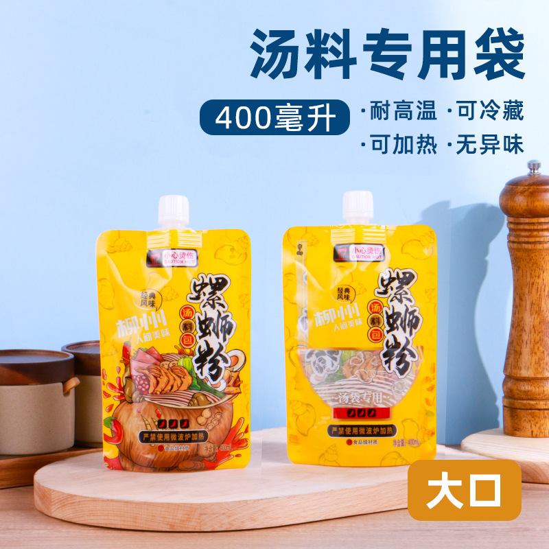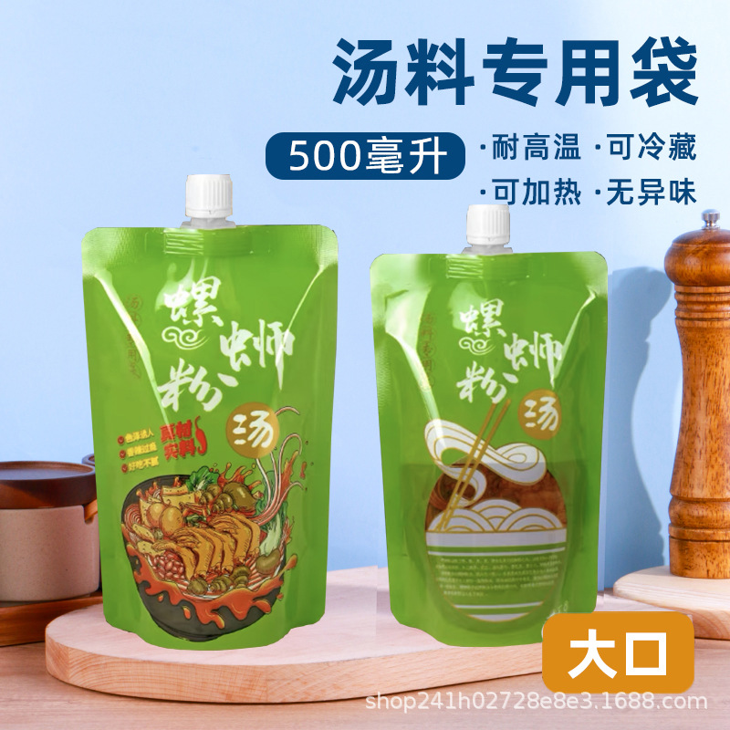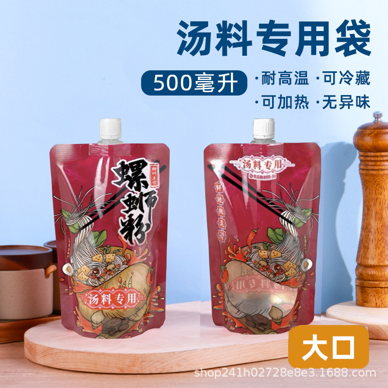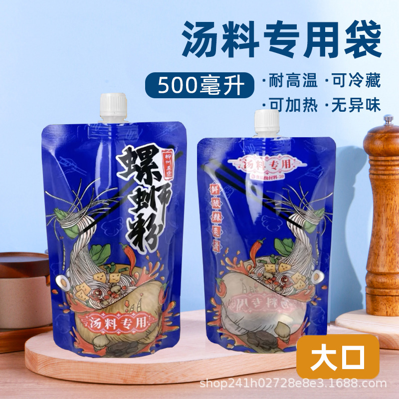 달팽이 분말 수프 가방 포장 가방 휴대용 흡입 노즐 가방 테이크 아웃 수프 일회용 포장 가방 흡입 노즐 독립형 가방 재고