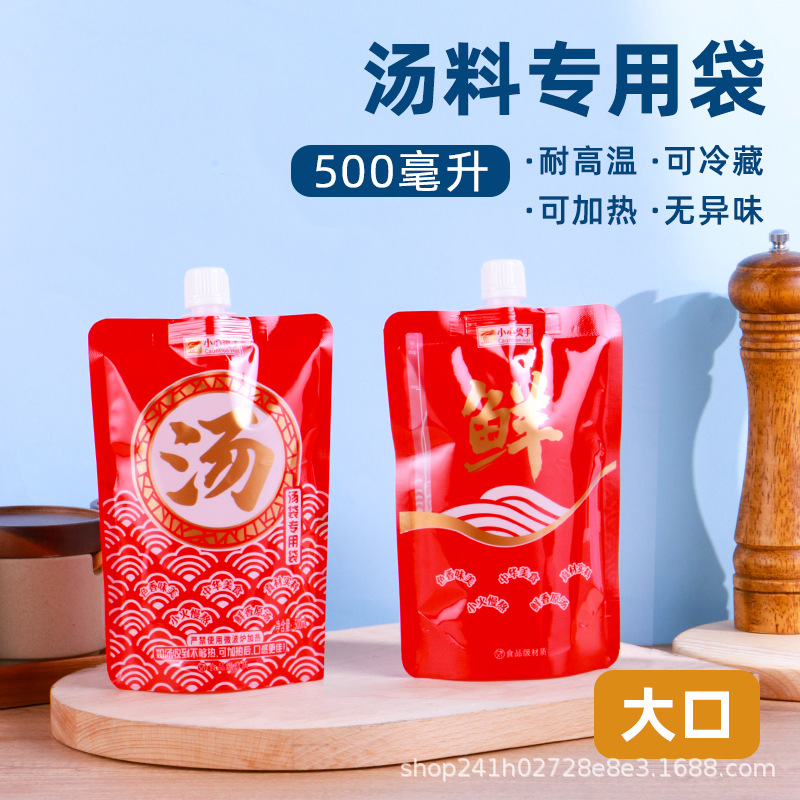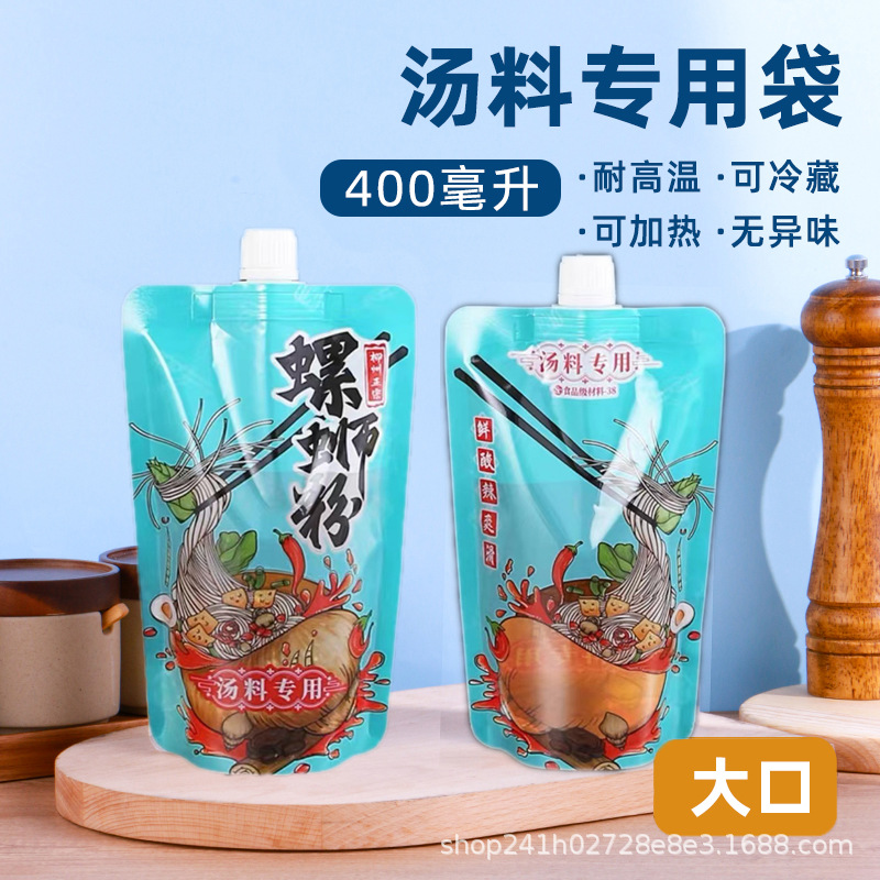 달팽이 분말 수프 가방 포장 가방 휴대용 흡입 노즐 가방 테이크 아웃 수프 일회용 포장 가방 흡입 노즐 독립형 가방 재고스토어 가기