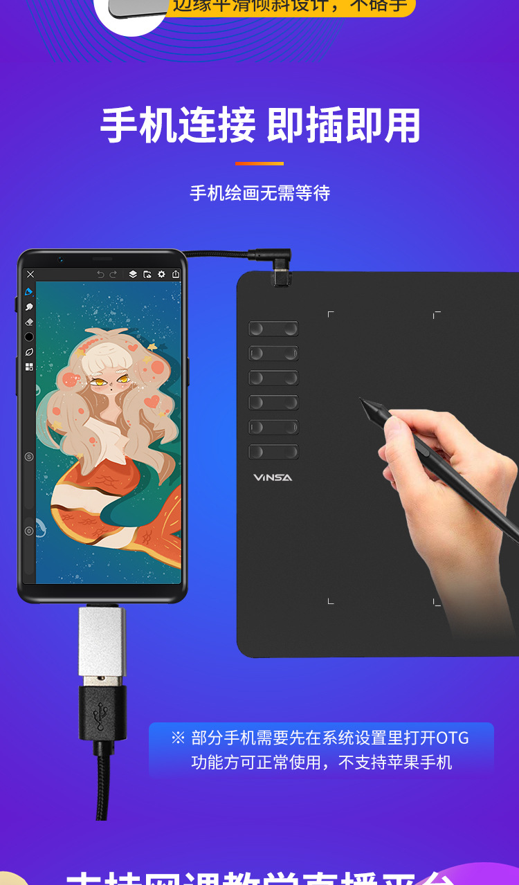 VINSA 그래픽 타블렛 컬러 손으로 그린 보드 컴퓨터 페인팅 보드 온라인 수업 PS 만화 드로잉 보드 전자 필기 보드스토어 가기