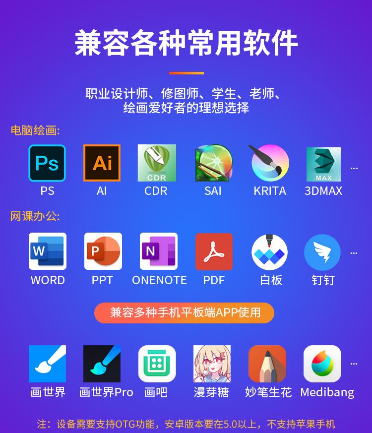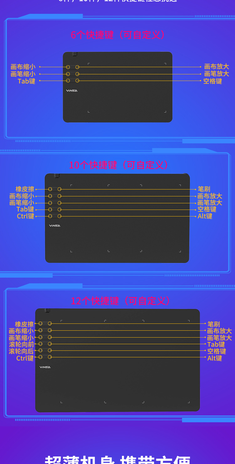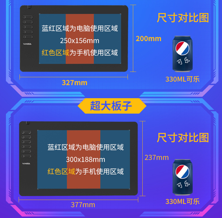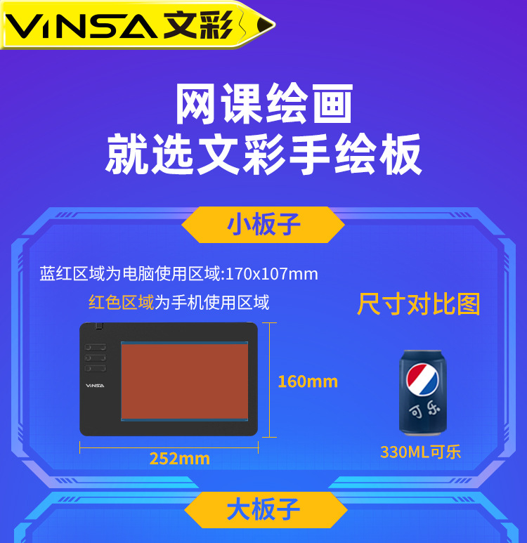 VINSA 그래픽 타블렛 컬러 손으로 그린 보드 컴퓨터 페인팅 보드 온라인 수업 PS 만화 드로잉 보드 전자 필기 보드