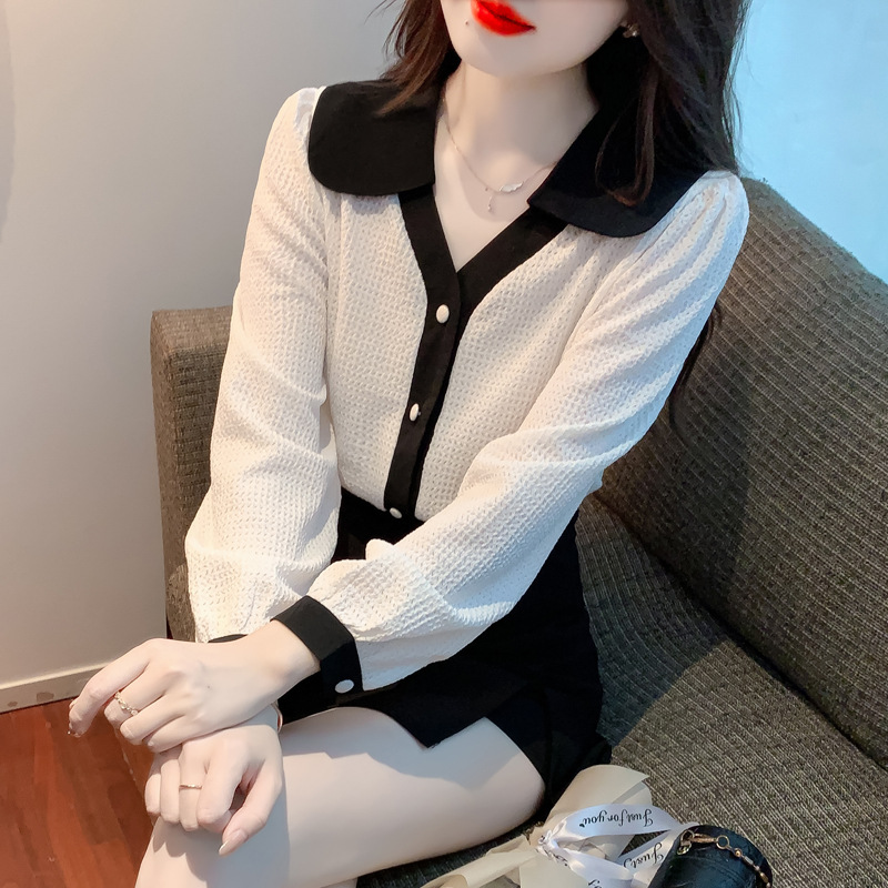 리얼 샷 2023 봄 쉬폰 셔츠 여성용 프렌치 시크 스몰 탑 디자인 감각 틈새 하이 센스 스몰 셔츠스토어 가기