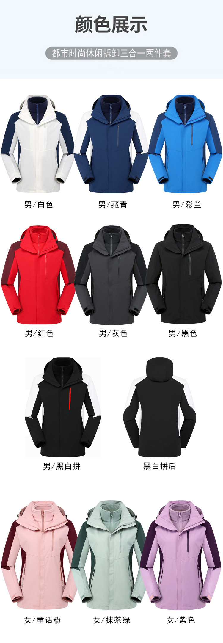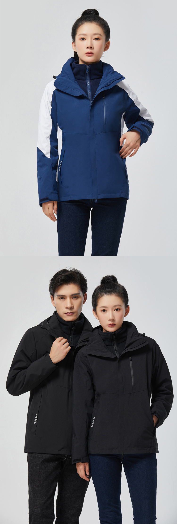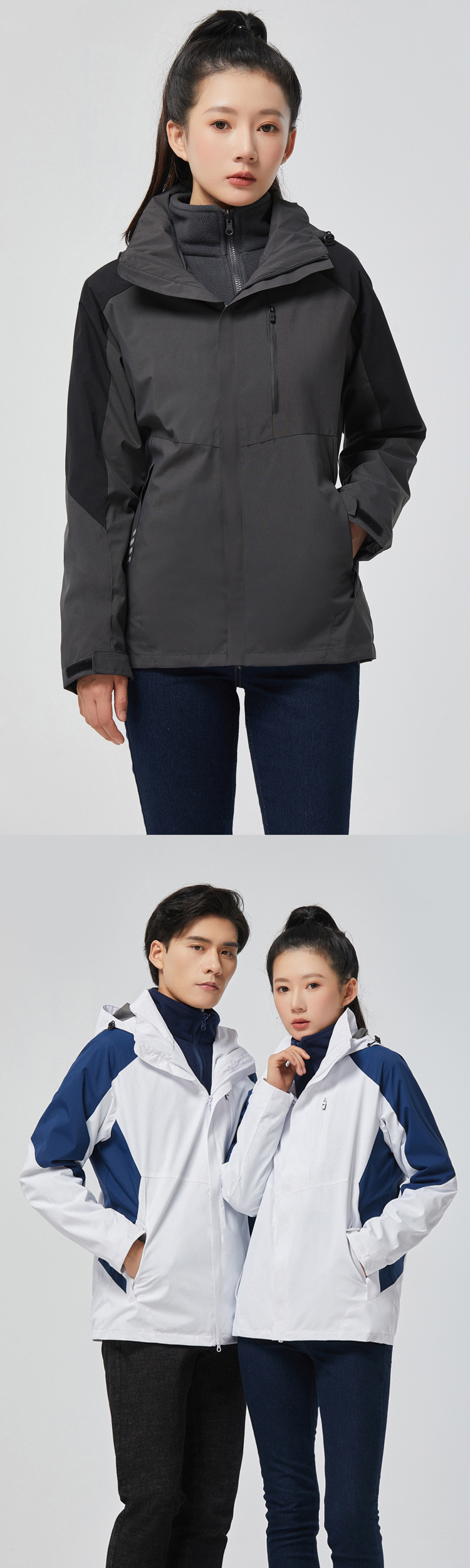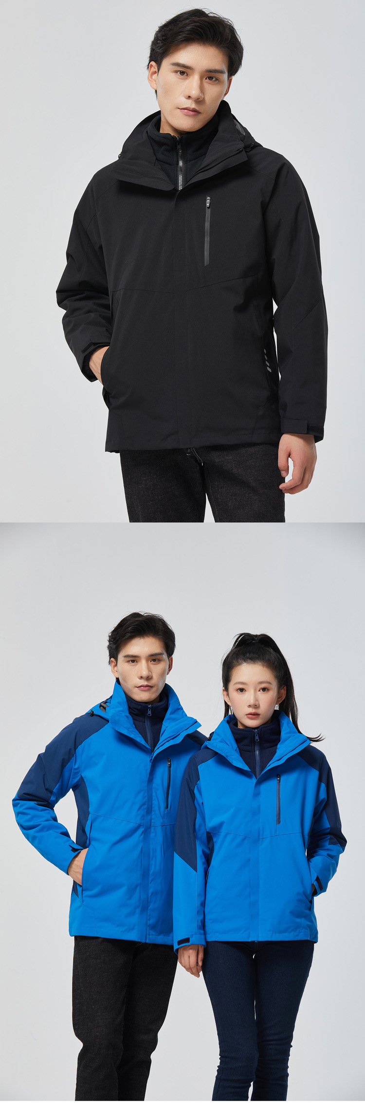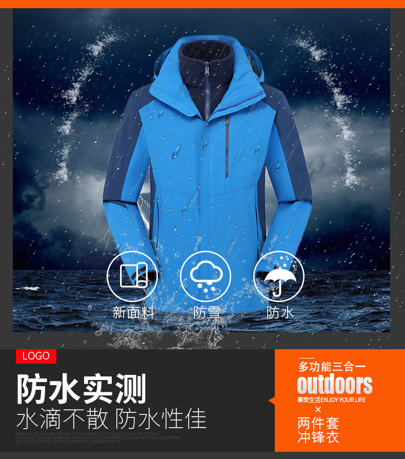 탈부착 가능한 투피스 세트가 있는 아웃도어 재킷, 3-in-1 가을 겨울 방풍 및 방수 기능, 두꺼운 보온 작업복, 맞춤형 로고스토어 가기