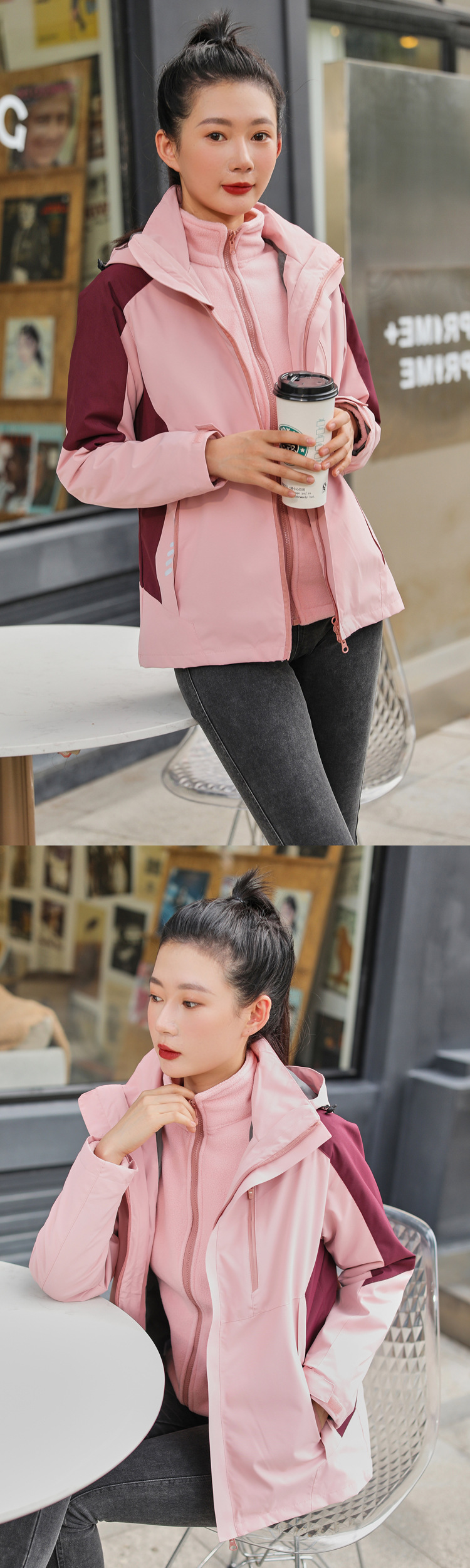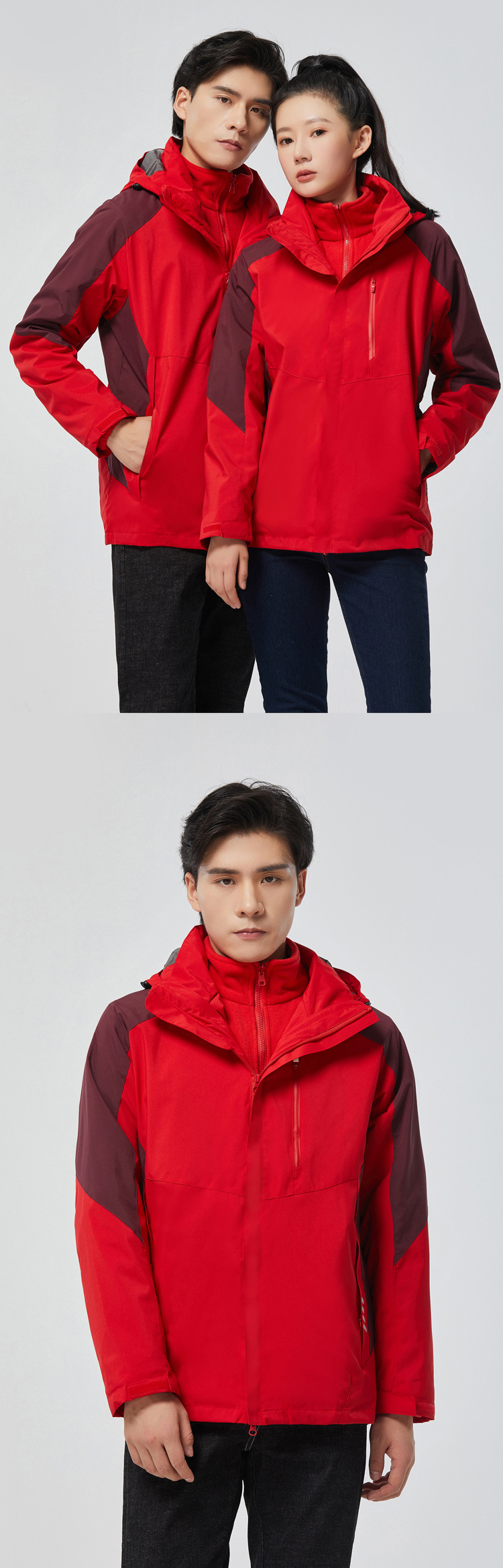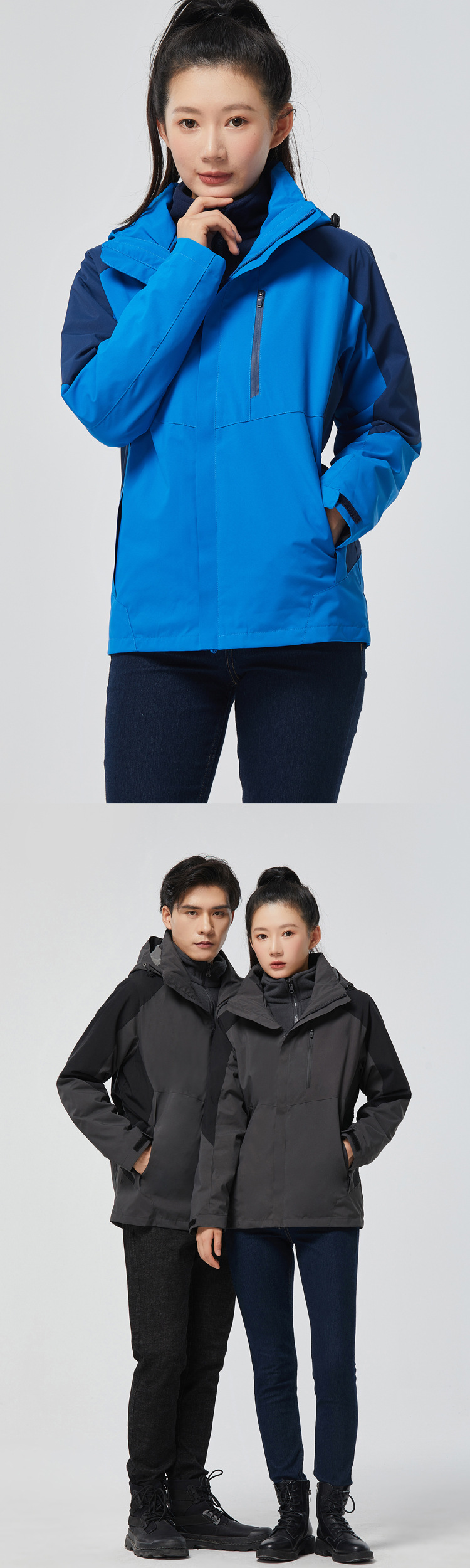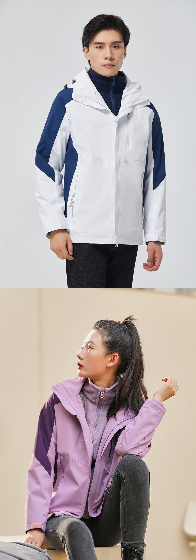 탈부착 가능한 투피스 세트가 있는 아웃도어 재킷, 3-in-1 가을 겨울 방풍 및 방수 기능, 두꺼운 보온 작업복, 맞춤형 로고스토어 가기