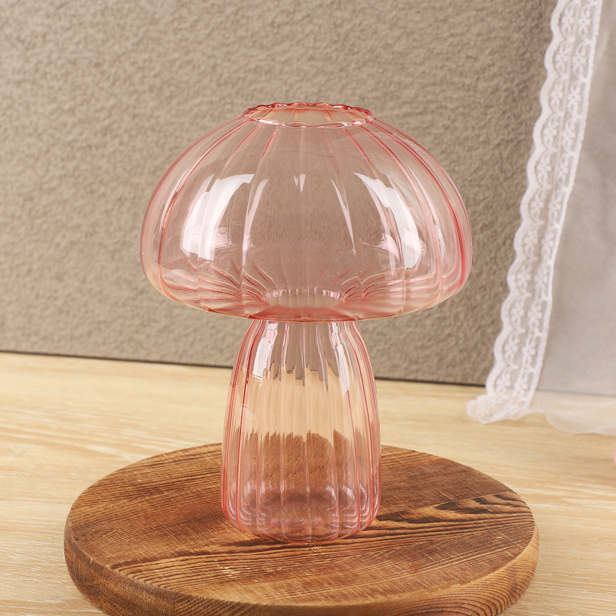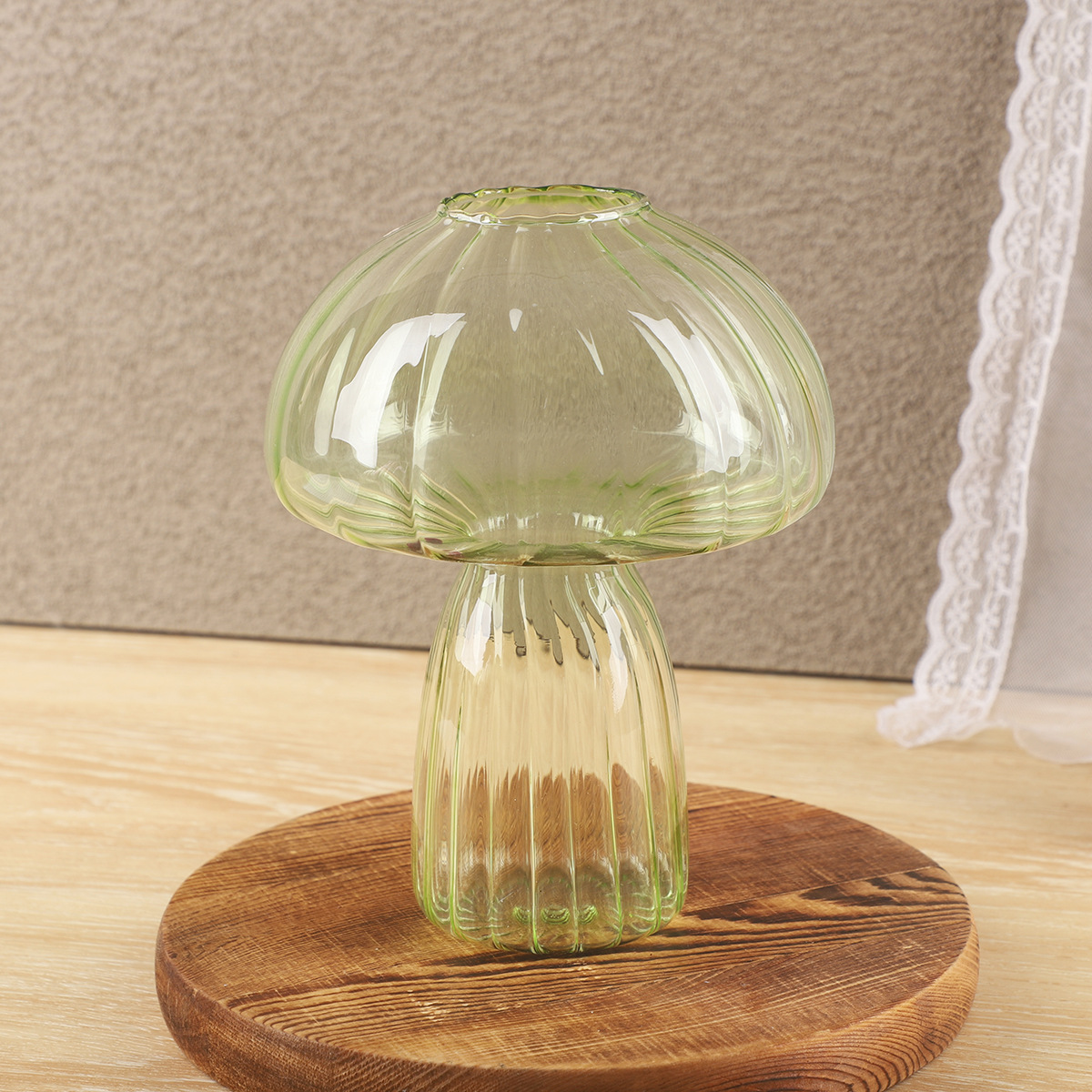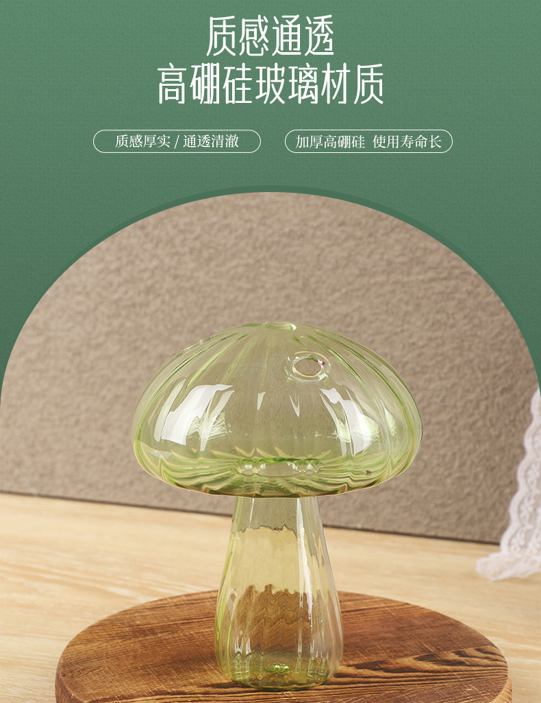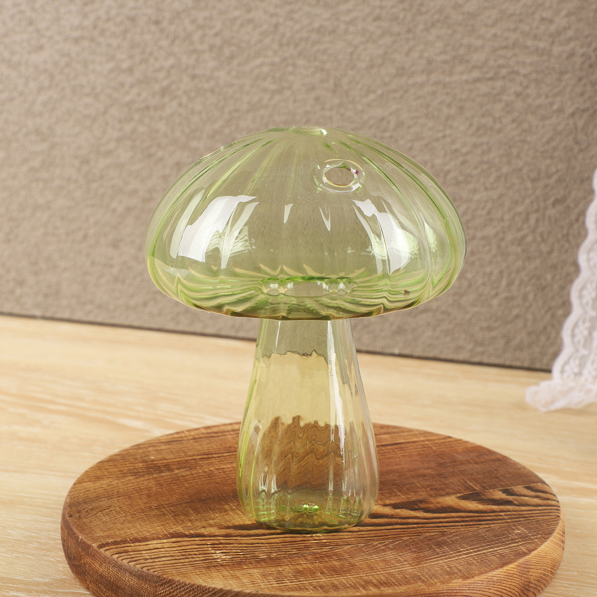 북유럽 신선하고 창조적 인 버섯 유리 꽃병 녹색 아마룸 수경 식물 꽃병 다채로운 투명 꽃병