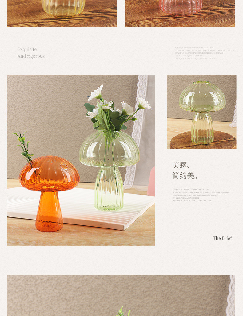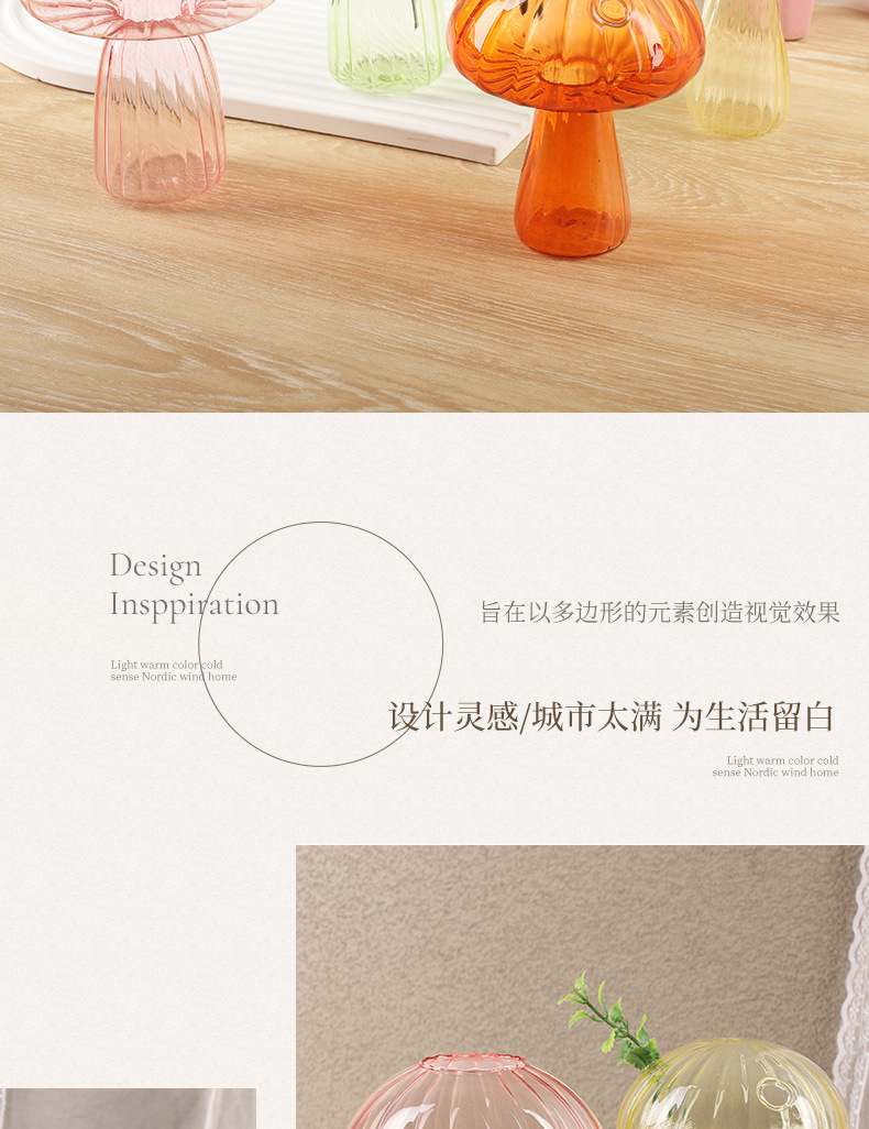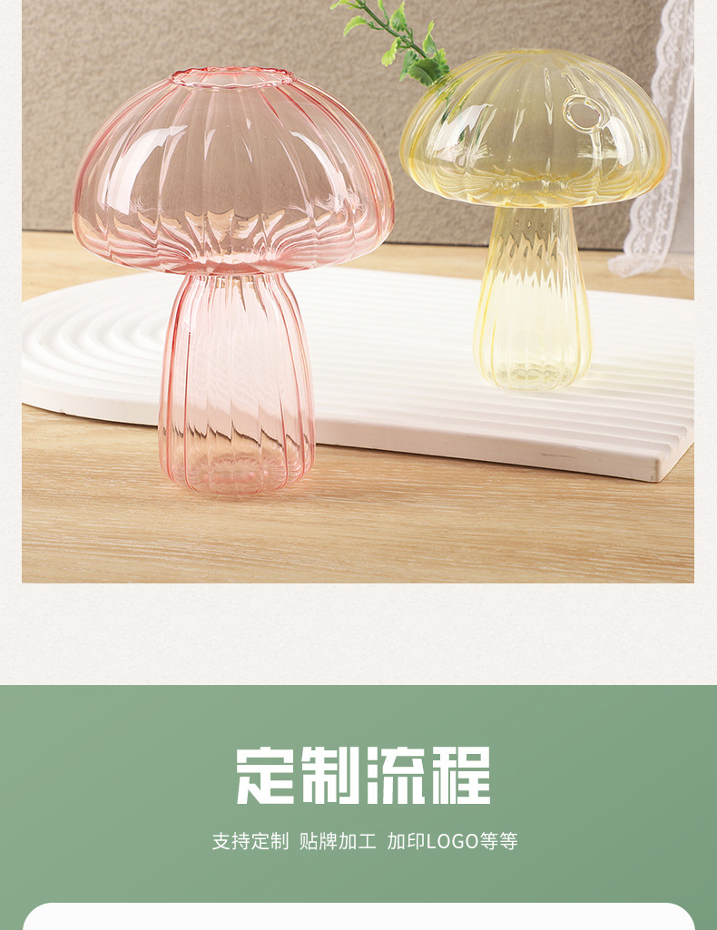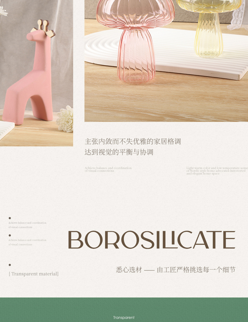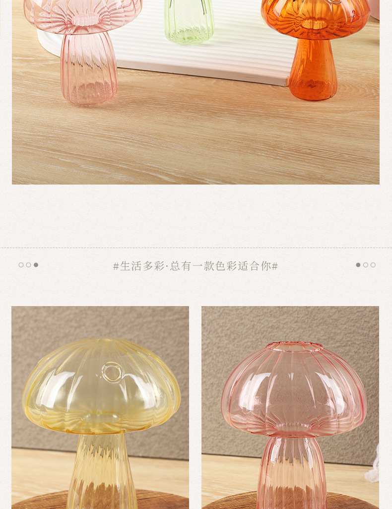 북유럽 신선하고 창조적 인 버섯 유리 꽃병 녹색 아마룸 수경 식물 꽃병 다채로운 투명 꽃병