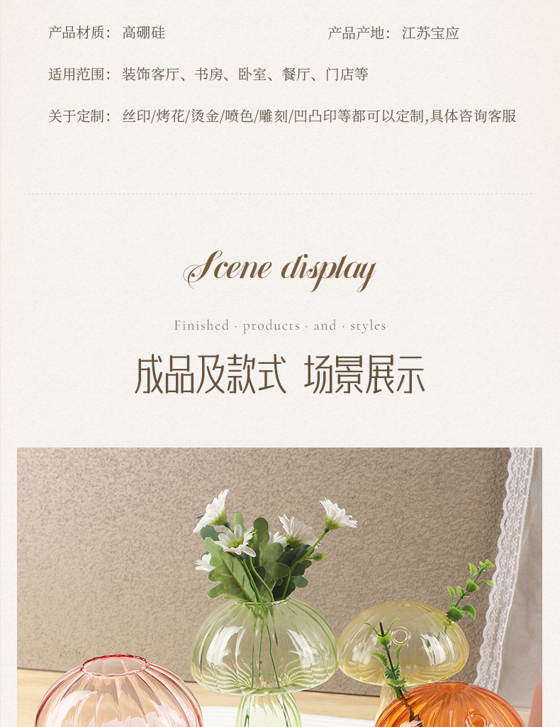 북유럽 신선하고 창조적 인 버섯 유리 꽃병 녹색 아마룸 수경 식물 꽃병 다채로운 투명 꽃병스토어 가기