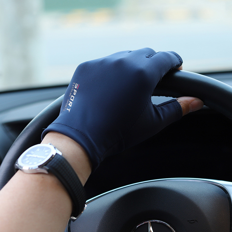 남성과 여성의 아이스 실크 하프 핑거 사이클링 스포츠 피트니스 남성용 손가락 누출 운전 고탄력 편안한 태양 보호 장갑