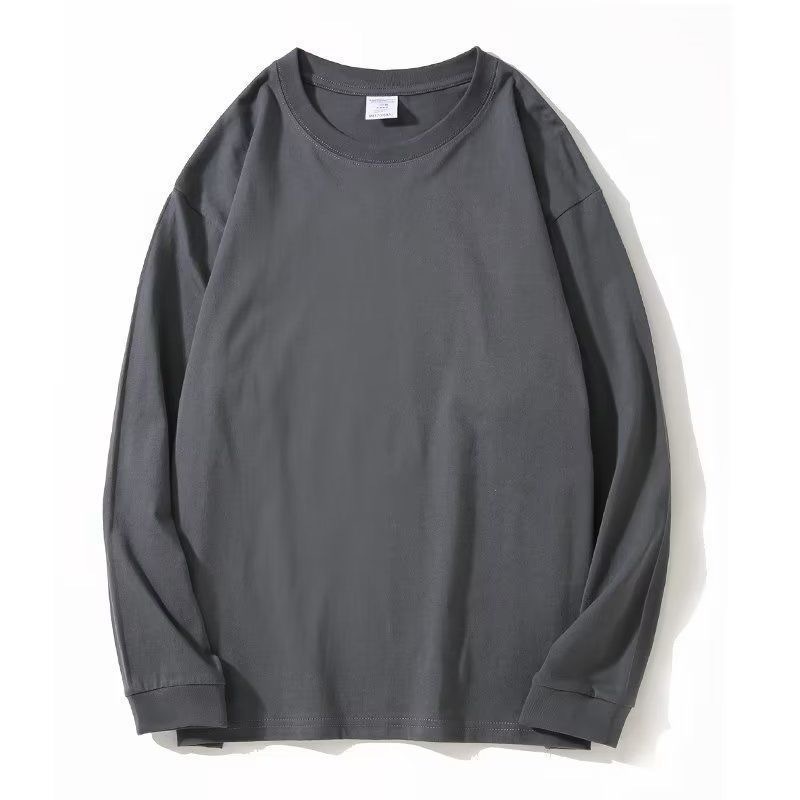 가을과 겨울 트렌디 브랜드 인 크루넥 긴팔 티셔츠 남성용 루즈한 솔리드 컬러 탑 베이스 셔츠 100 헤비 코튼