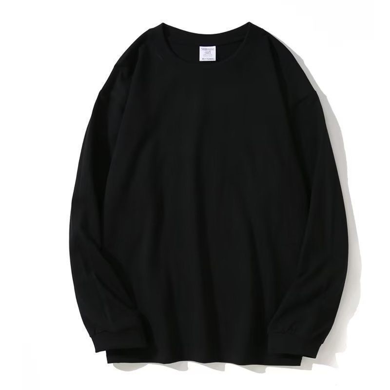 가을과 겨울 트렌디 브랜드 인 크루넥 긴팔 티셔츠 남성용 루즈한 솔리드 컬러 탑 베이스 셔츠 100 헤비 코튼스토어 가기