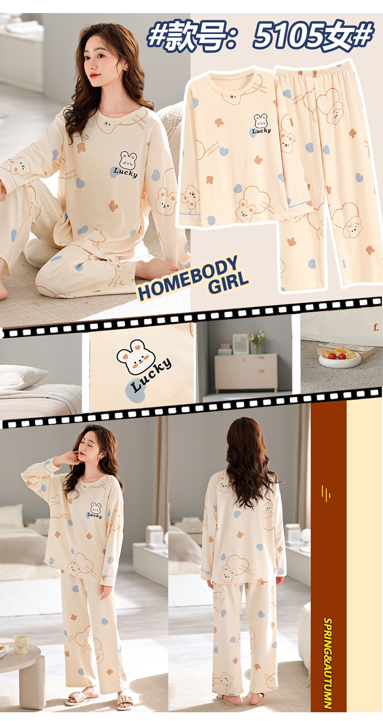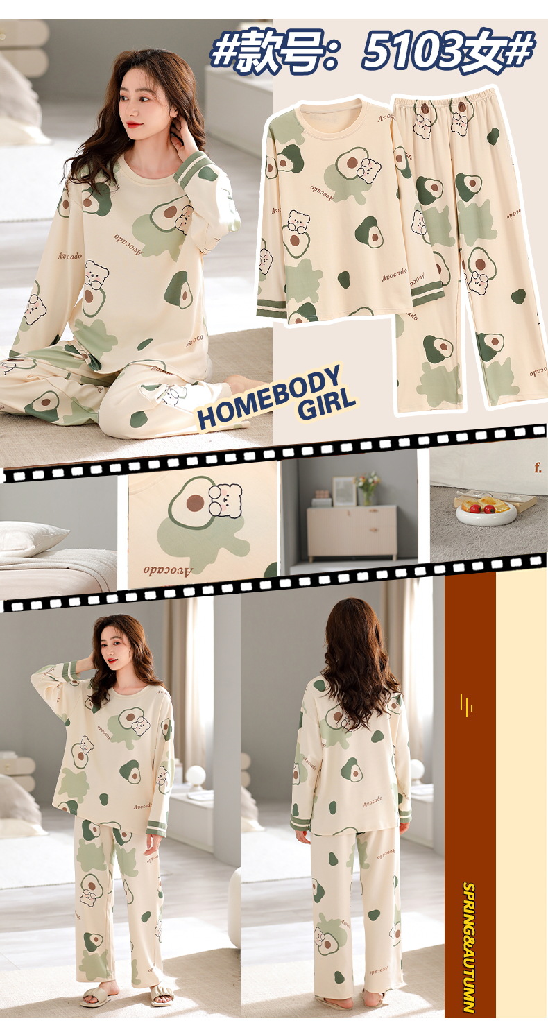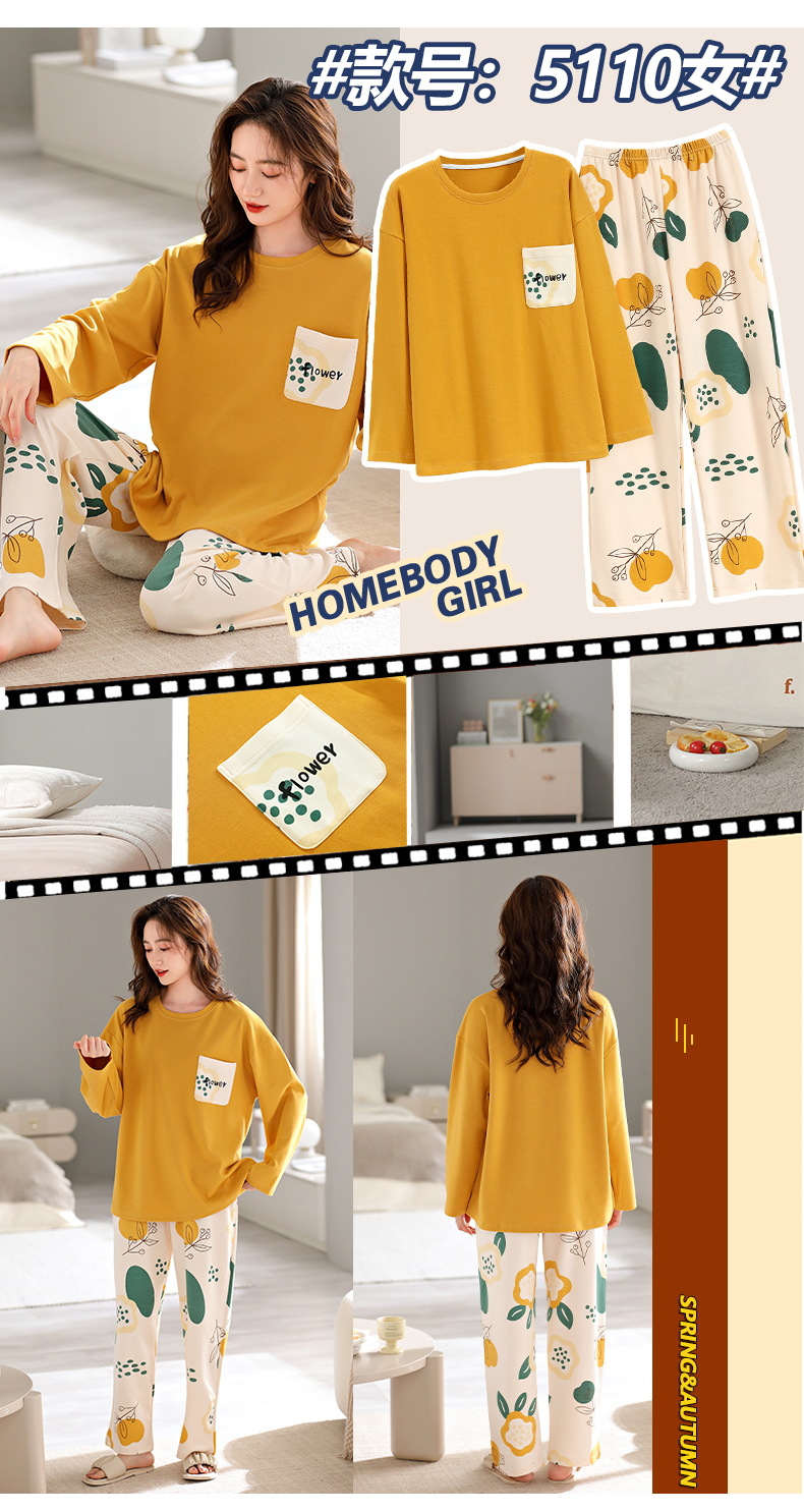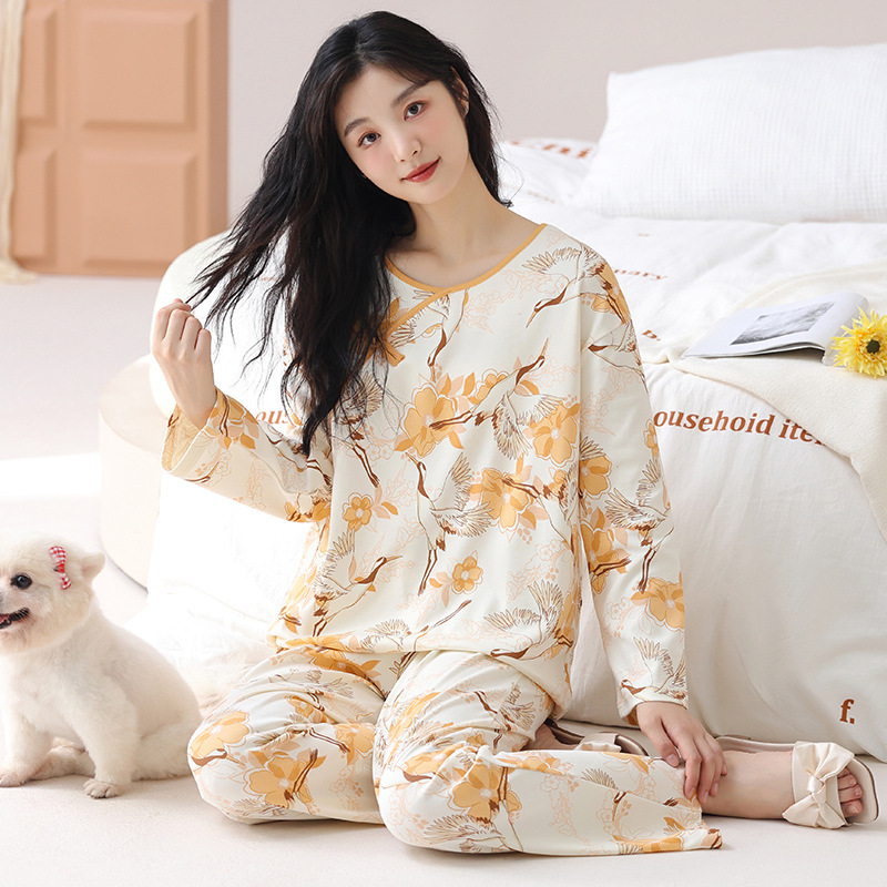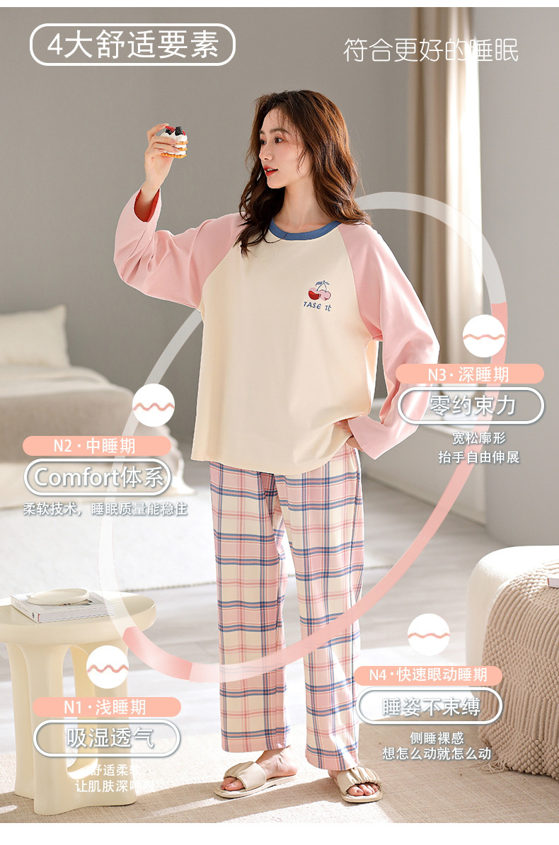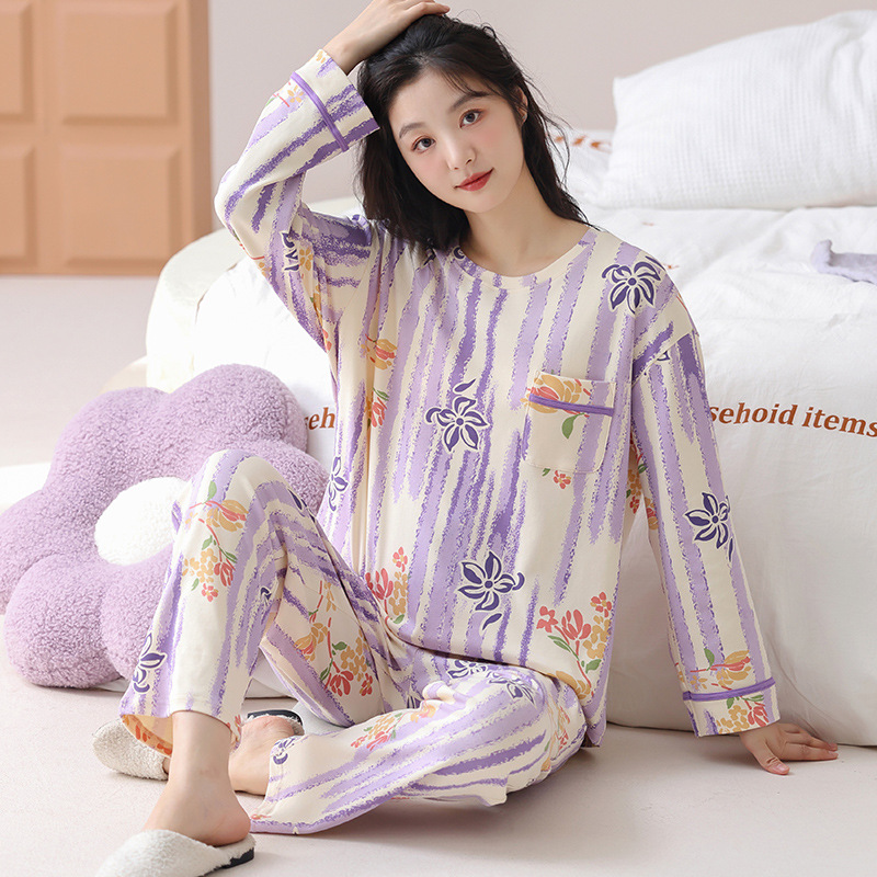 여성용 잠옷 봄 가을용 면 소재 긴팔 여성용 가을 2025년 신상 가을 겨울 얇은 대형 사이즈 봄 홈웨어스토어 가기