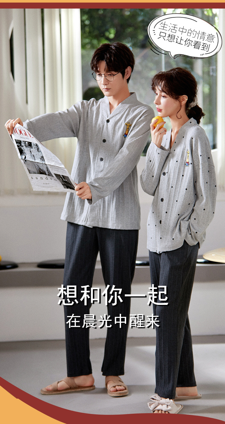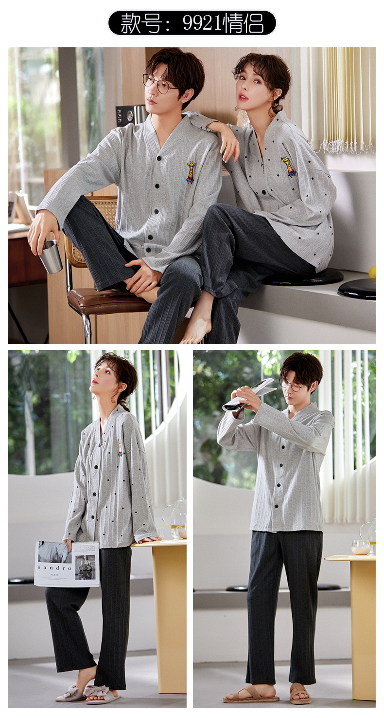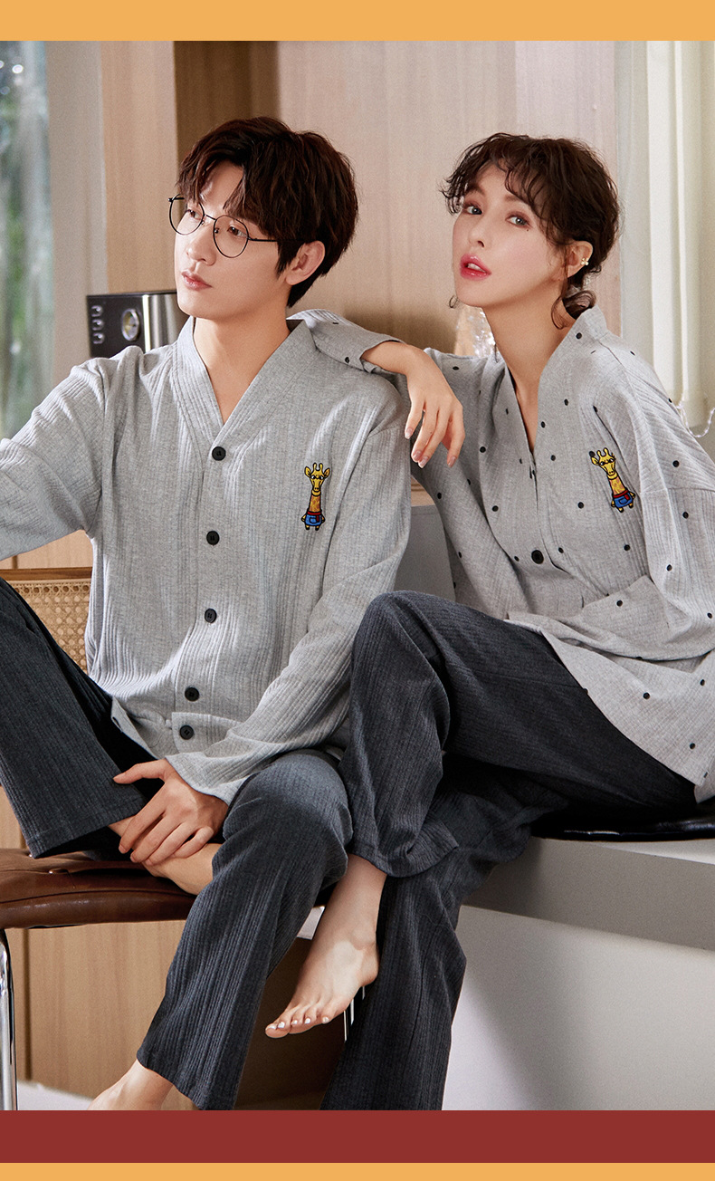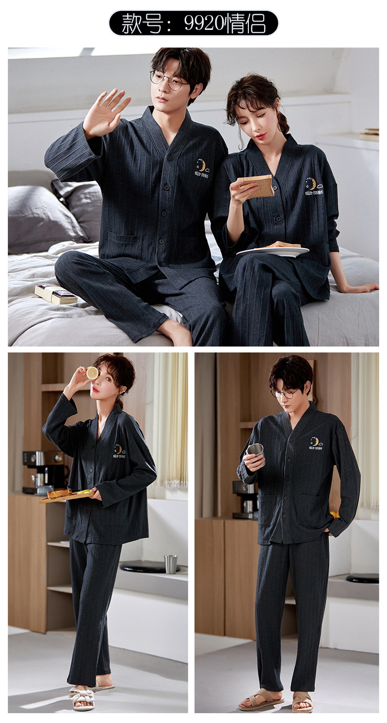 크로스 보더 커플 잠옷 여자의 봄과 가을 기모노 긴 소매 가디건 세트 잠옷 니트 면 남자의 가정 의류스토어 가기