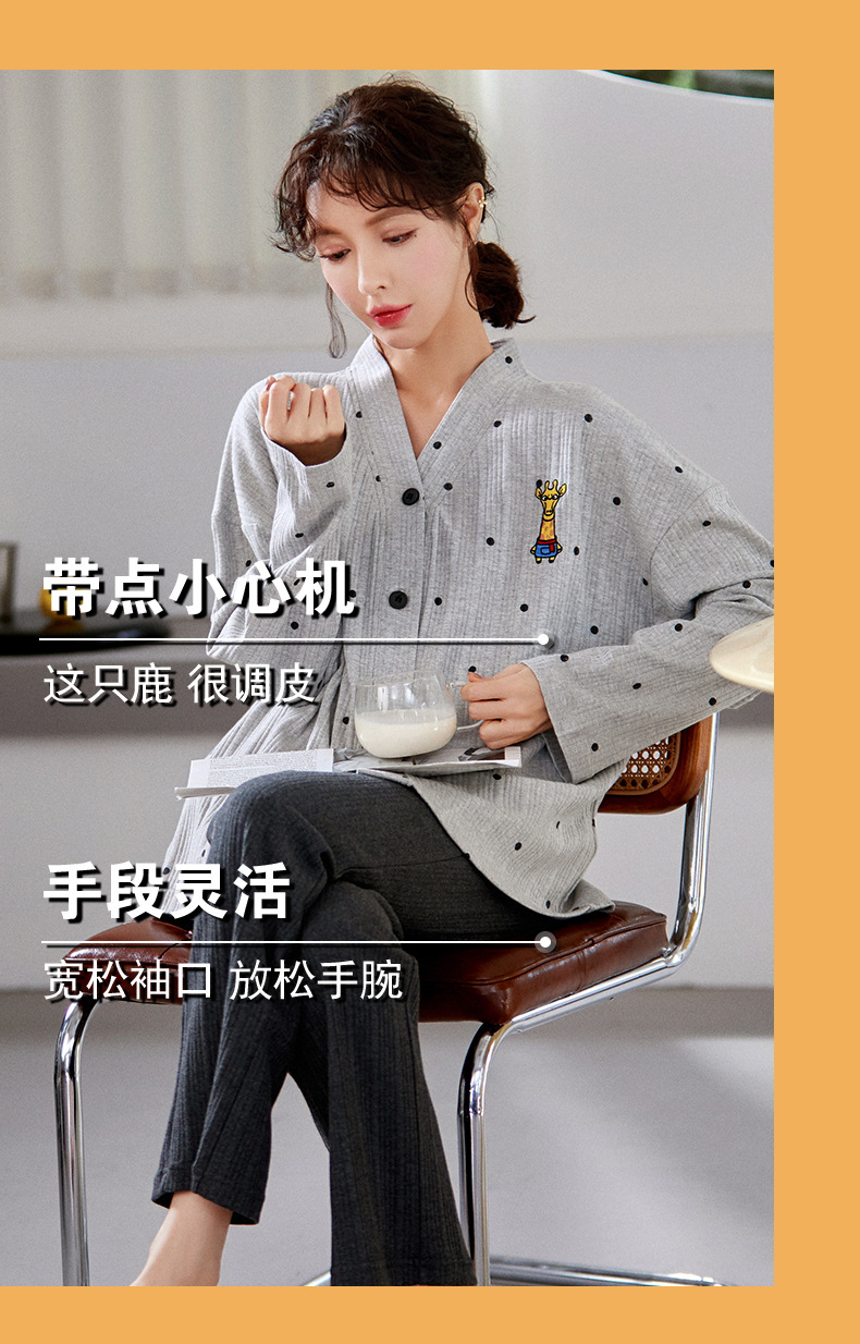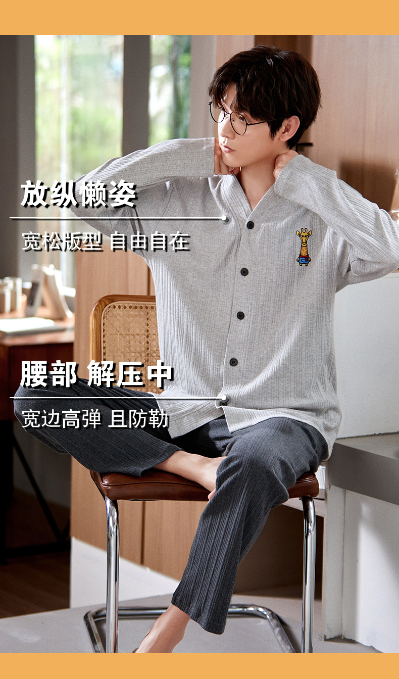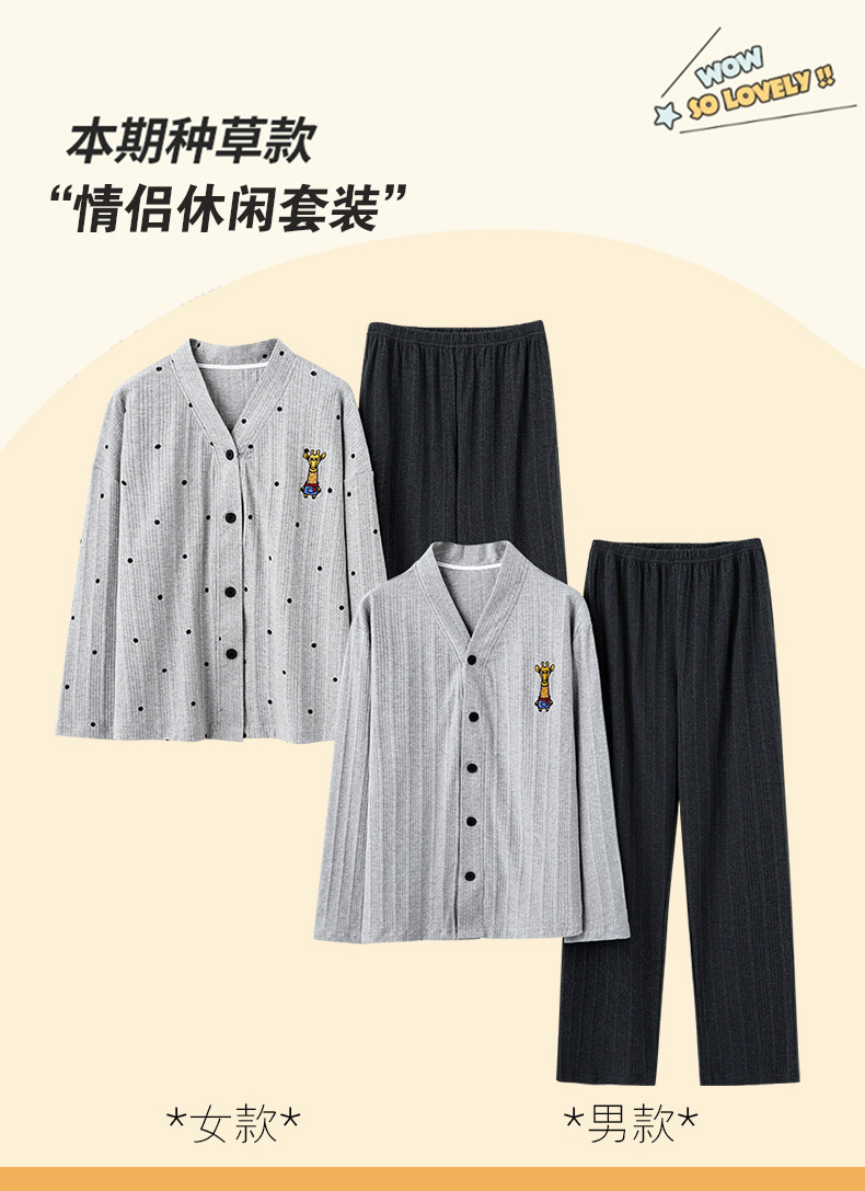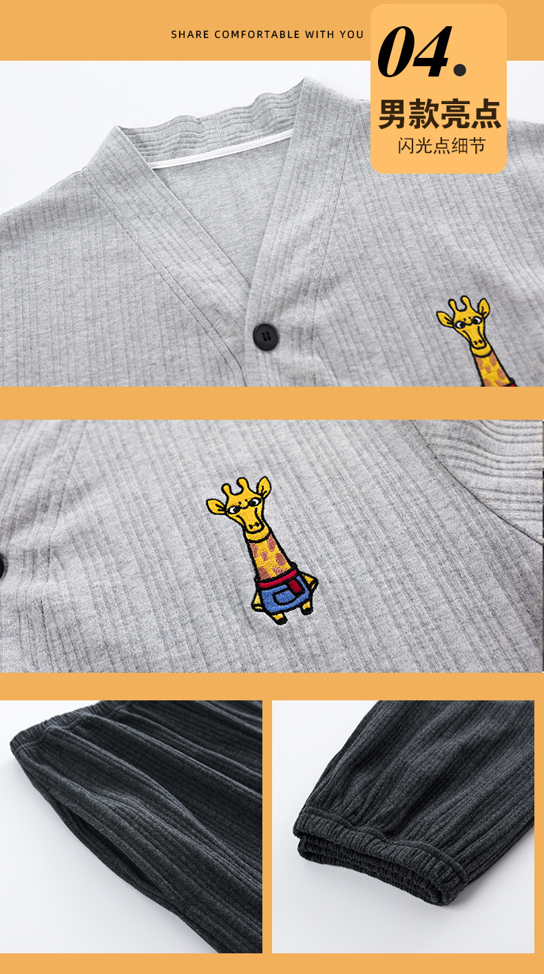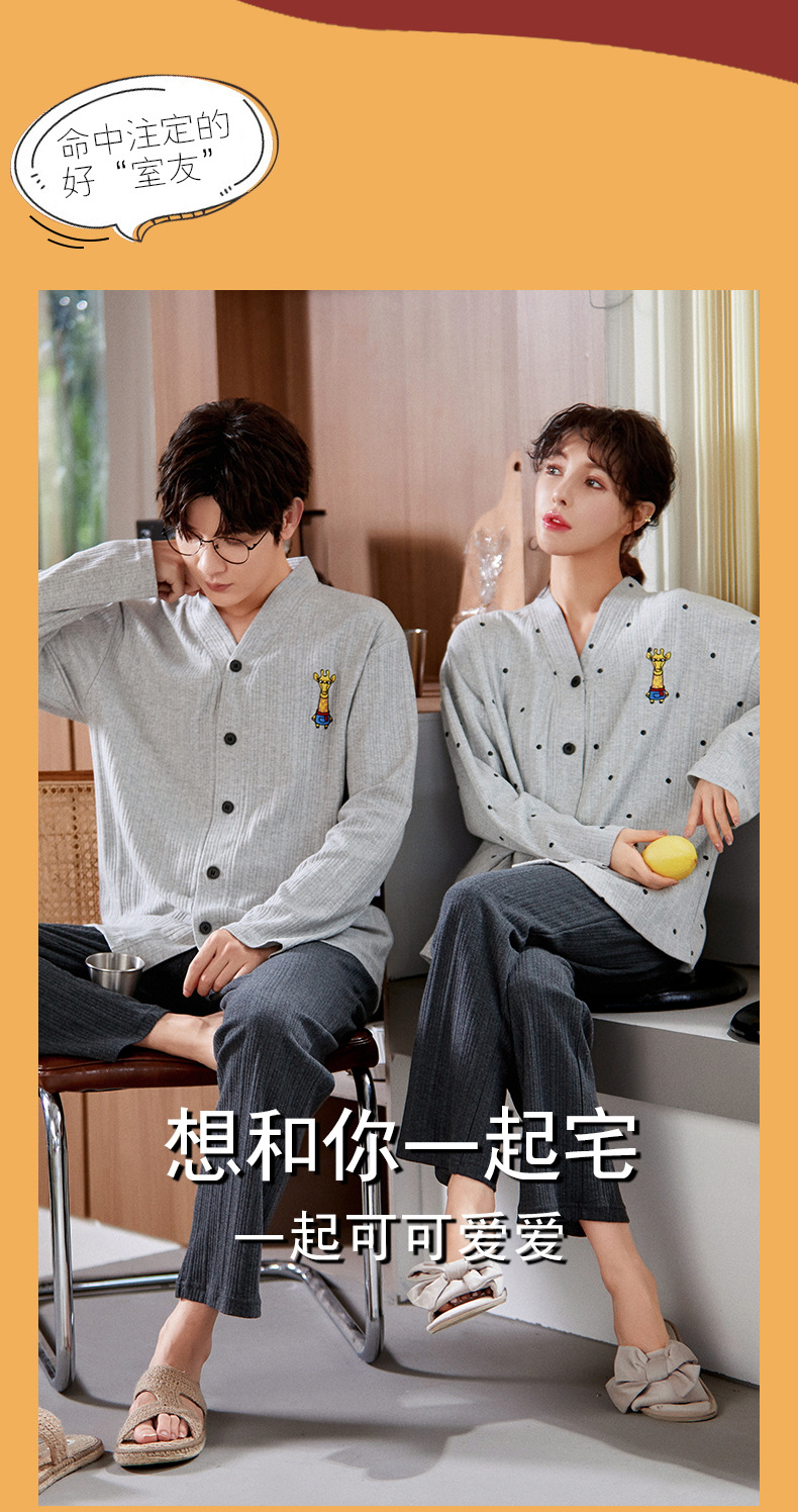 크로스 보더 커플 잠옷 여자의 봄과 가을 기모노 긴 소매 가디건 세트 잠옷 니트 면 남자의 가정 의류스토어 가기