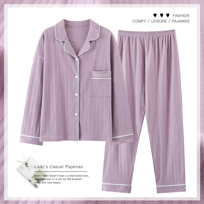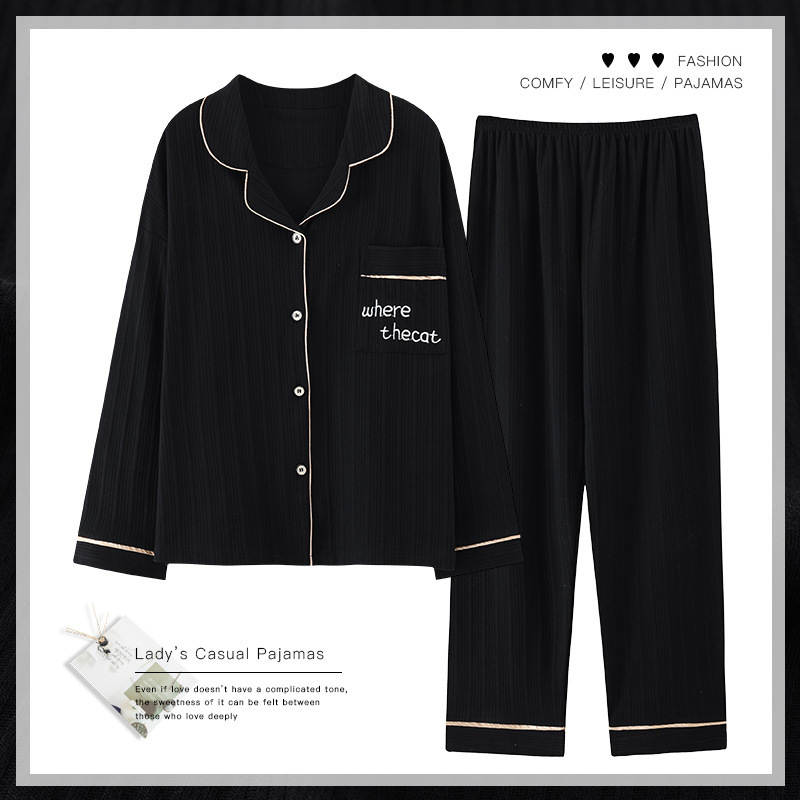 2023 새로운 잠옷 여자의 봄과 가을 여자의 면 잠옷 가디건 간단한 캐주얼 아웃웨어 가정복 세트스토어 가기