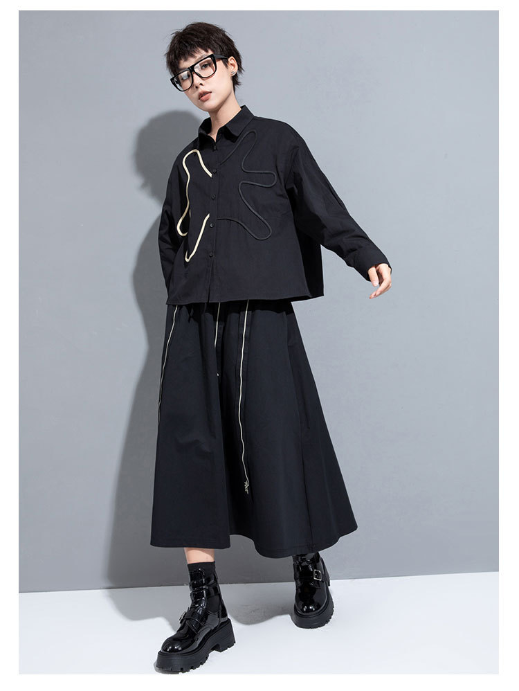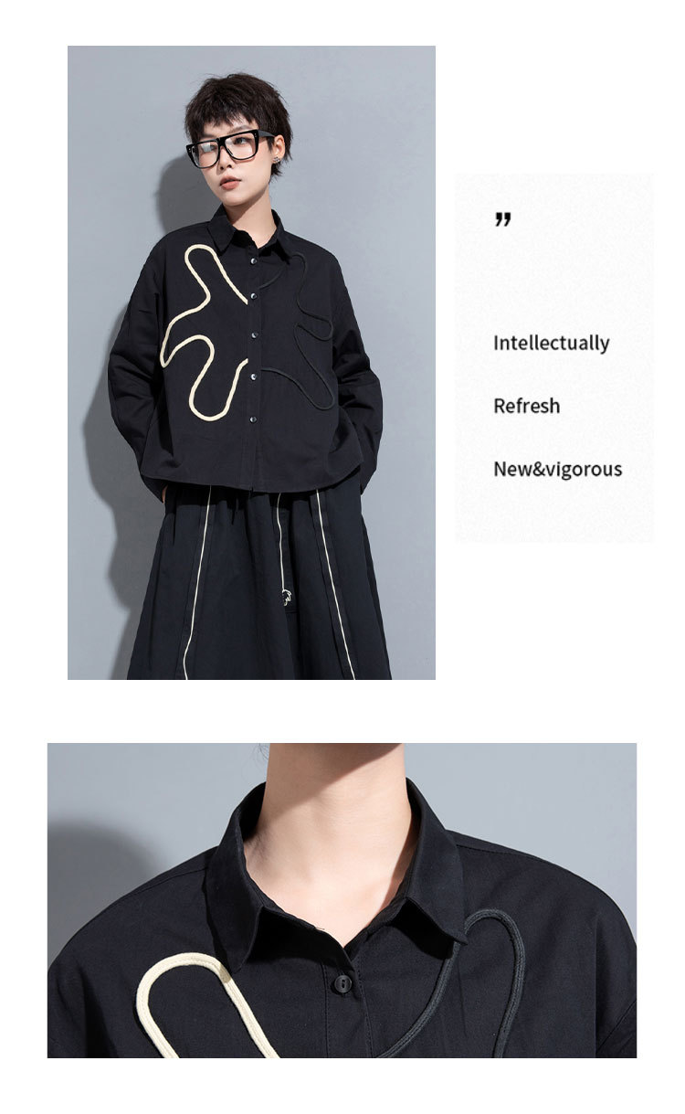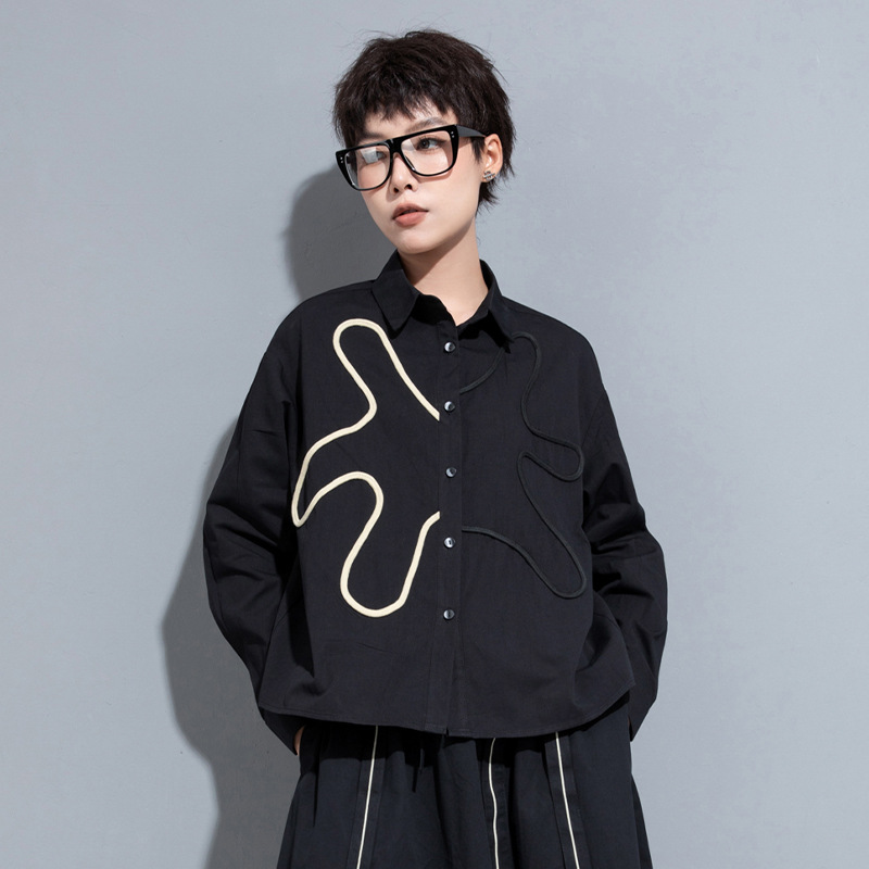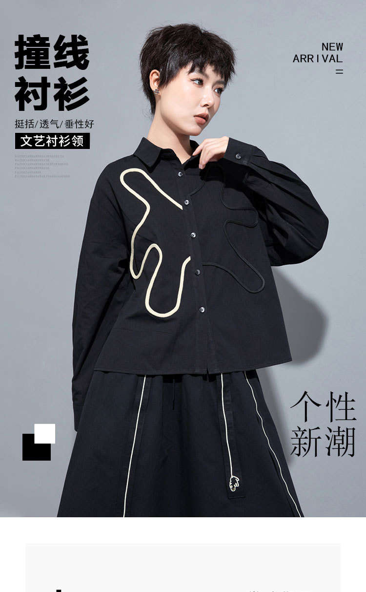 가을 새로운 느슨한 패션 캐주얼 모든 매치 셔츠 디자인 감각 틈새 성격 서양식 슬리밍 여성의 긴 소매 탑스토어 가기