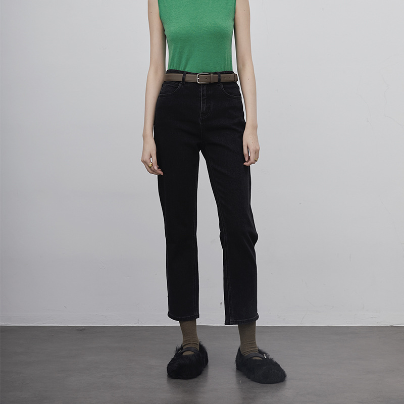 MCL 유기농 스트레치 빨간 귀 청바지 여성용 23ss 가을과 겨울 두꺼운 따뜻한 하이 웨이스트 스트레이트 파이프와 프렌치 스틱 팬츠스토어 가기