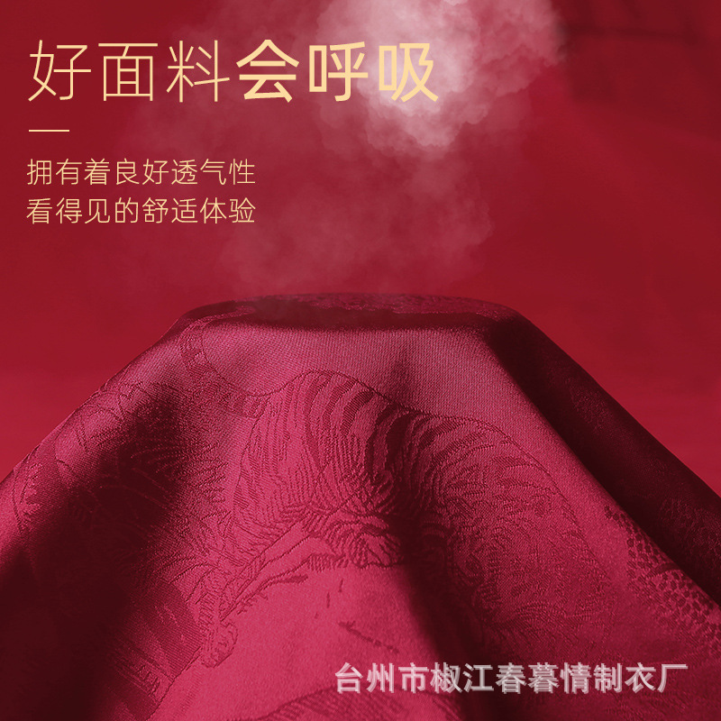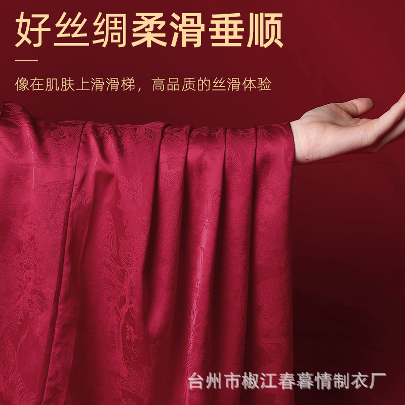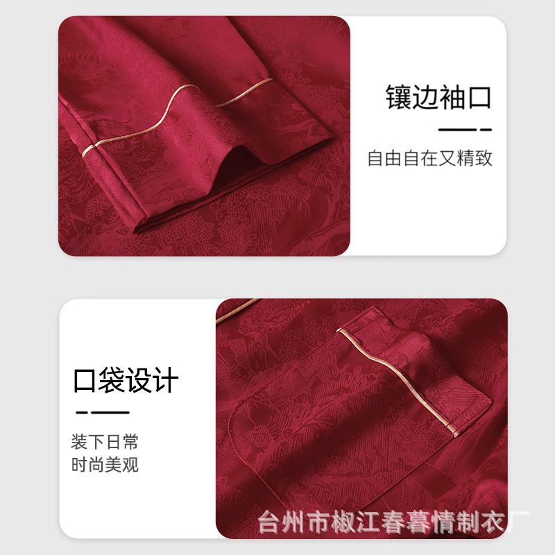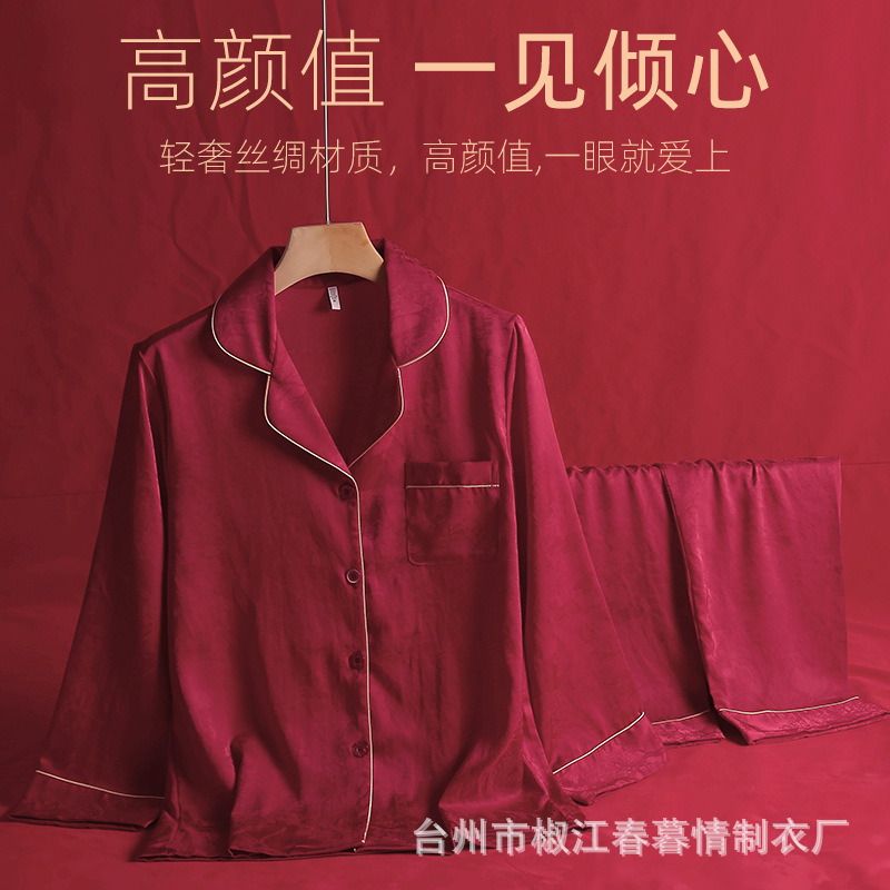 웨딩 잠옷 신부 커플 아이스 실크 세트 한 남자와 한 여자 레드 인터넷 연예인 자카드 가정 옷 봄과 가을스토어 가기
