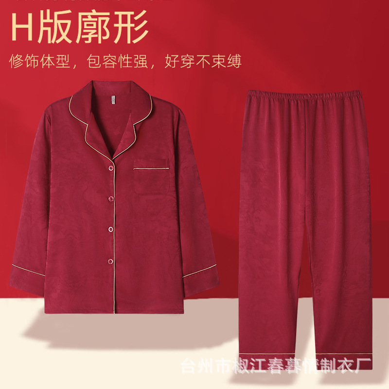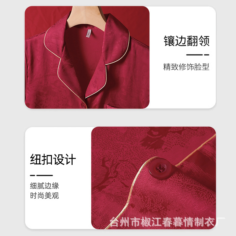 웨딩 잠옷 신부 커플 아이스 실크 세트 한 남자와 한 여자 레드 인터넷 연예인 자카드 가정 옷 봄과 가을