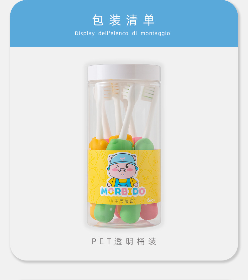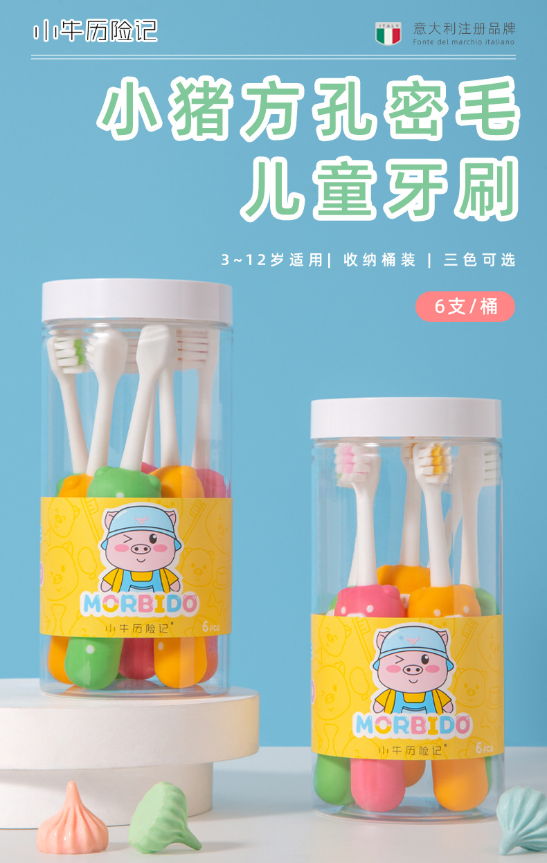 송아지 모험 아기 칫솔 어린이 새끼 돼지 만화 사각 구멍 부드러운 머리 칫솔 6 배럴 3-12 세 가정
