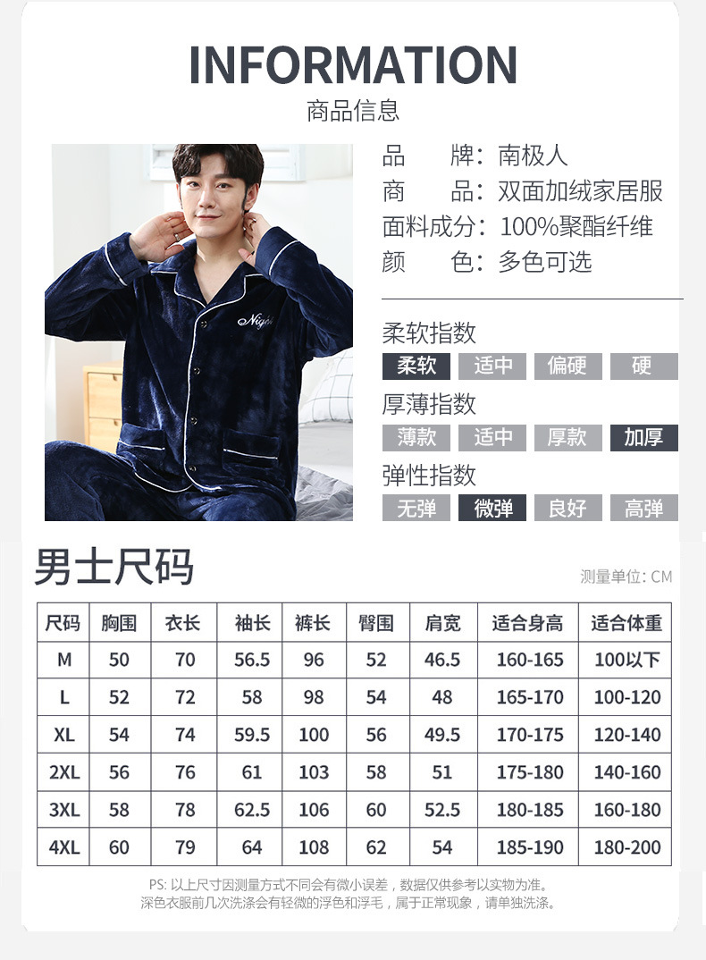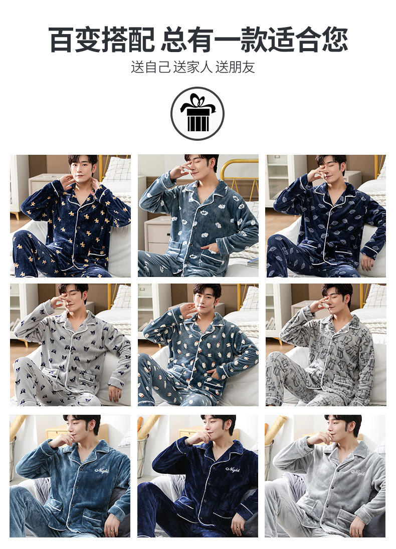 Nanjiren 남자의 잠옷 남자의 겨울 새로운 두꺼운 기모 플란넬 가정 옷 산호 양털 가을과 겨울 따뜻한스토어 가기