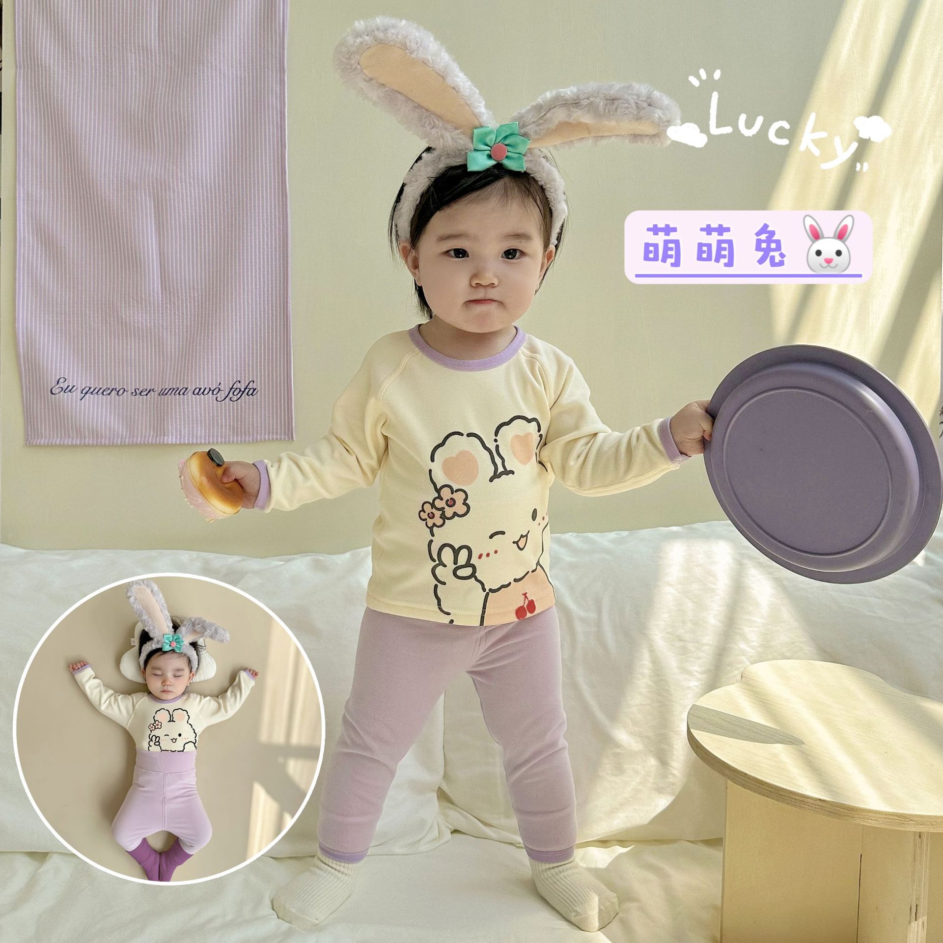 24 아기 뼈없는 높은 허리 속옷 세트 어린이 봄과 가을 양털 가을 옷과 바지 여성 보물 소년 홈 옷