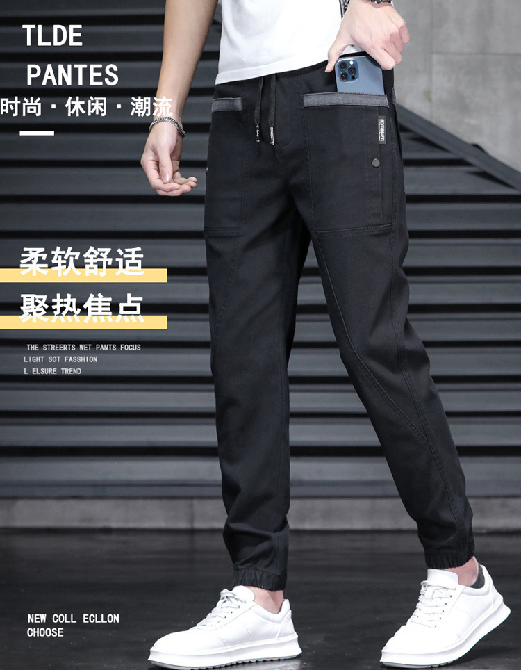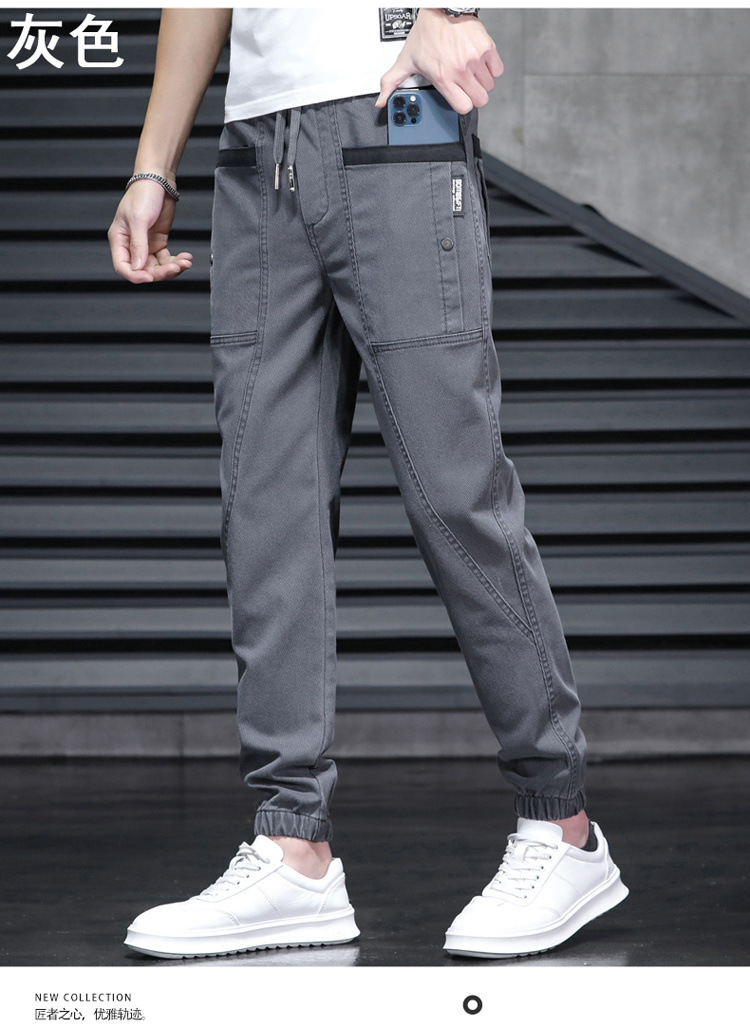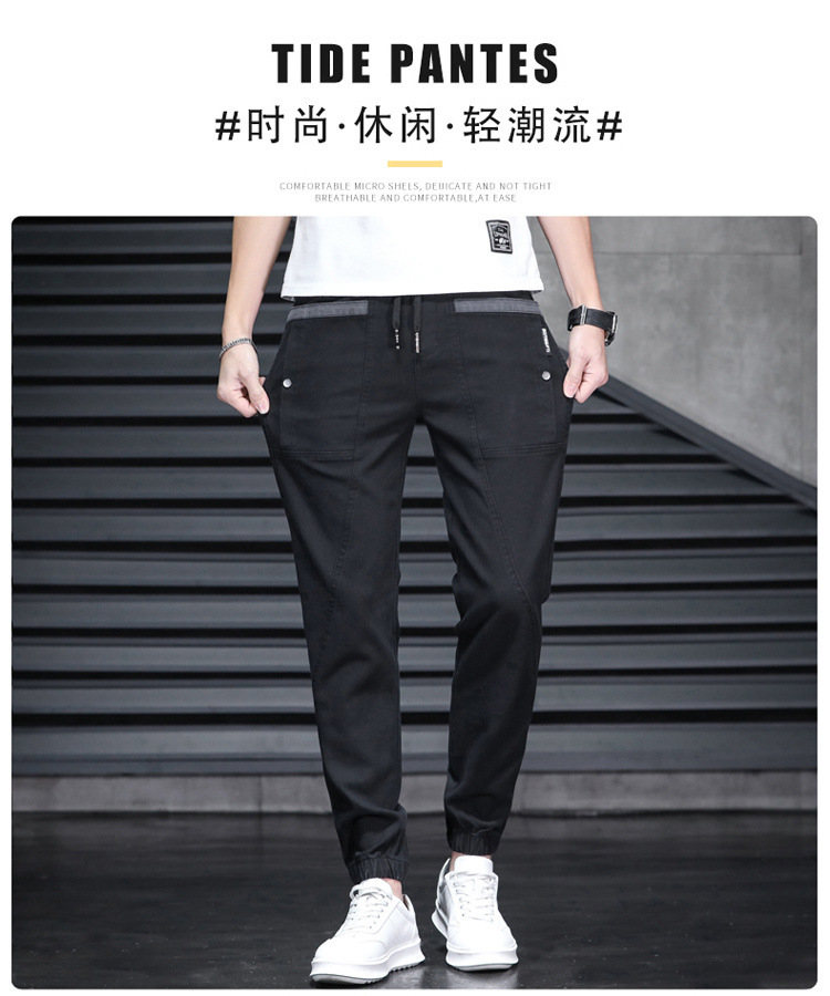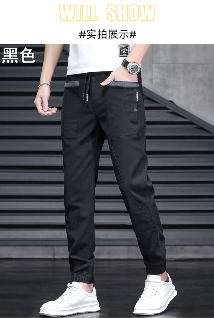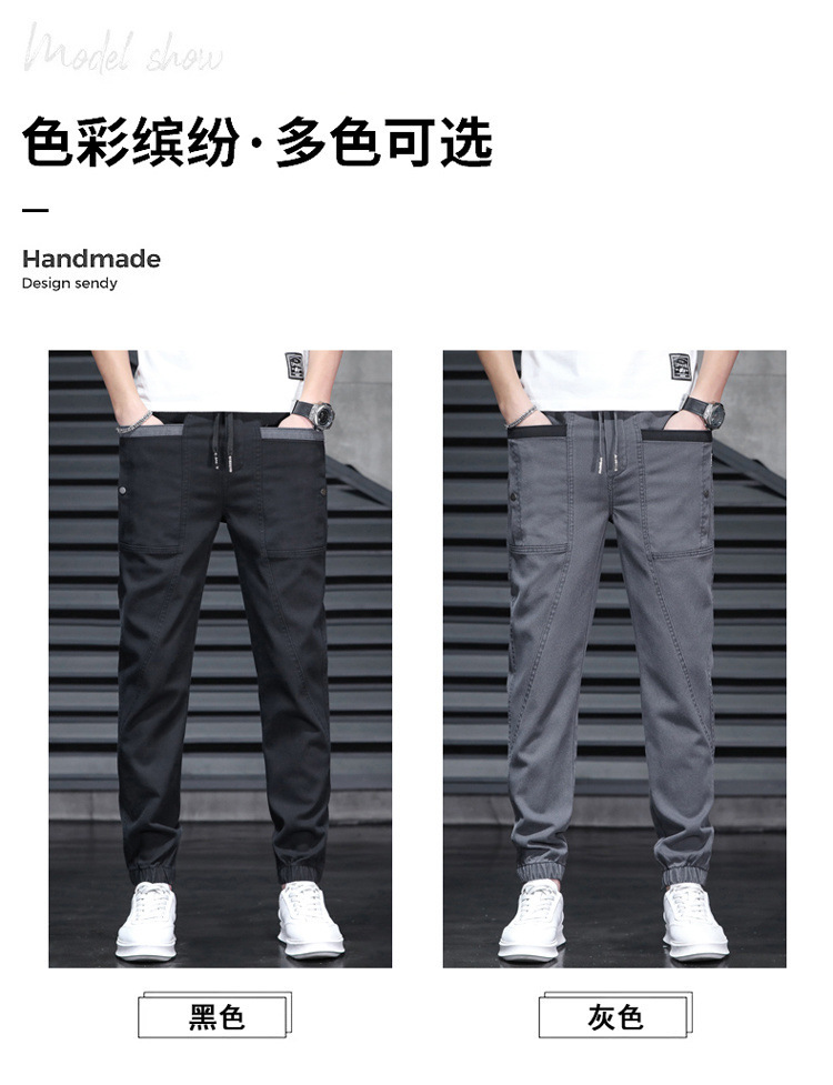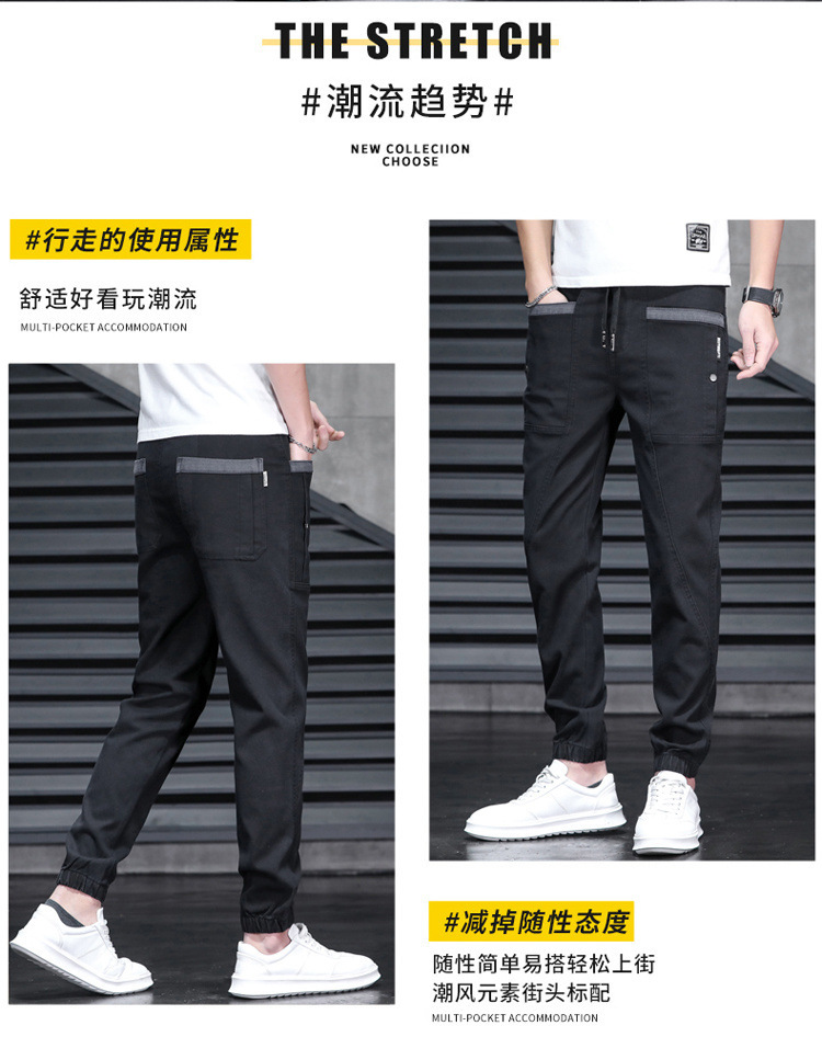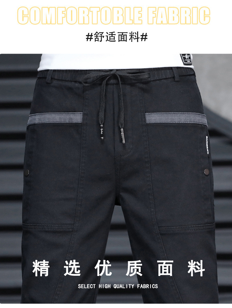 束脚弹力男士休闲裤春季厚款九分男裤抽绳松紧腰百搭六兜男款工裤스토어 가기