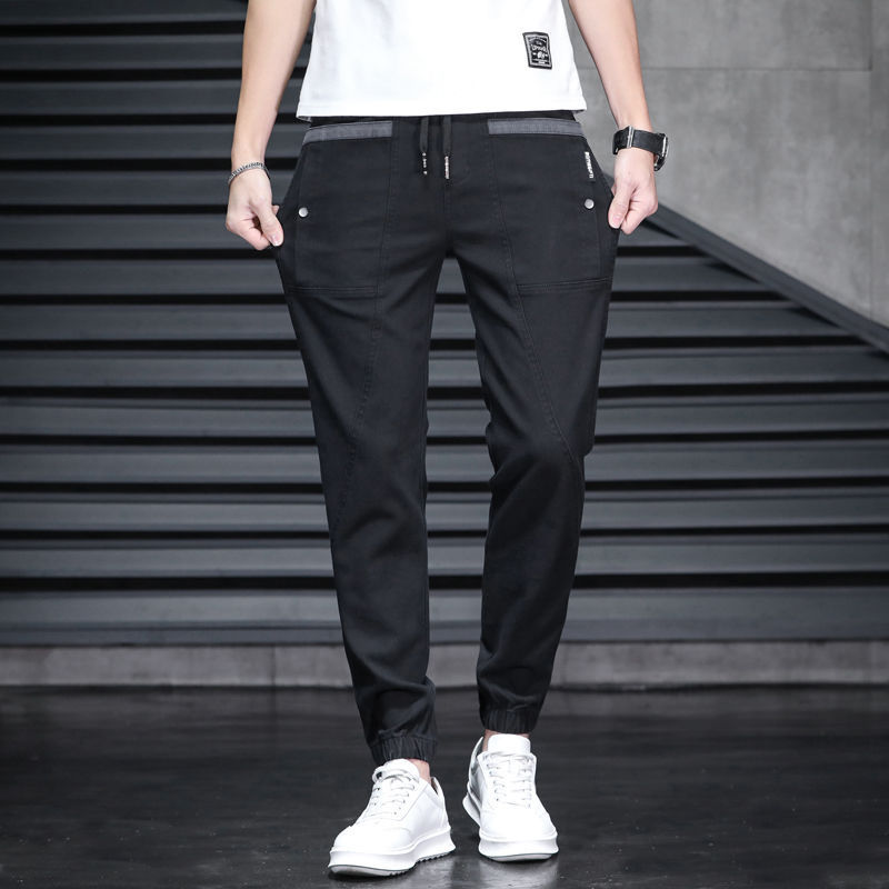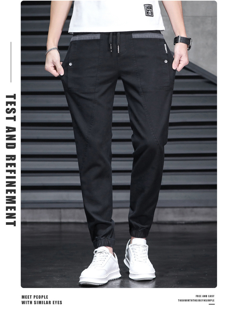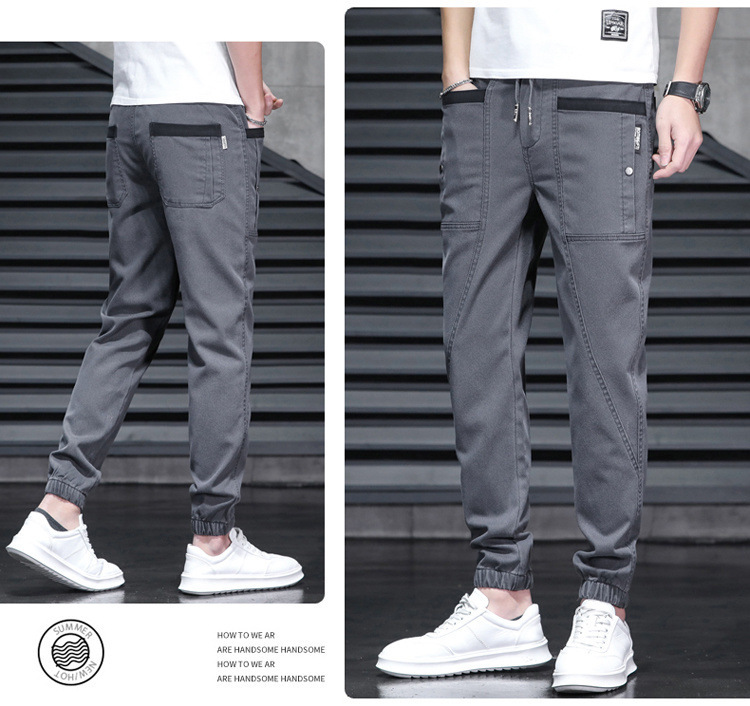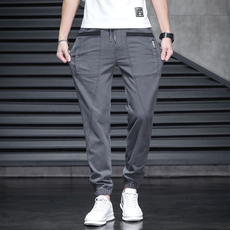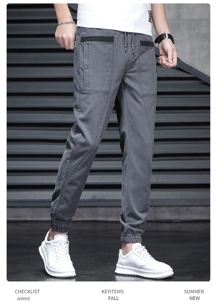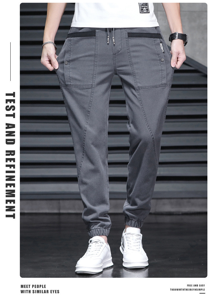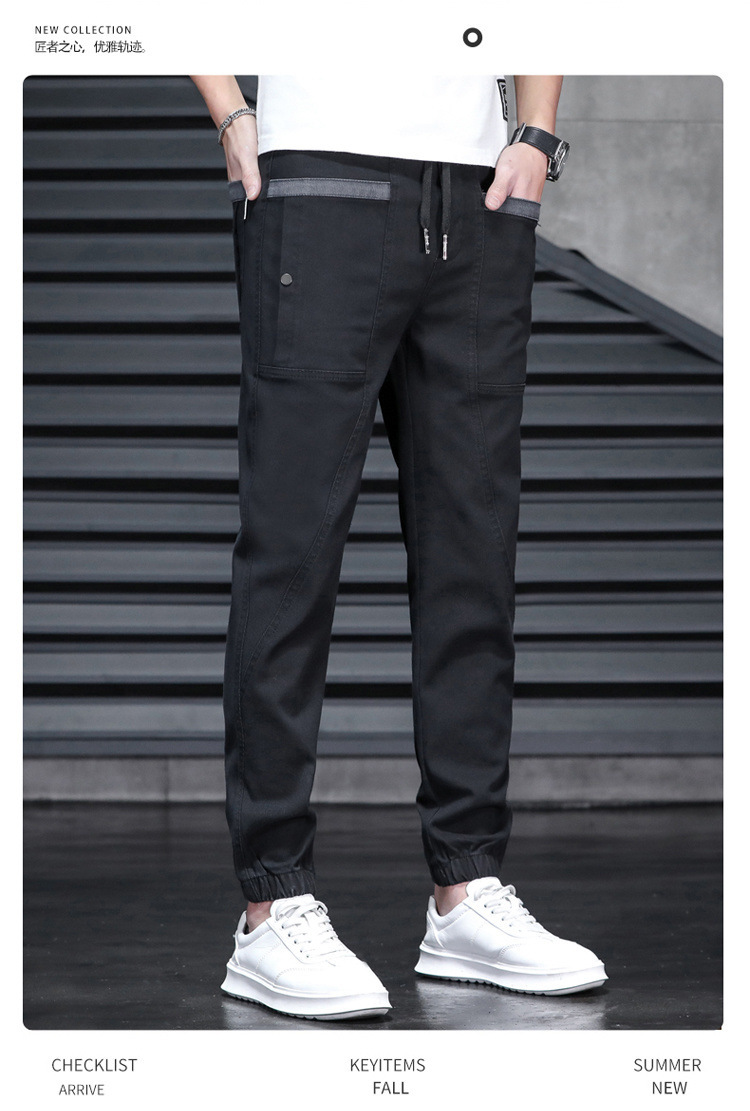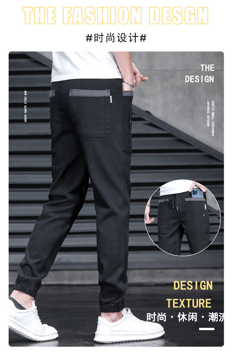 束脚弹力男士休闲裤春季厚款九分男裤抽绳松紧腰百搭六兜男款工裤스토어 가기
