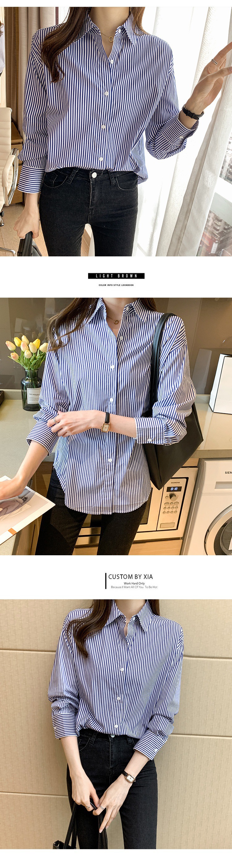 엄선된 스트라이프 셔츠 여성 봄 2021 새로운 한국 스타일 루즈한 이너웨어 및 아우터 전문 셔츠 다용도 코튼 탑