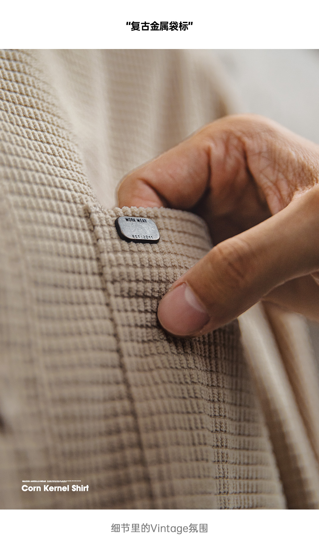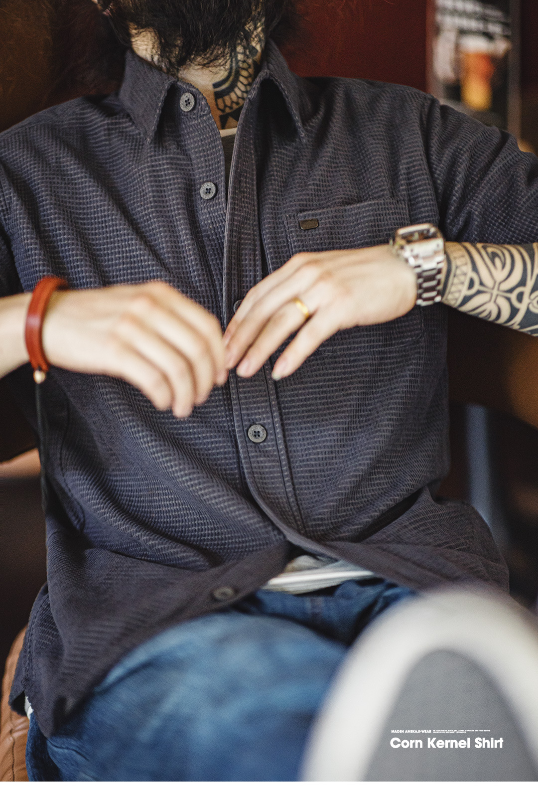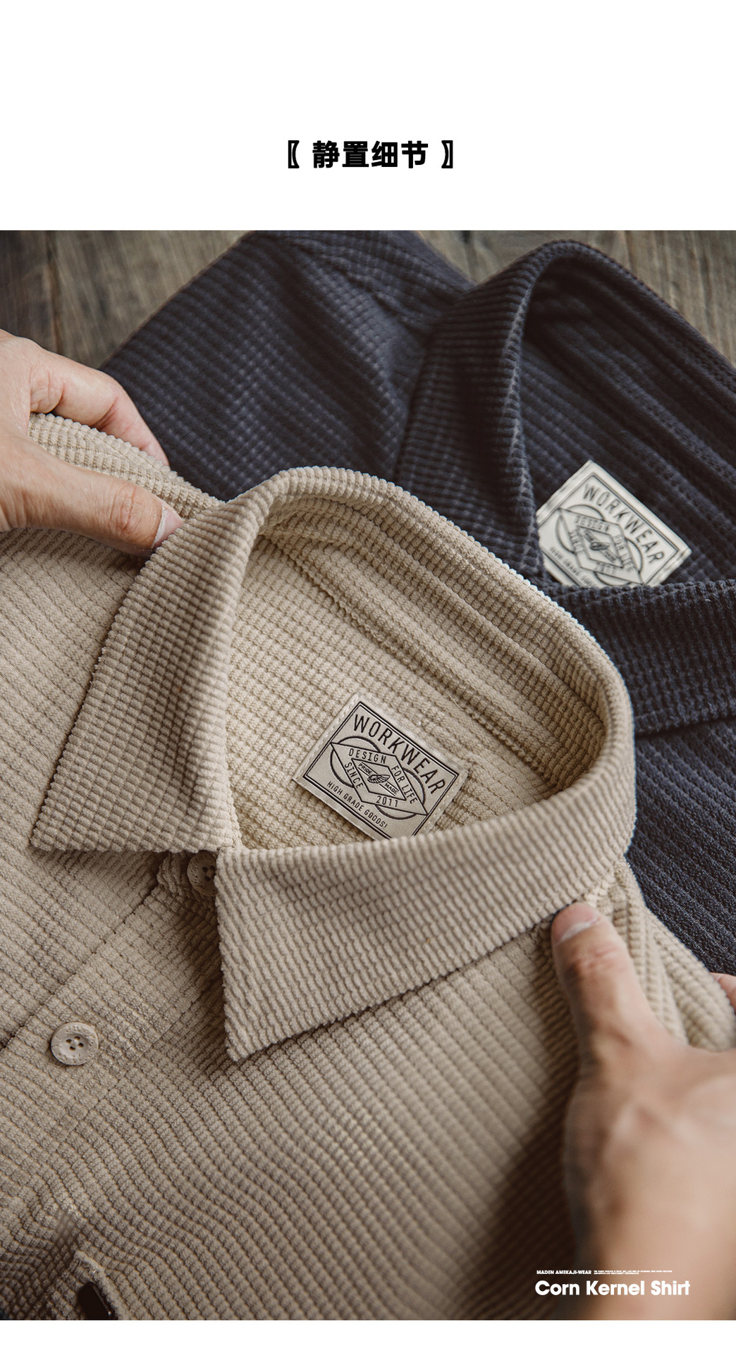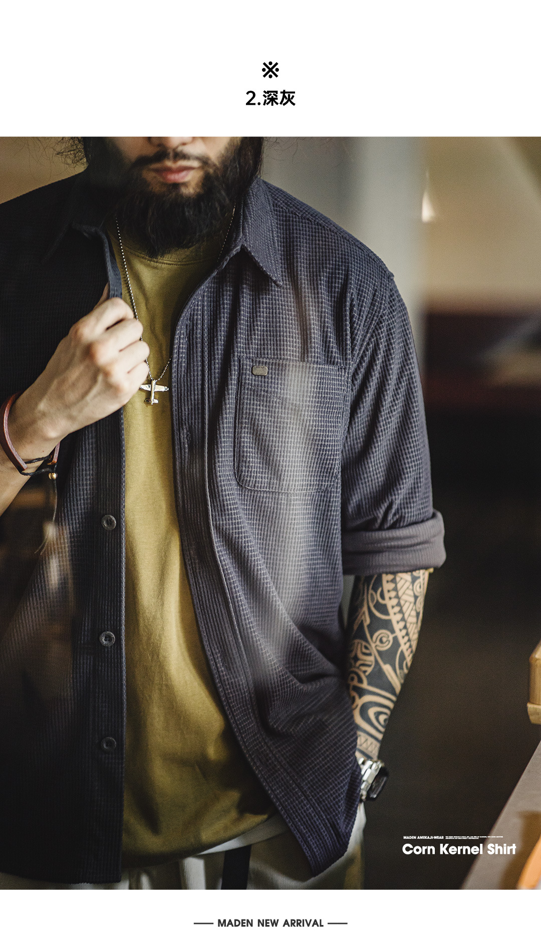 Madden 툴링 미국 복고풍 옥수수 곡물 격자 무늬 셔츠 옷깃 단색 캐주얼 휴식 긴 소매 셔츠 남성용 가을