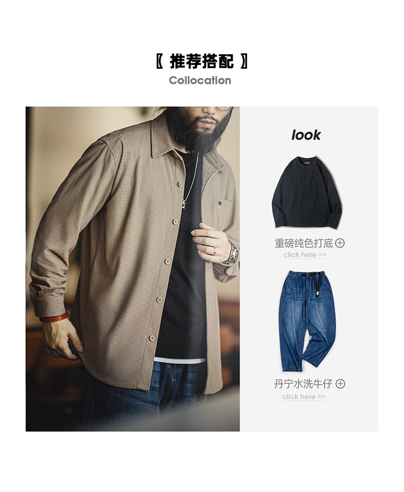 Madden 툴링 미국 복고풍 옥수수 곡물 격자 무늬 셔츠 옷깃 단색 캐주얼 휴식 긴 소매 셔츠 남성용 가을스토어 가기