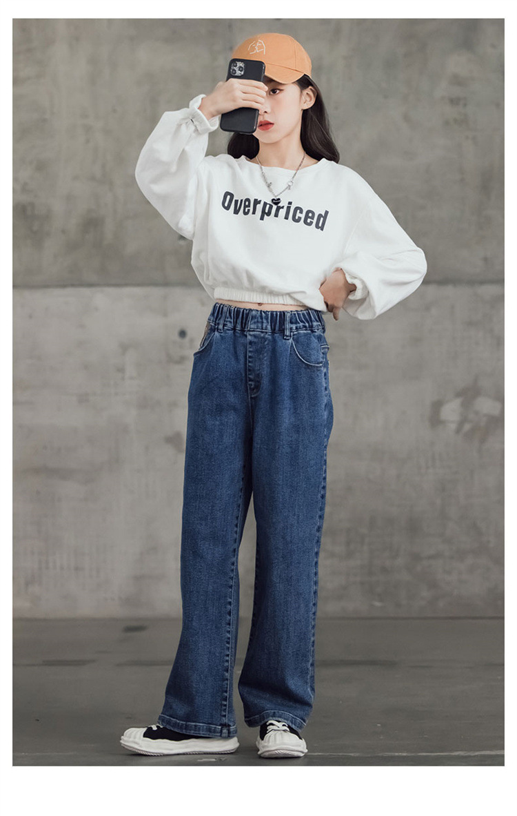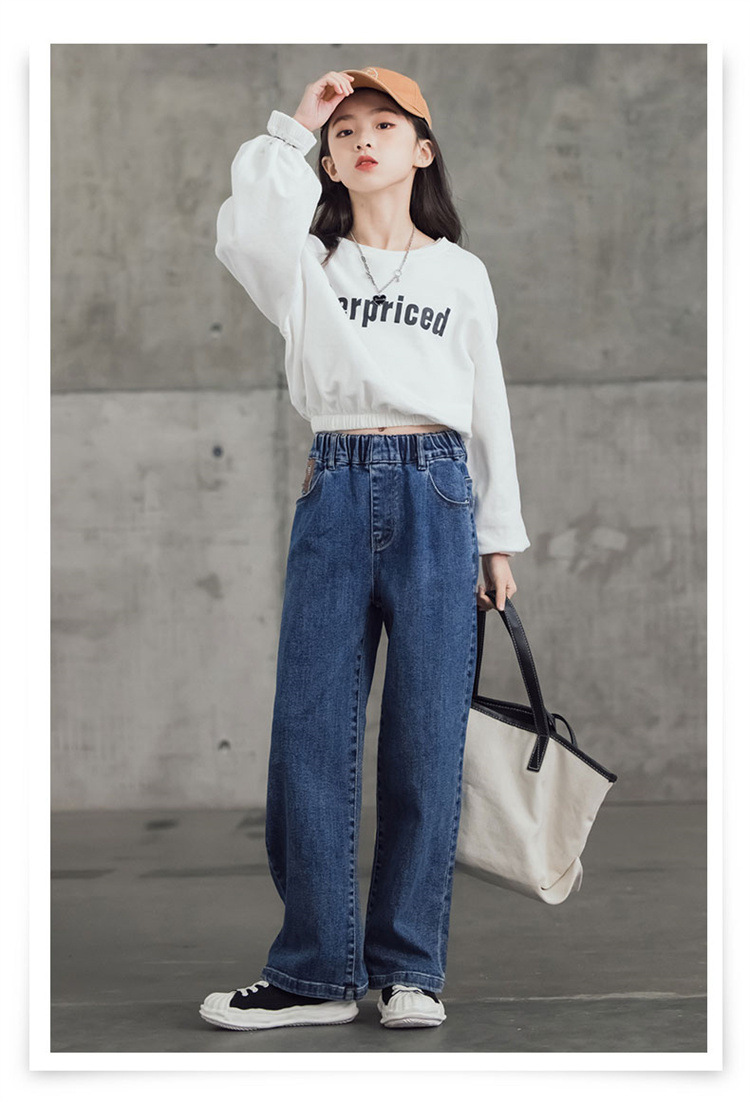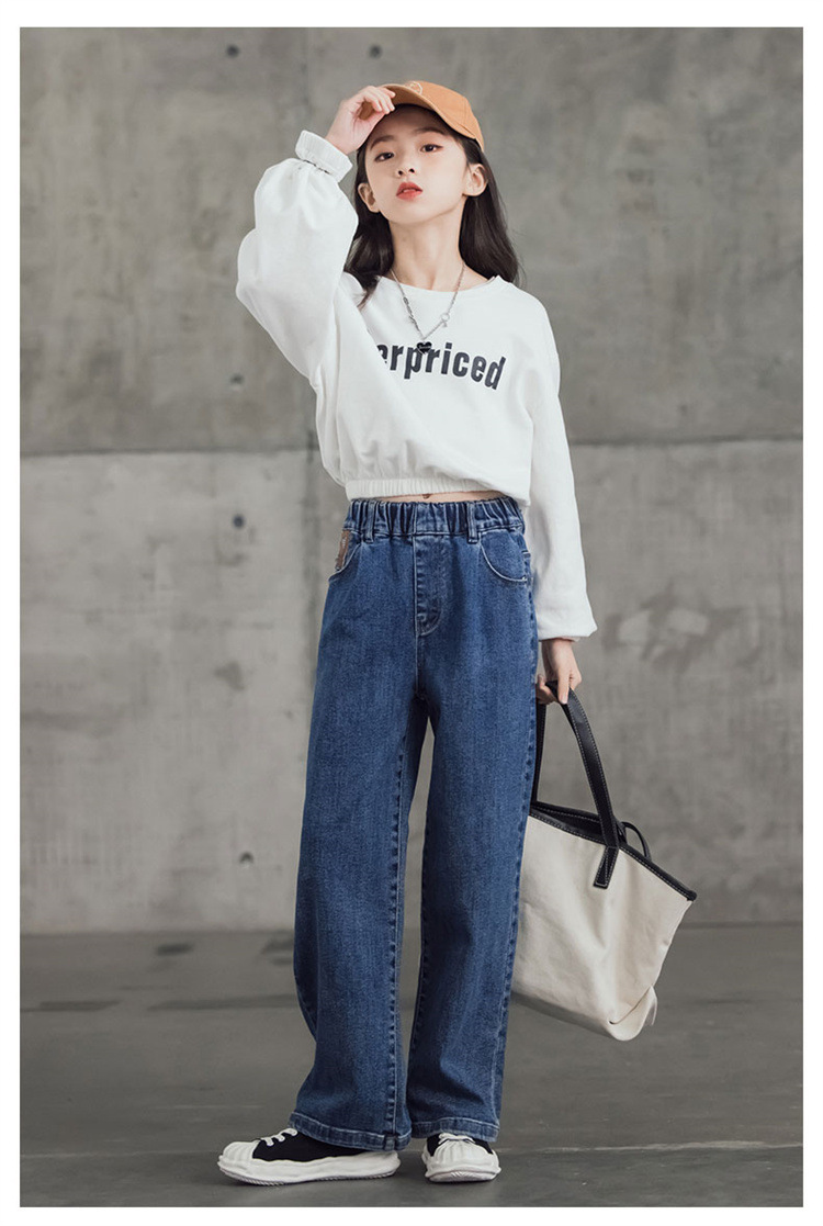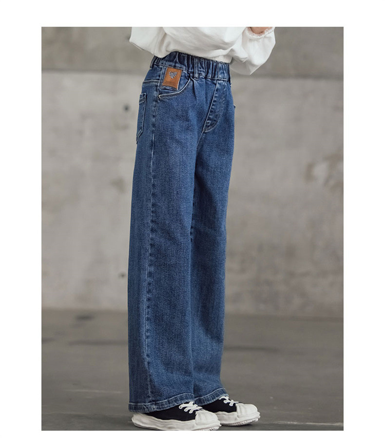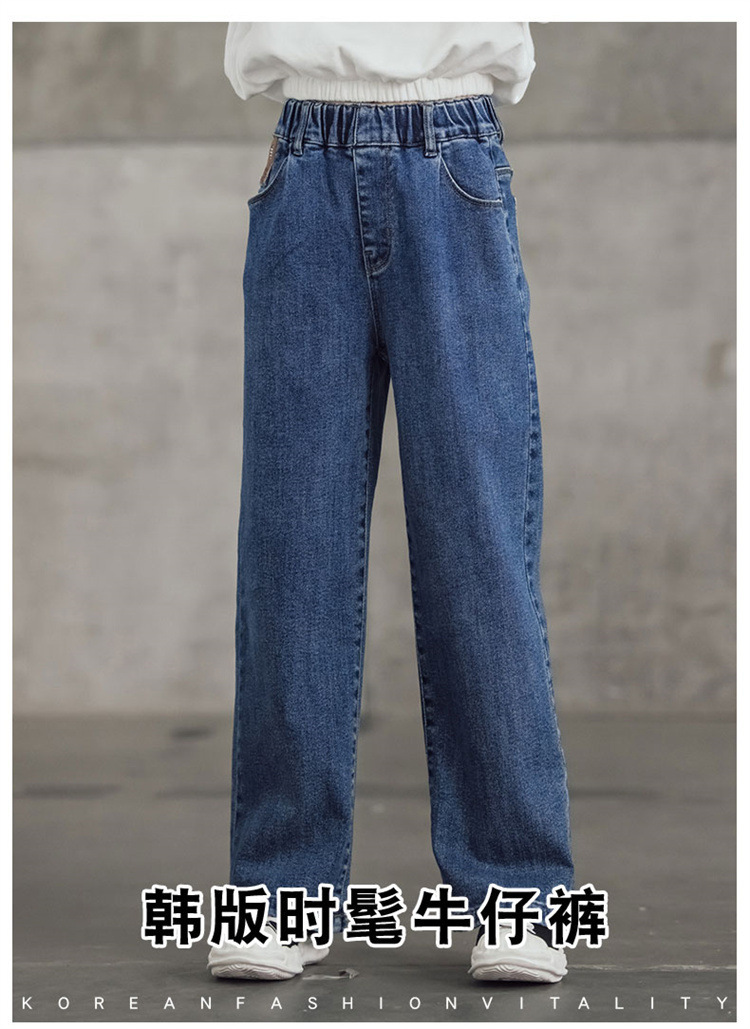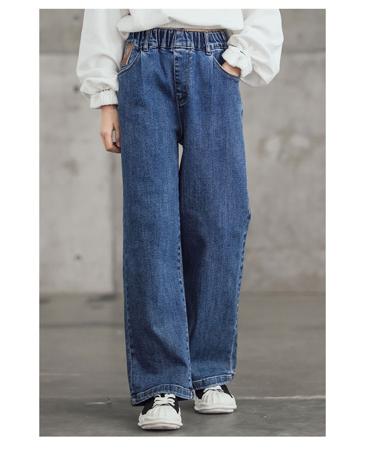 여아 와이드 레그 청바지 봄 가을 2023 올매치 큰 어린이 어린이 바지 가을 스트레이트 레그 팬츠 아동복 가을과 겨울 기모스토어 가기