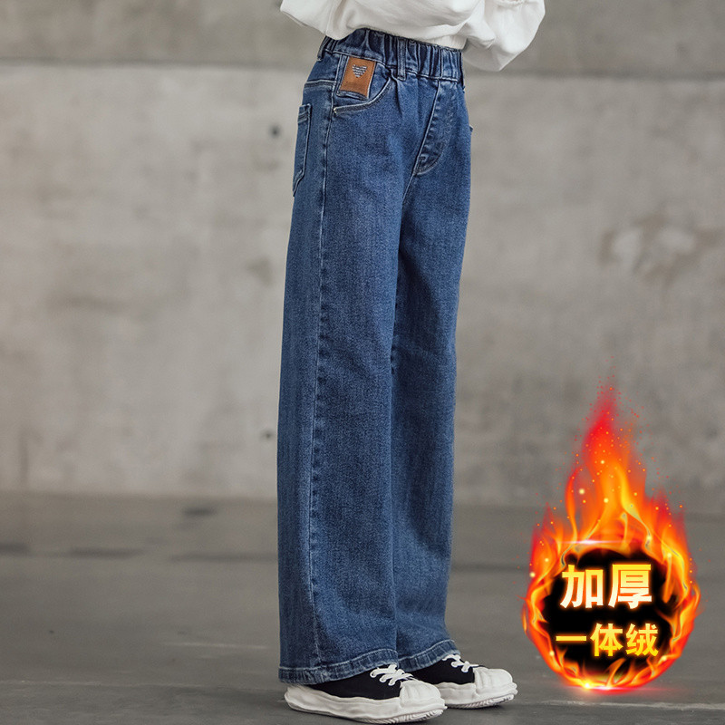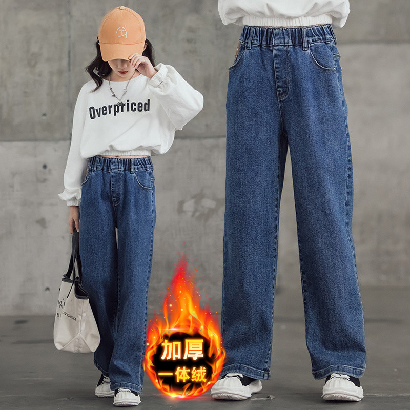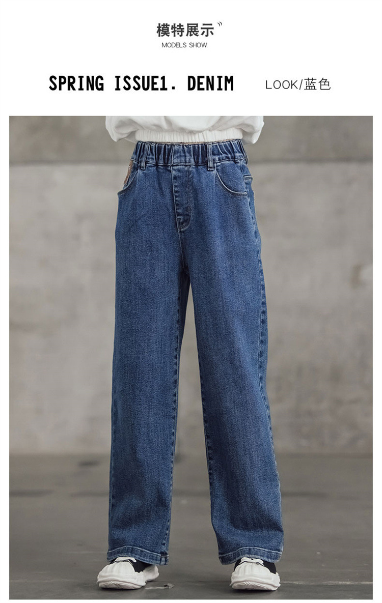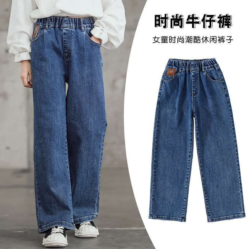 여아 와이드 레그 청바지 봄 가을 2023 올매치 큰 어린이 어린이 바지 가을 스트레이트 레그 팬츠 아동복 가을과 겨울 기모