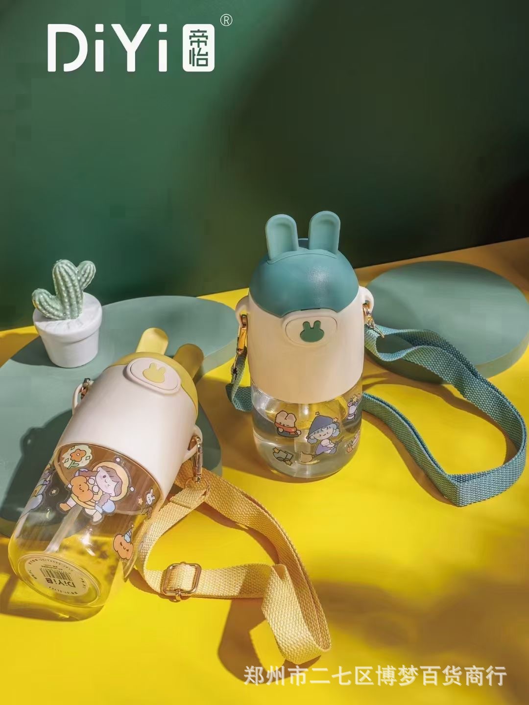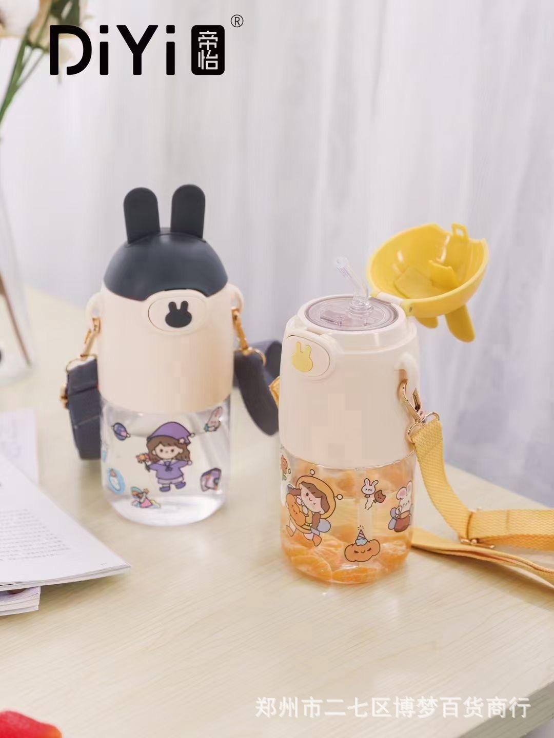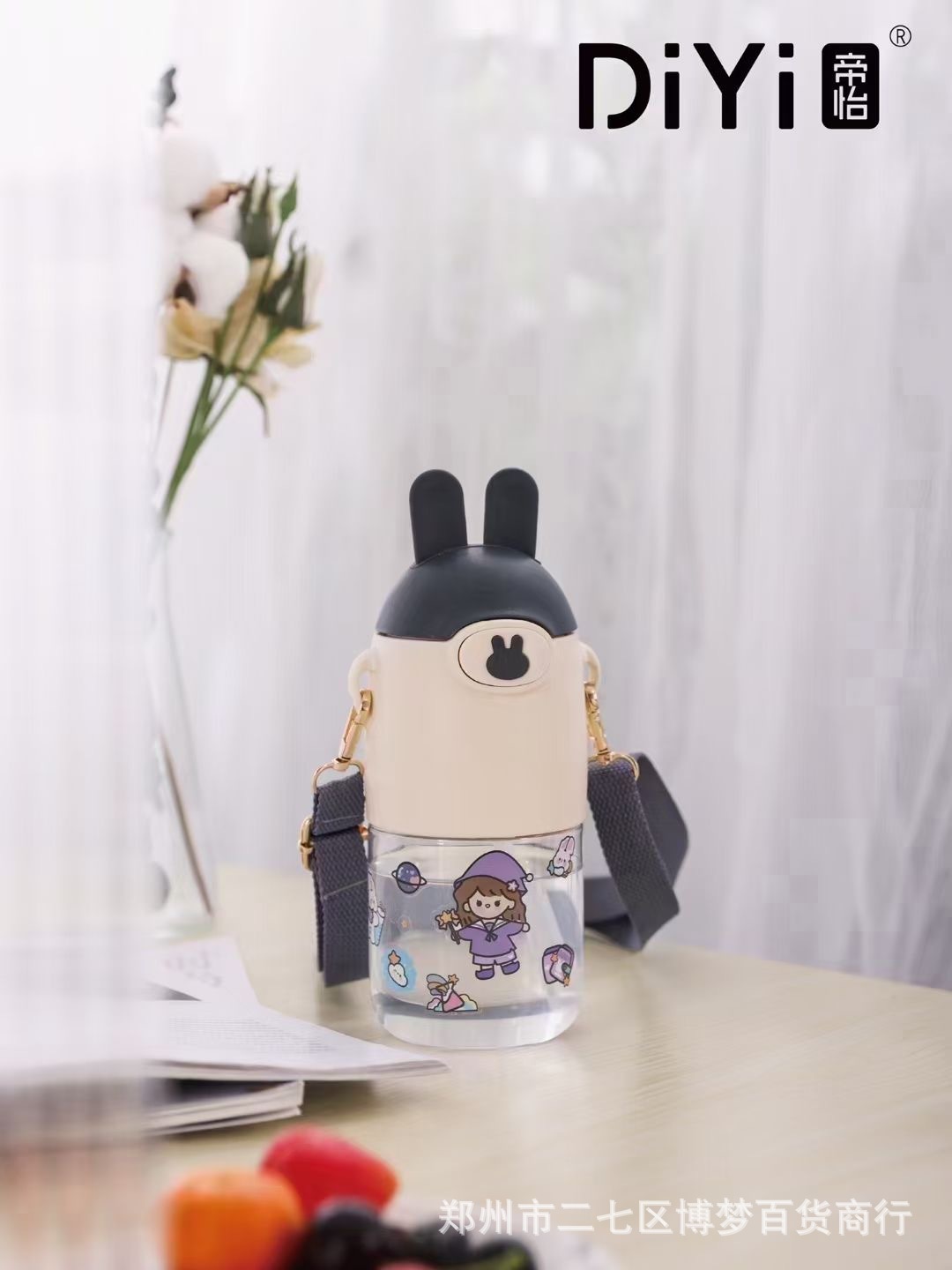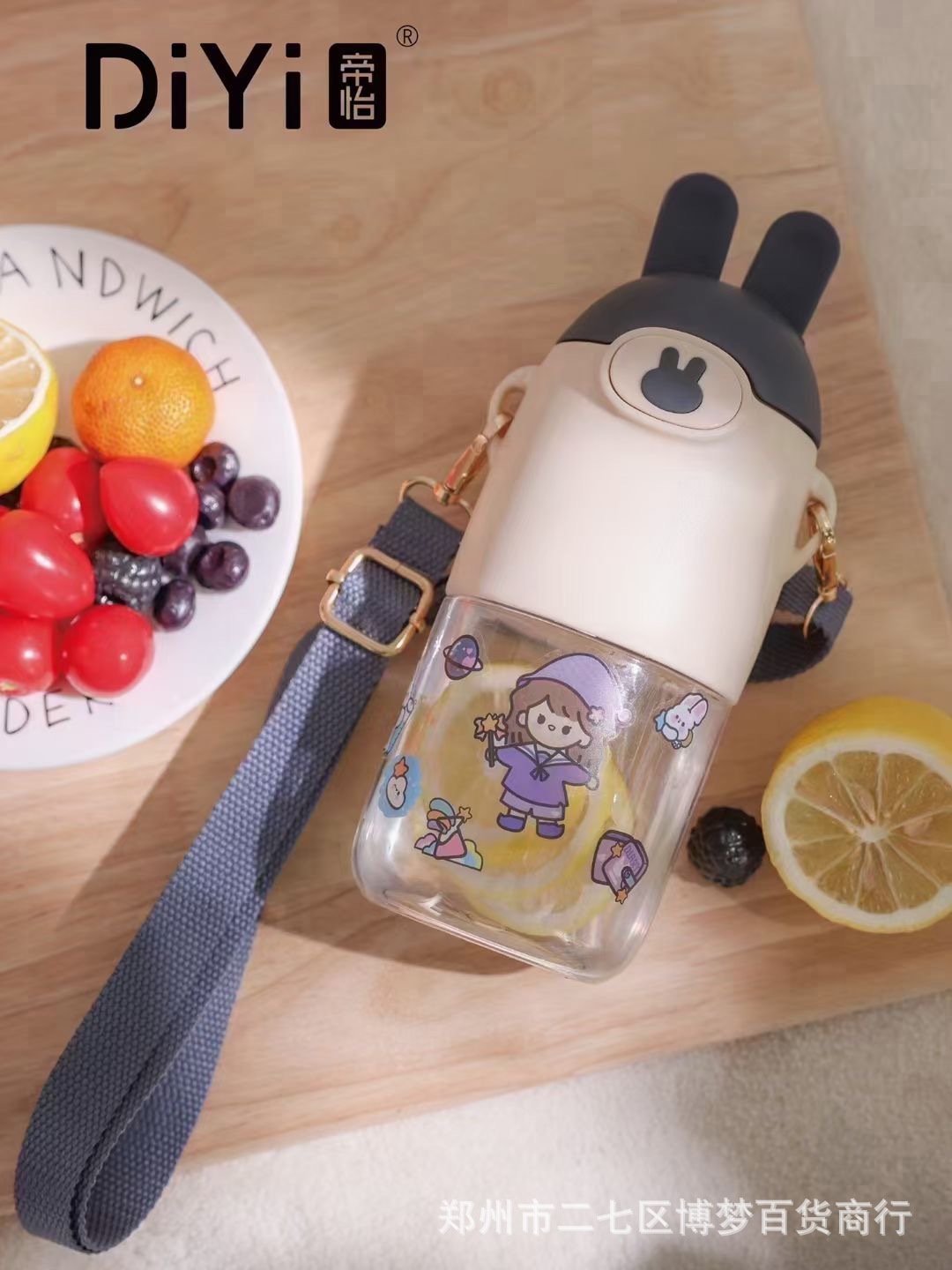 Di Yi Meng 토끼 밀짚 학생과 어린이 플라스틱 컵 귀여운 투명 물 컵 휴대용 한국식 귀여운 대용량 컵