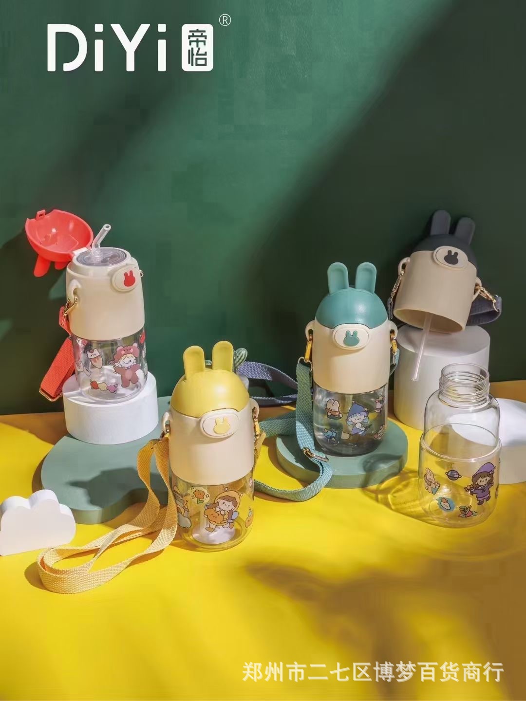Di Yi Meng 토끼 밀짚 학생과 어린이 플라스틱 컵 귀여운 투명 물 컵 휴대용 한국식 귀여운 대용량 컵스토어 가기