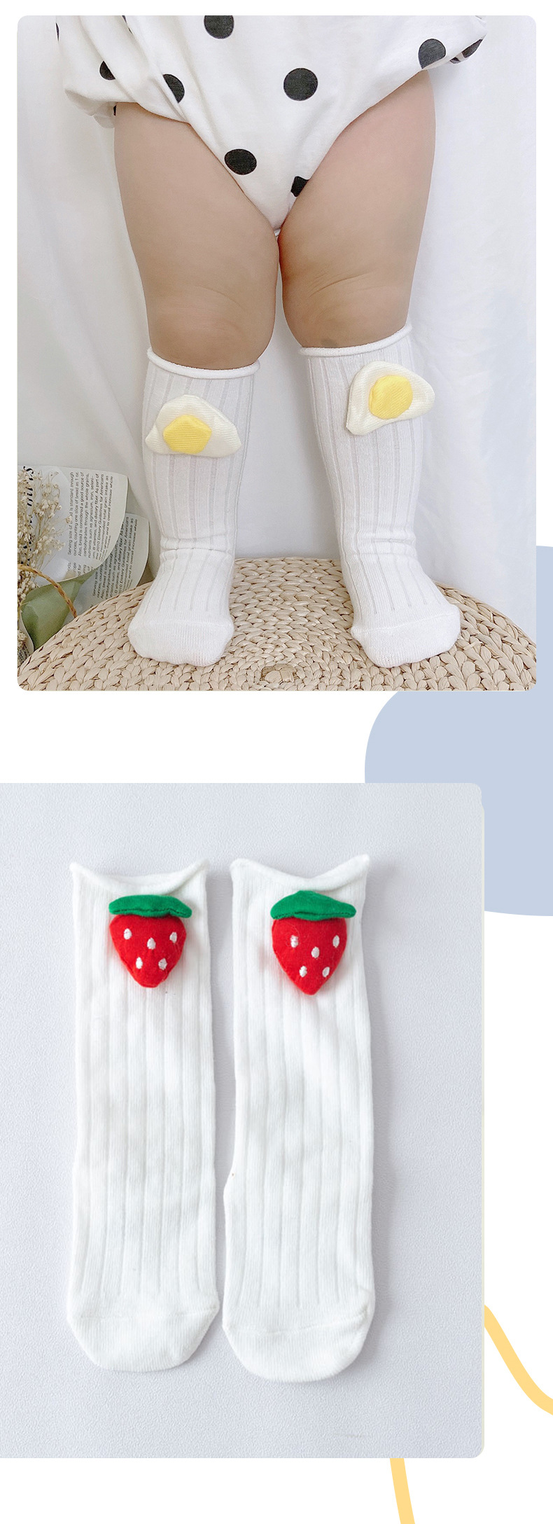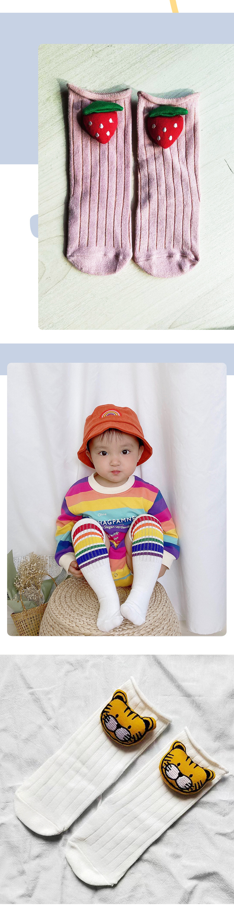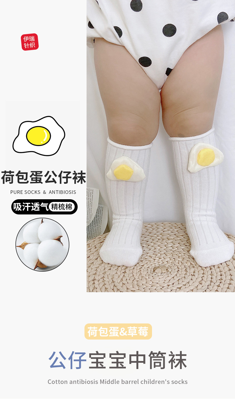 INS 스타일 아기 양말 미드 튜브 양말 신생아 귀여운 만화 부어 계란 딸기 어린이 유행 양말 긴 튜브스토어 가기