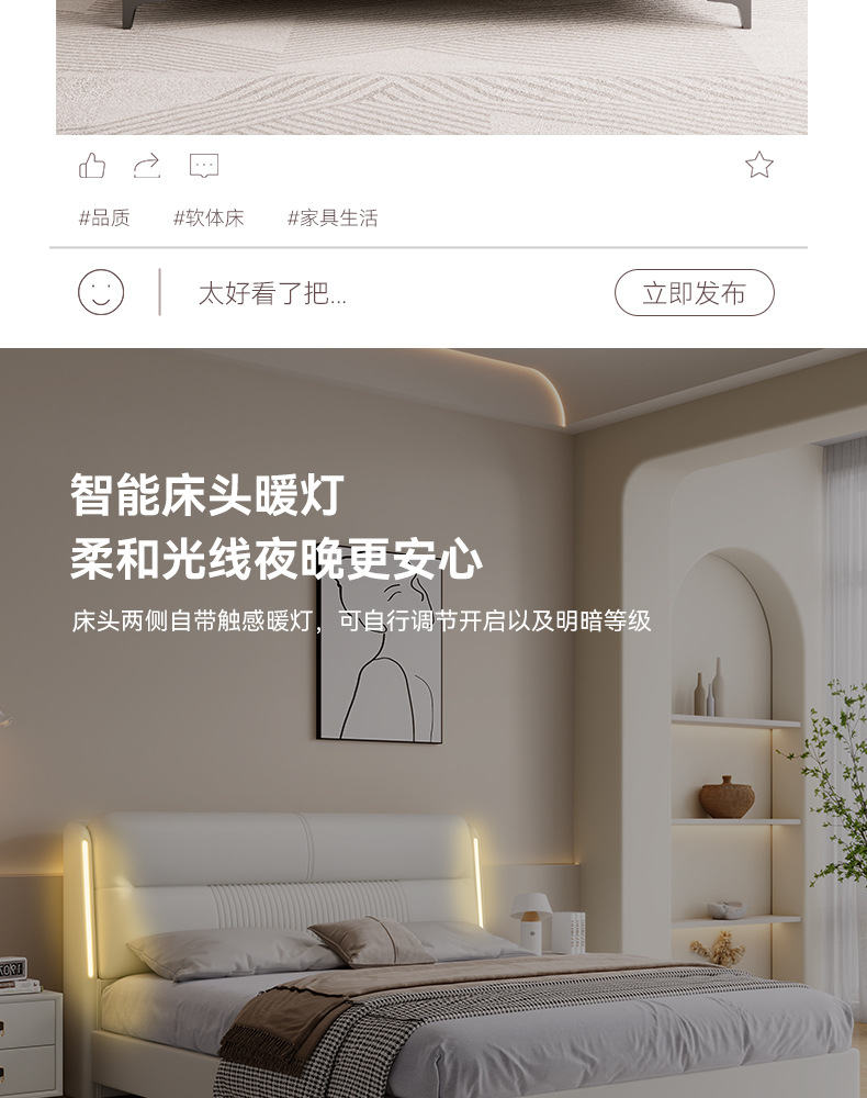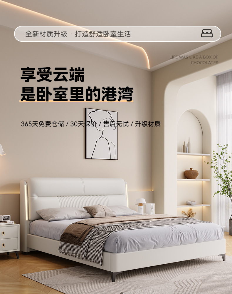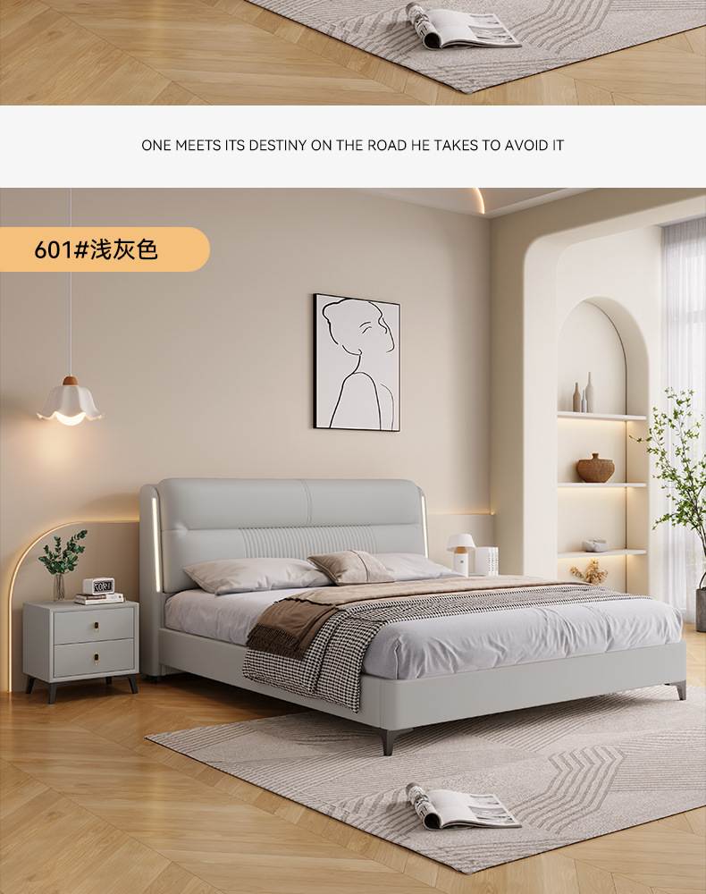 고급 이탈리아 가죽 침대 현대 간단한 마스터 침실 더블 침대 1.8 m 북유럽 가죽 아트 침대 부드러운 가방 인터넷 인기있는 웨딩 침대스토어 가기