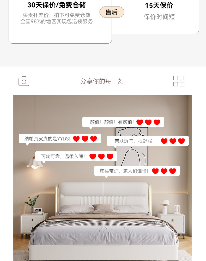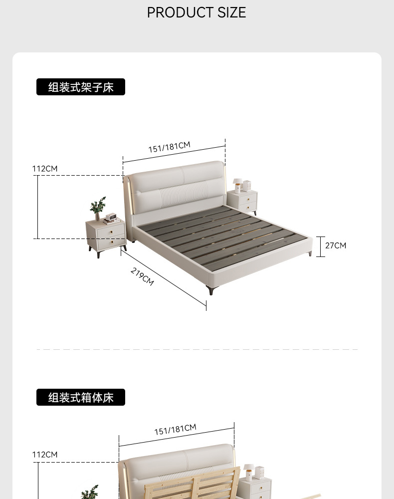 • 가죽 침대 + 캐비닛 2 개 + 세븐 스타 독립 가방 라텍스 매트리스