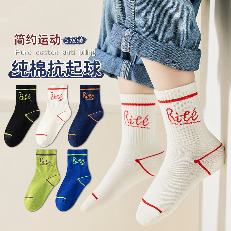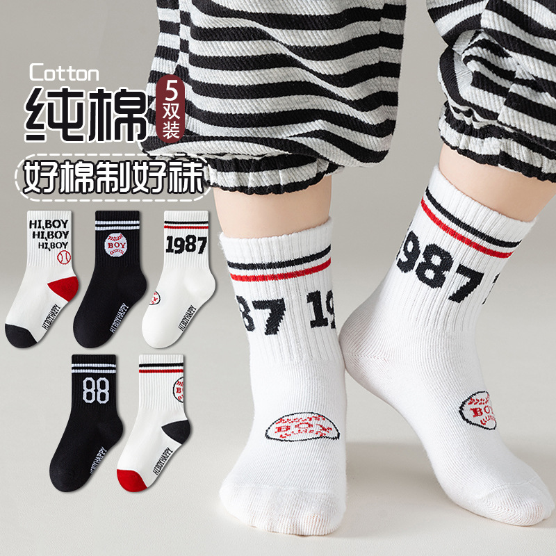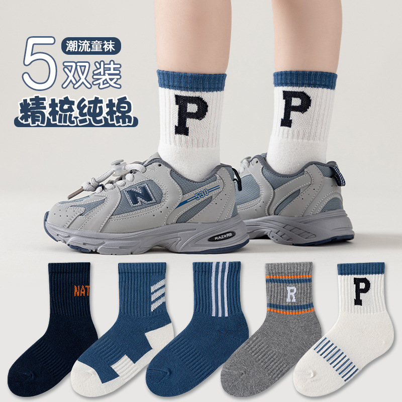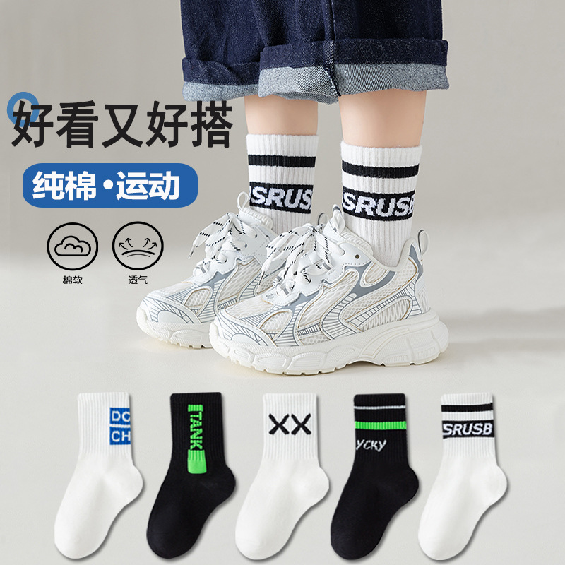 소년 양말 면 큰 어린이 가을 편지 스포츠 중간 길이 양말 어린이 양말 가을 유행 양말 스타일 면 양말스토어 가기